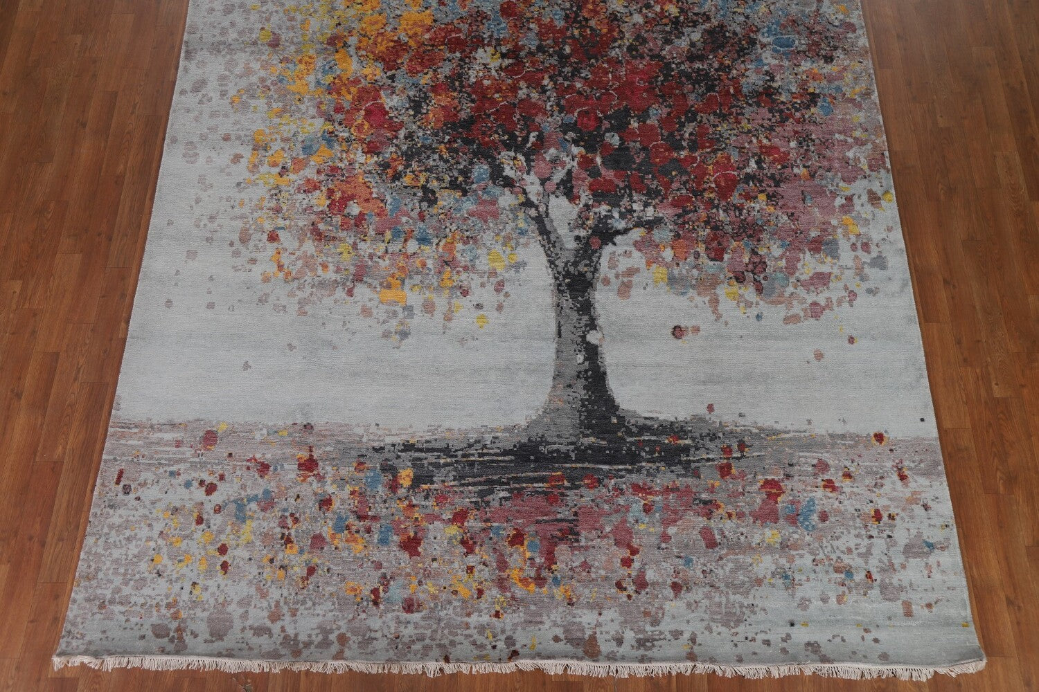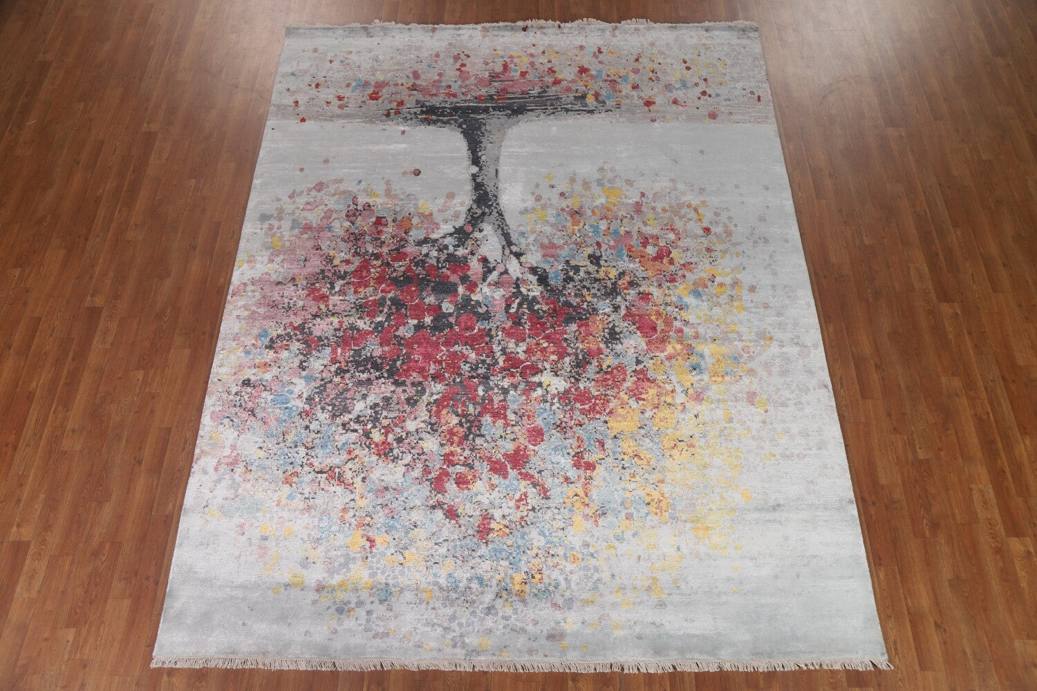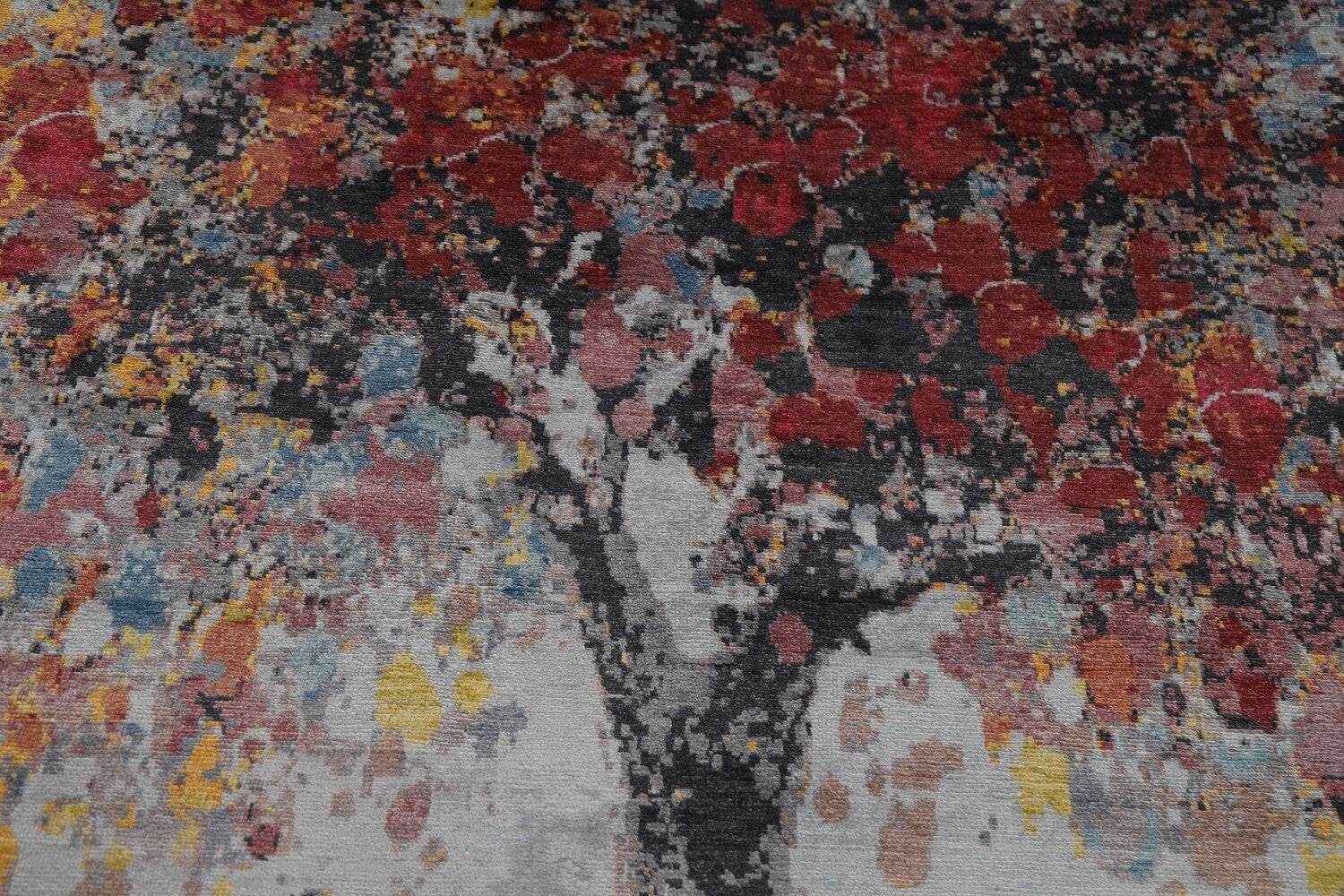 A Beautiful Genuine India Abstract rug is Hand Knotted by skillful weavers in India with 100% Silk Material. This rug is in New, First Quality condition. dimensions are 10' 3'' X 8' 0'' in foot and 312 X 244 in centimeter. the primary color is Greys & Charcoal.