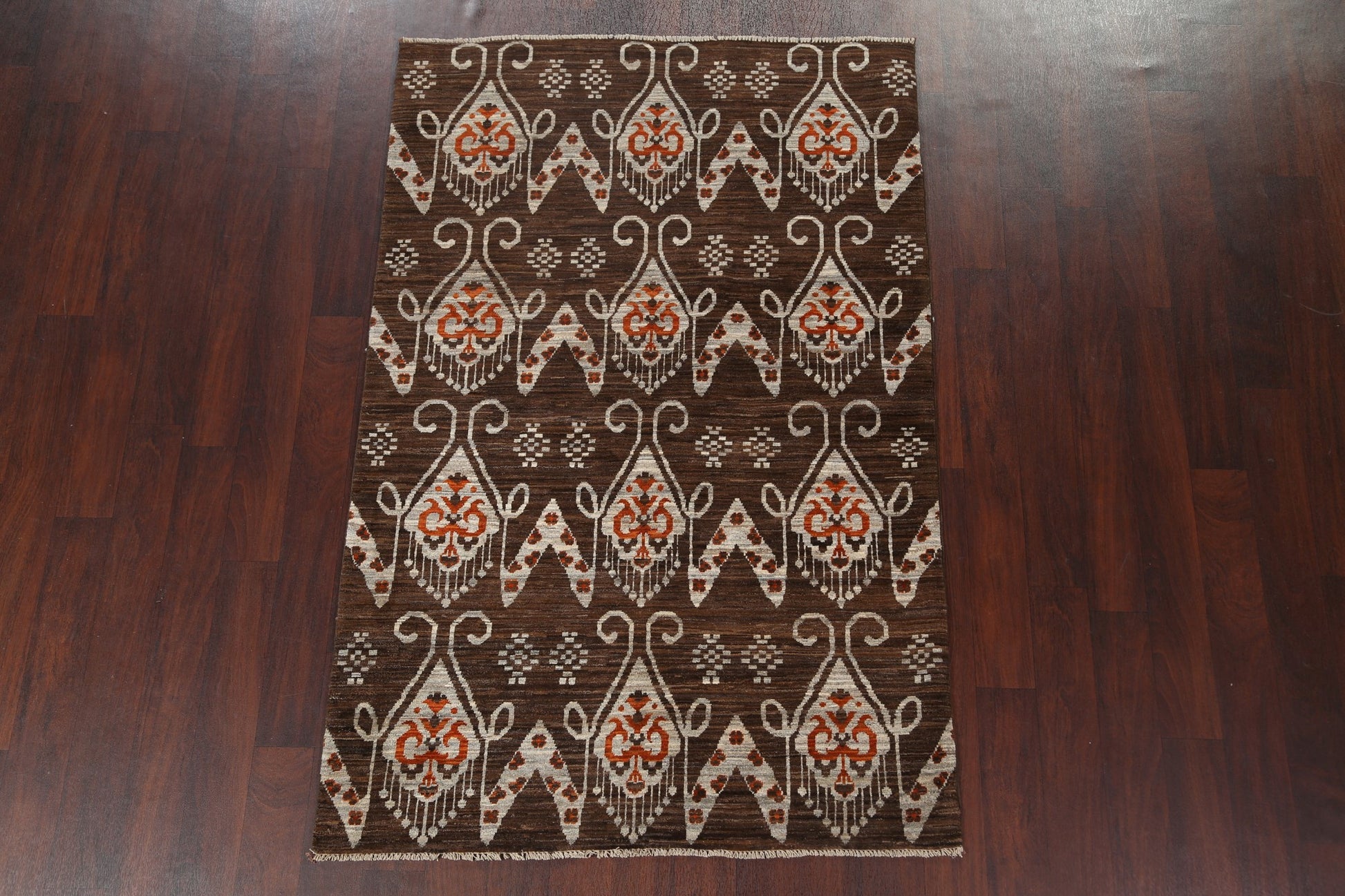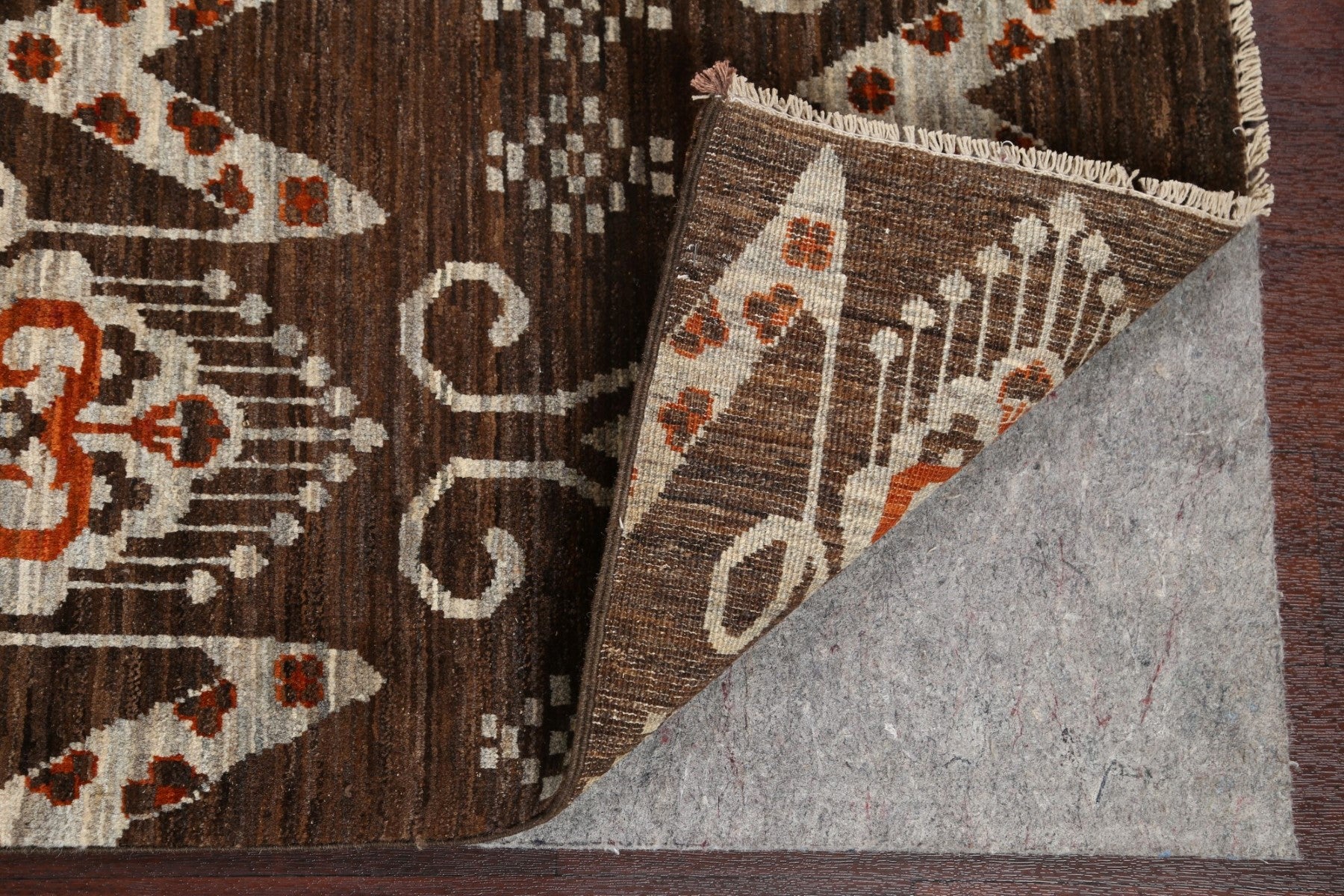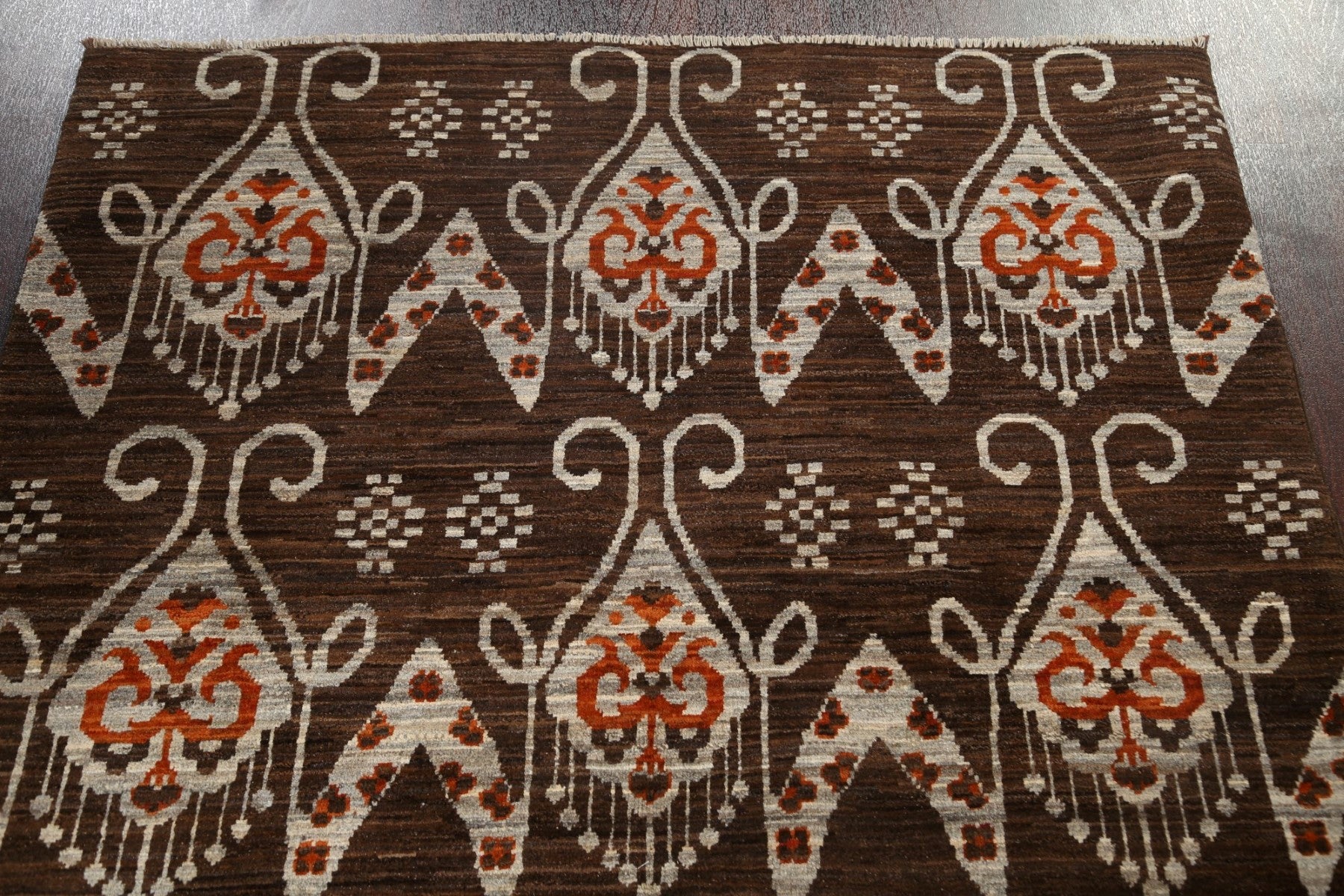 A Beautiful Genuine Pakistan Abstract rug is Hand Knotted by skillful weavers in Pakistan with 100% Wool Material. This rug is in New, First Quality condition. dimensions are 6' 6'' X 4' 3'' in foot and 198 X 130 in centimeter. the primary color is Brown.