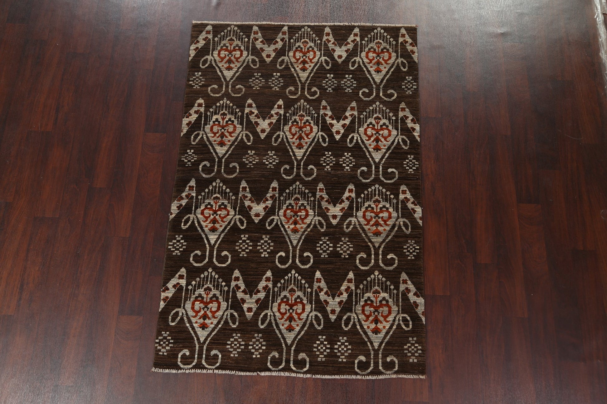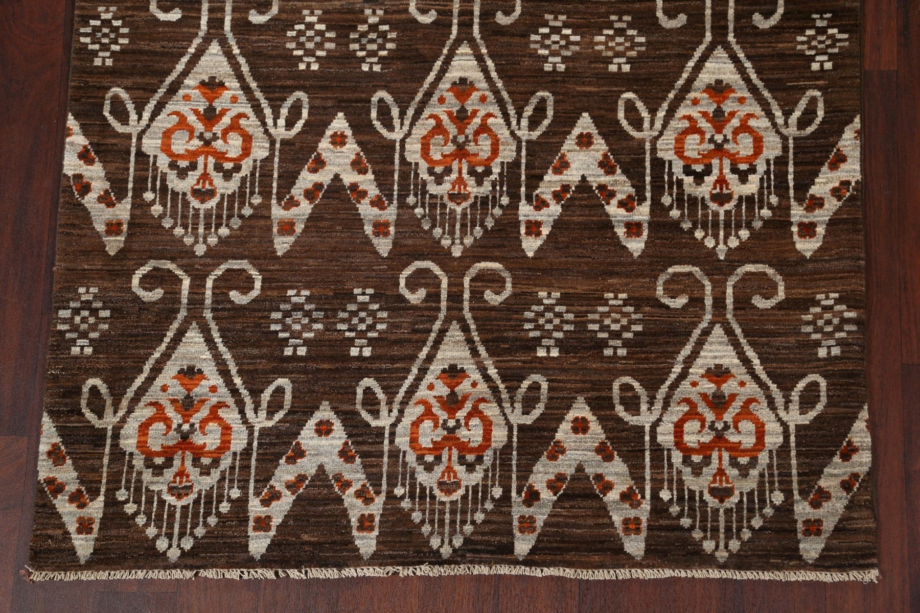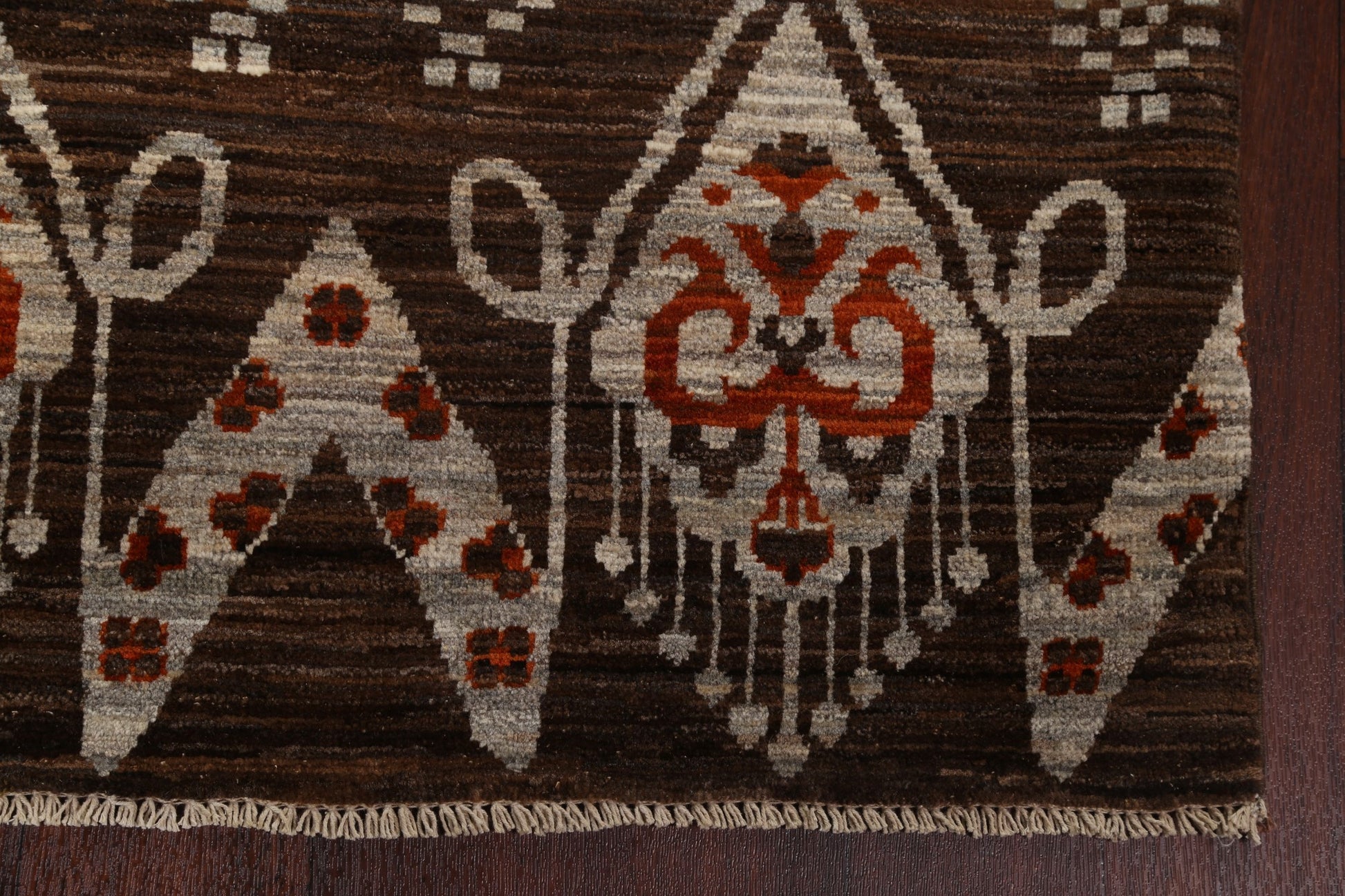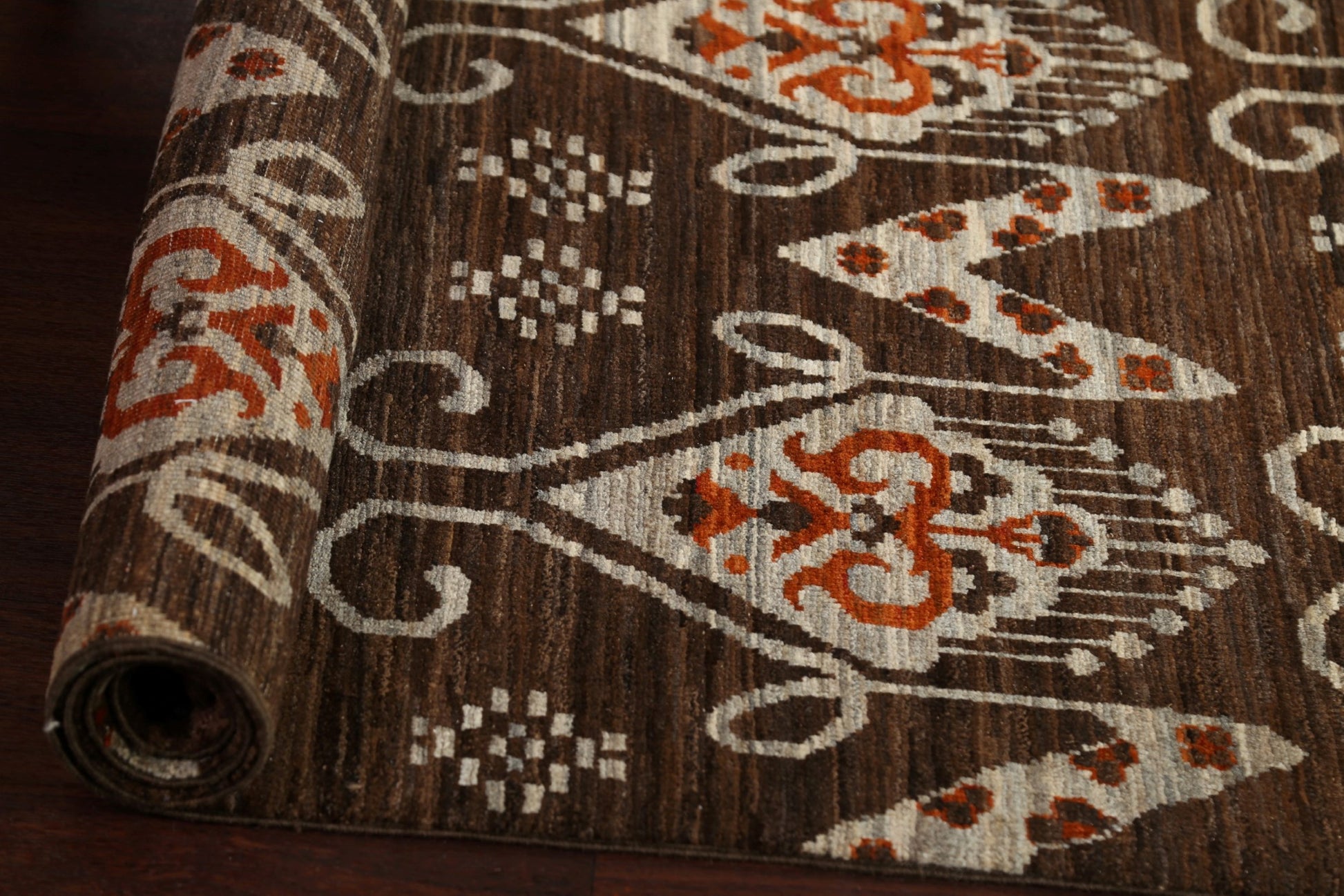A Beautiful Genuine Pakistan Abstract rug is Hand Knotted by skillful weavers in Pakistan with 100% Wool Material. This rug is in New, First Quality condition. dimensions are 6' 6'' X 4' 3'' in foot and 198 X 130 in centimeter. the primary color is Brown.