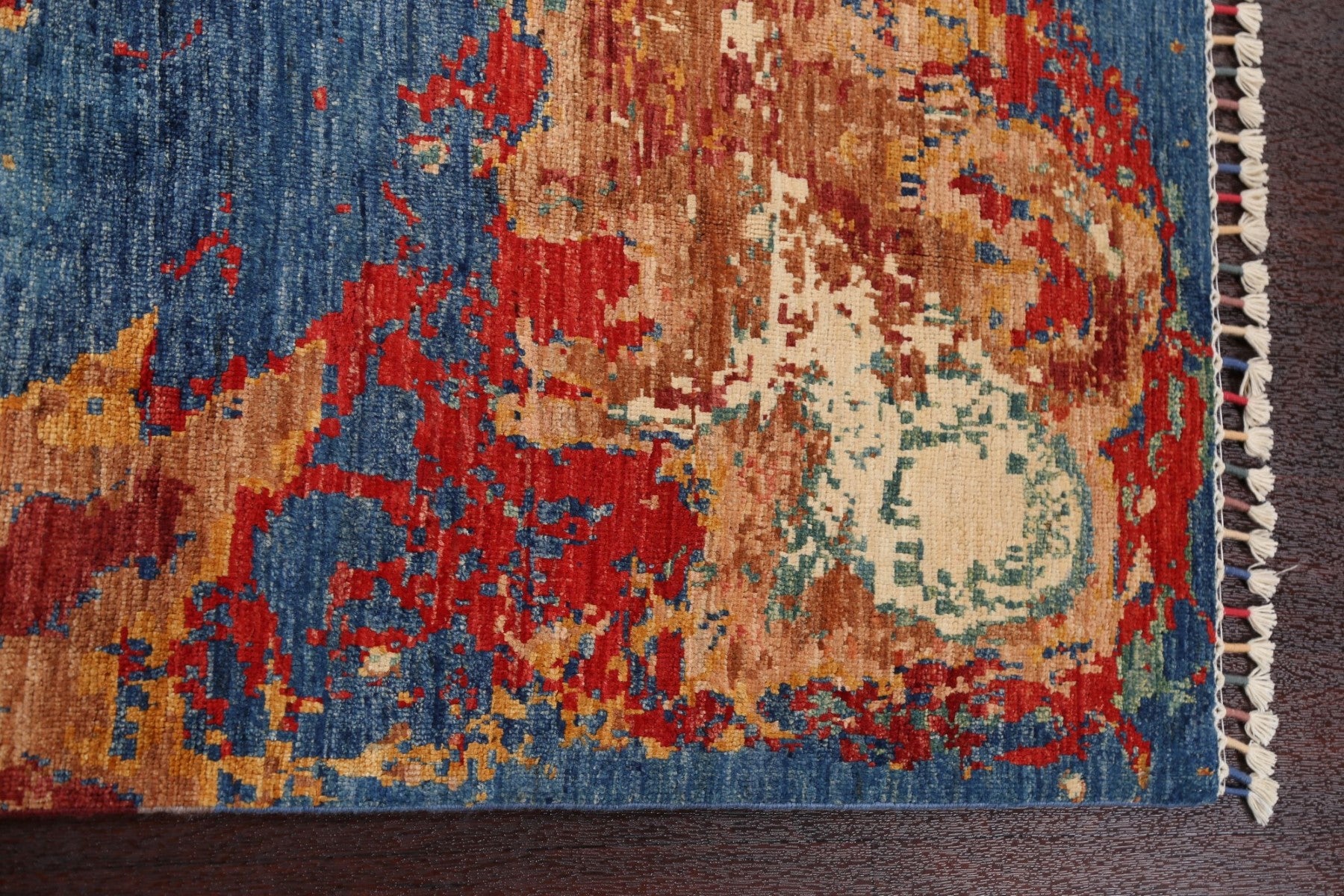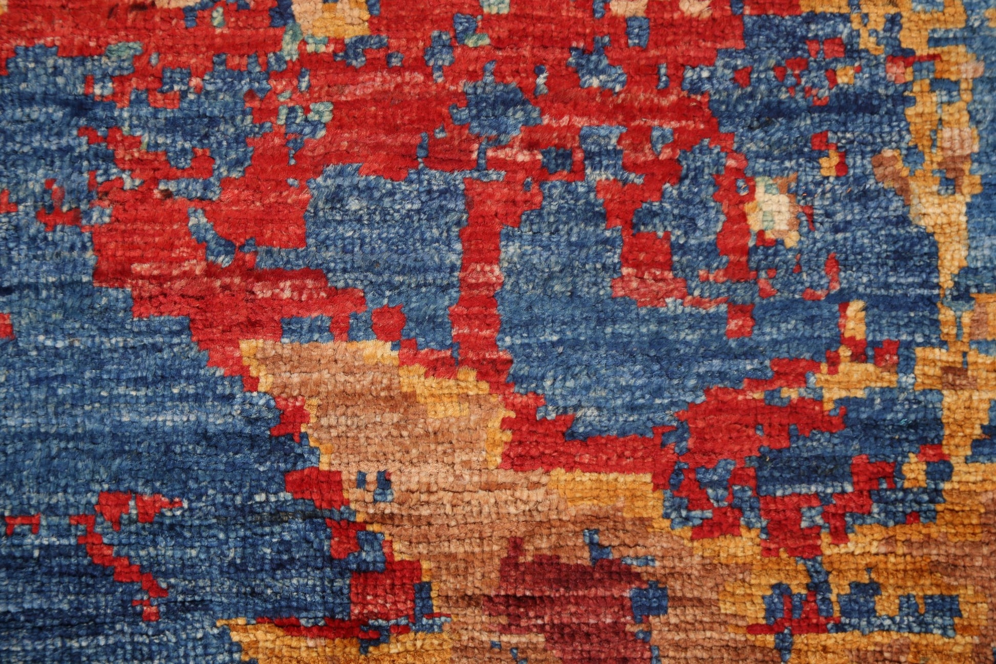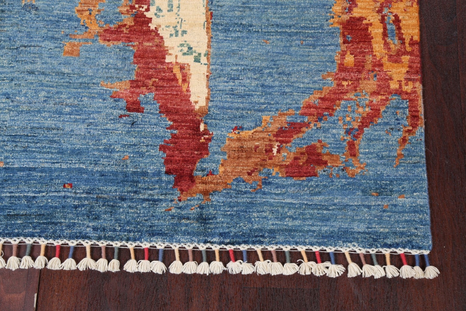 A Beautiful Genuine Pakistan Abstract rug is Hand Knotted by skillful weavers in Pakistan with 100% Wool Material. This rug is in New, First Quality condition. dimensions are 5' 1'' X 3' 4'' in foot and 155 X 102 in centimeter. the primary color is Navy Blue & Blues.
