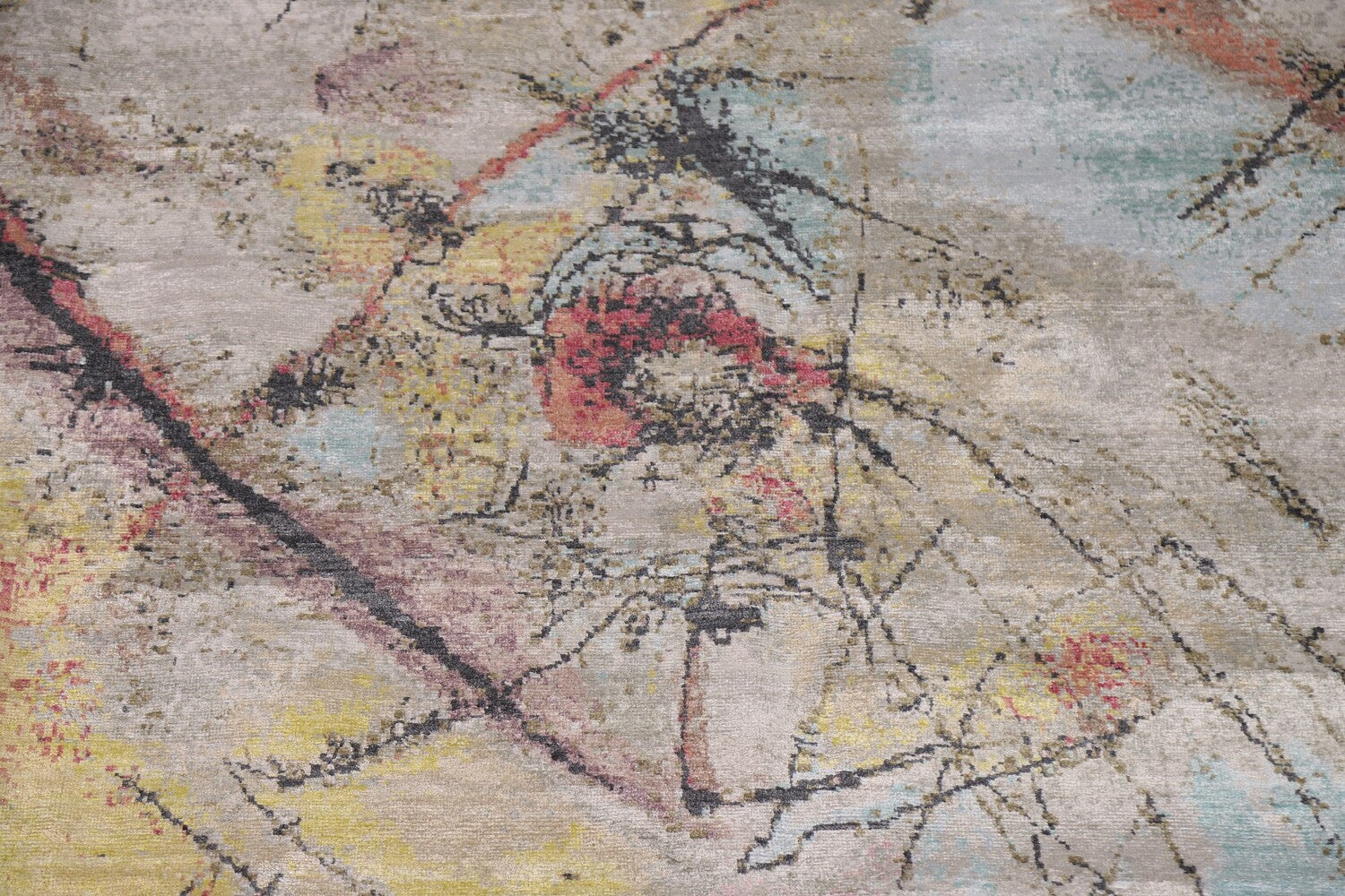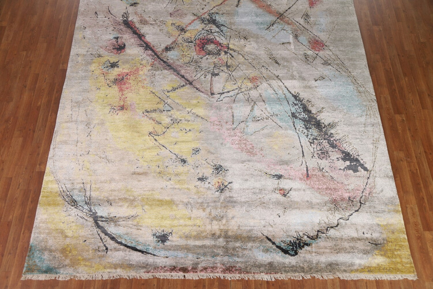 A Beautiful Genuine India Abstract rug is Hand Knotted by skillful weavers in India with 100% Wool Material. This rug is in New, First Quality condition. dimensions are 12' 5'' X 8' 11'' in foot and 378 X 272 in centimeter. the primary color is Multi-Colored.