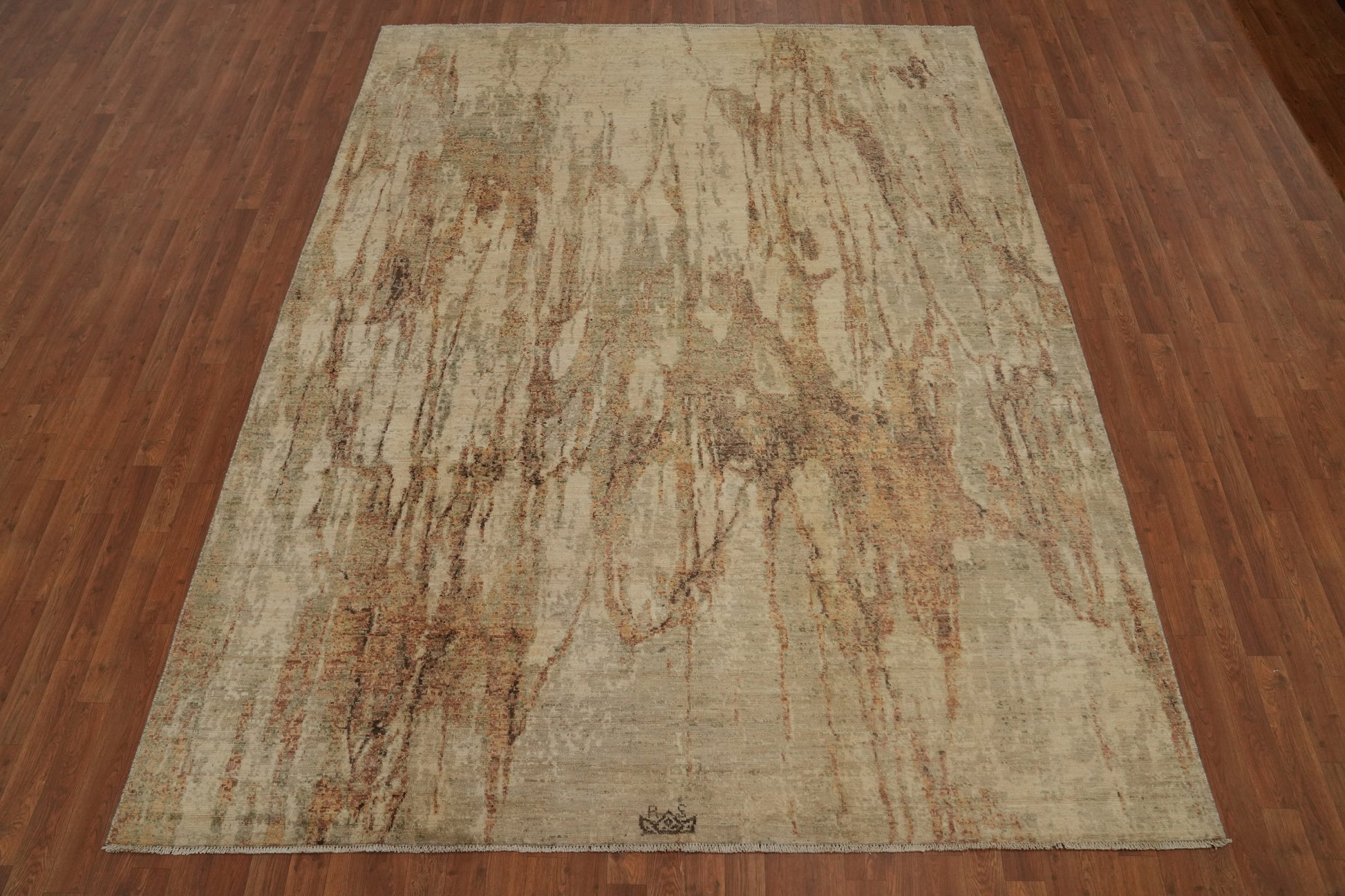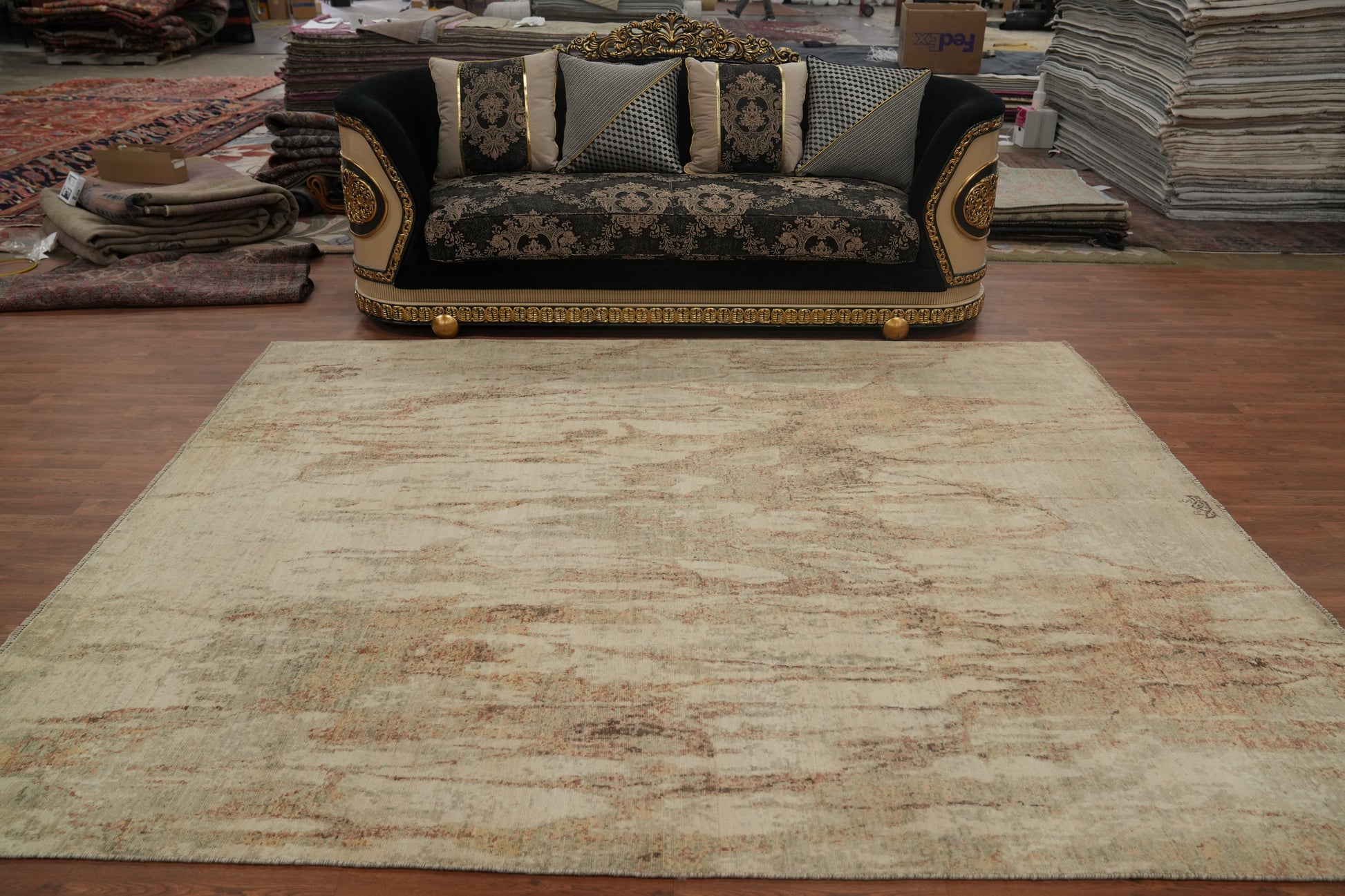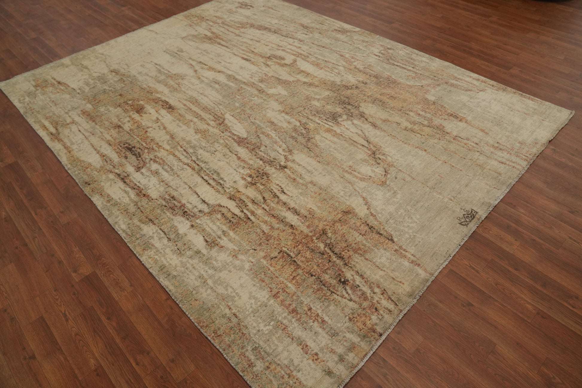 A Beautiful Genuine Pakistan Abstract rug is Hand Knotted by skillful weavers in Pakistan with 100% Wool Material. This rug is in New, First Quality condition. dimensions are 9' 8'' X 7' 8'' in foot and 295 X 234 in centimeter. the primary color is Beige & Ivories.