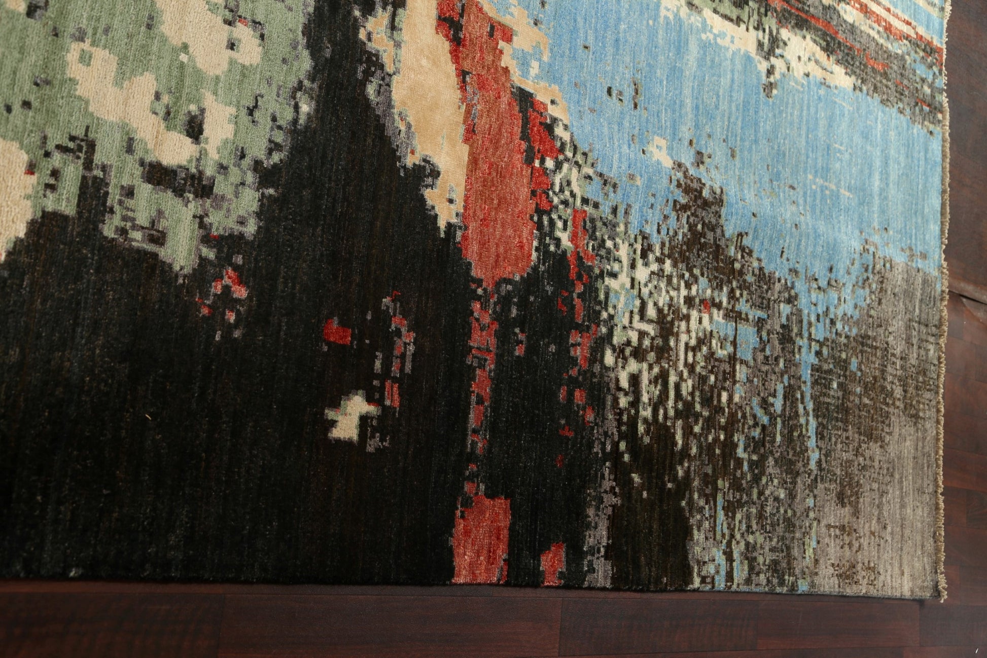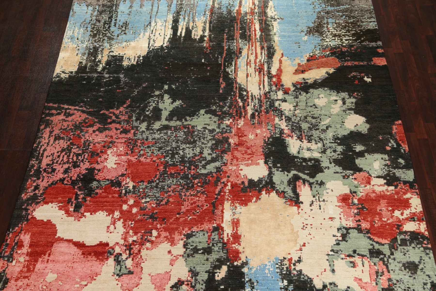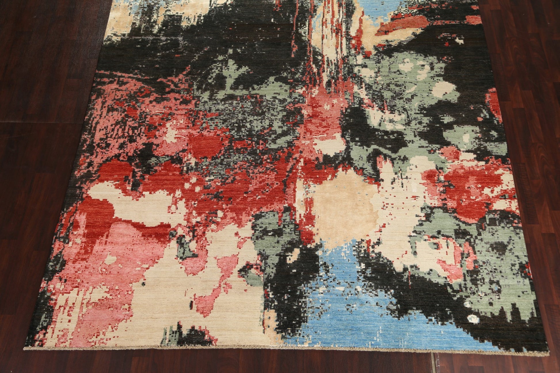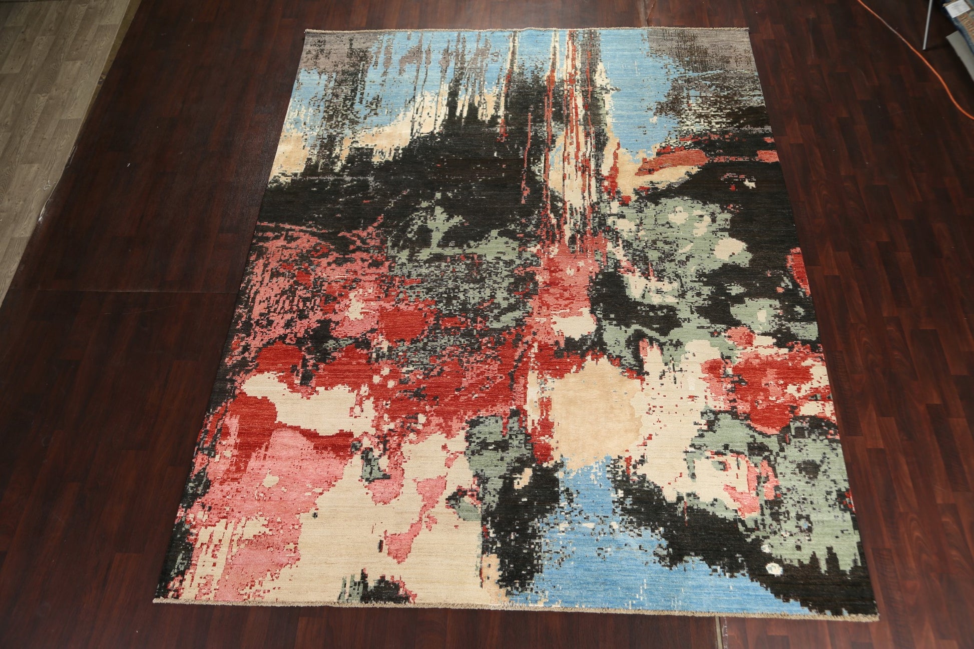 A Beautiful Genuine Pakistan Abstract rug is Hand Knotted by skillful weavers in Pakistan with Wool & Silk Material. This rug is in New, First Quality condition. dimensions are 12' 6'' X 9' 11'' in foot and 381 X 302 in centimeter. the primary color is Multi-Colored.