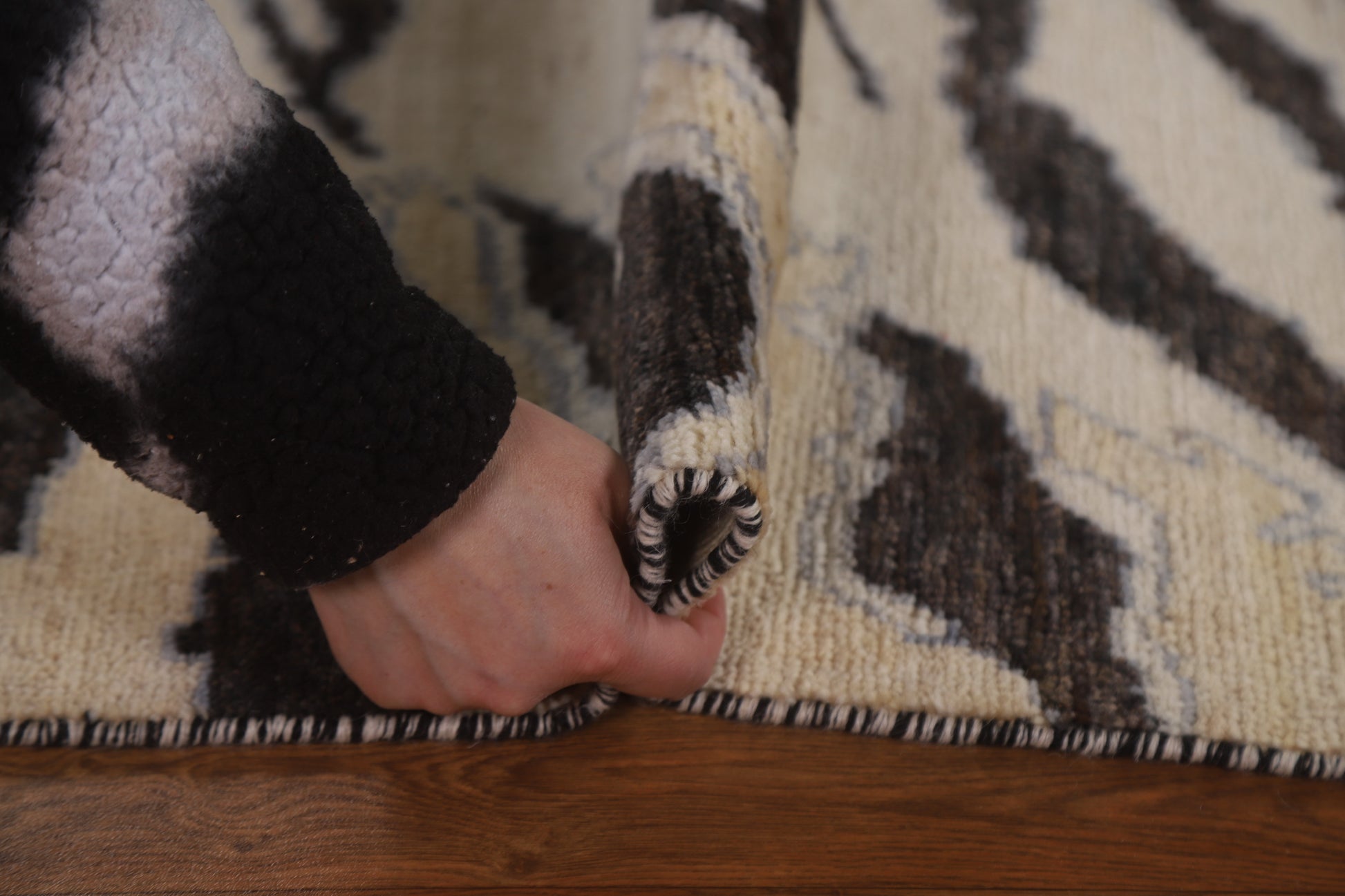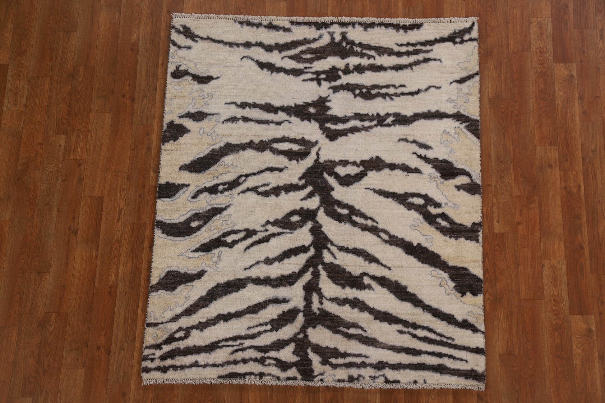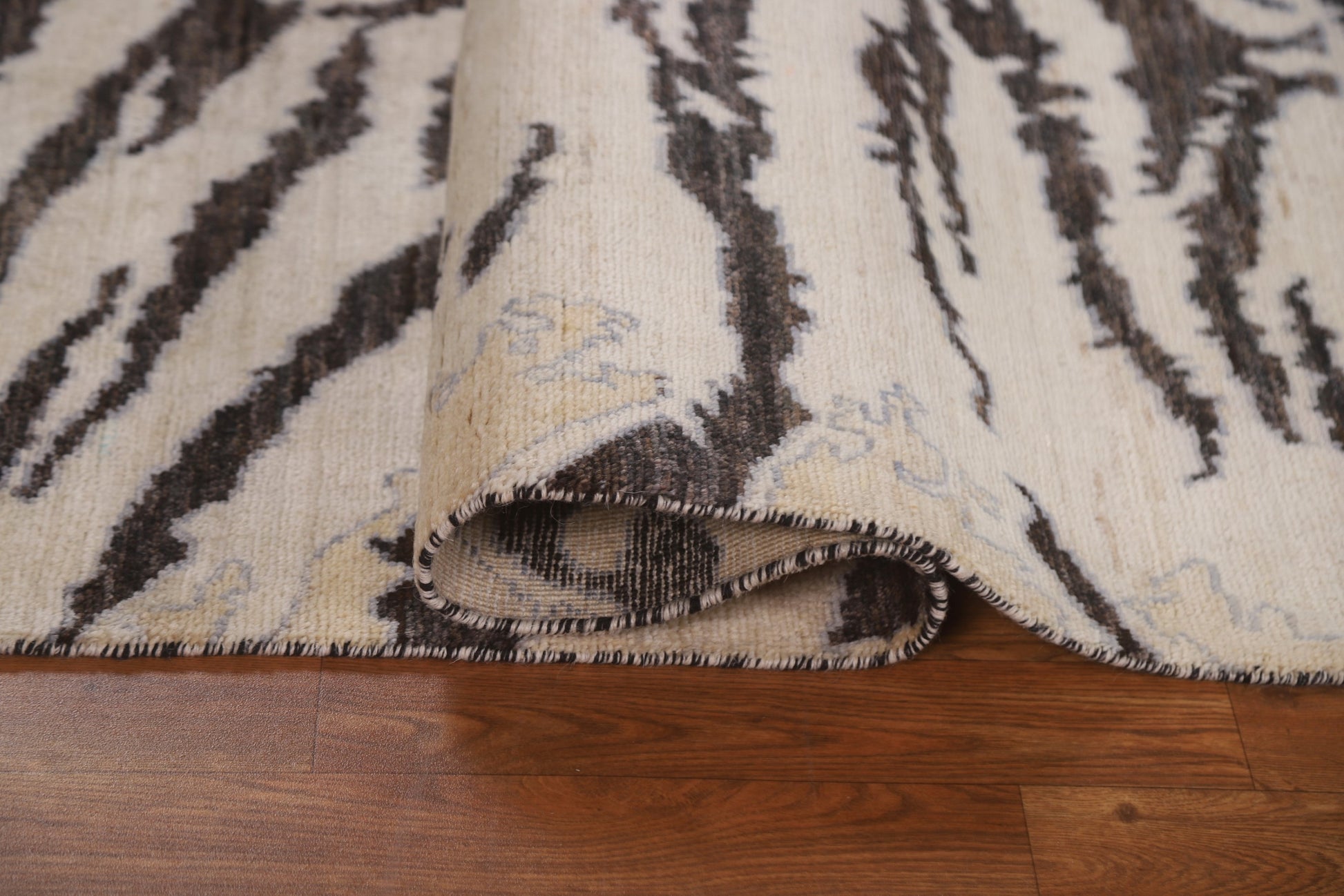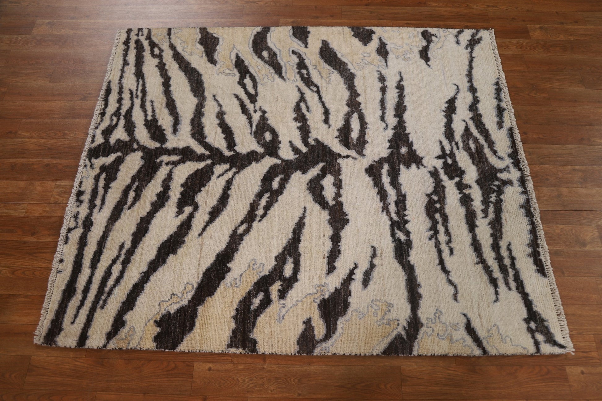 A Beautiful Genuine Pakistan Abstract rug is Hand Knotted by skillful weavers in Pakistan with 100% Wool Material. This rug is in New, First Quality condition. dimensions are 4' 9'' X 4' 0'' in foot and  145 X 122 in centimeter. the primary color is Beige & Ivories.