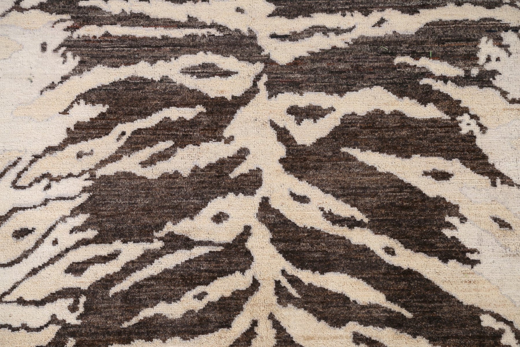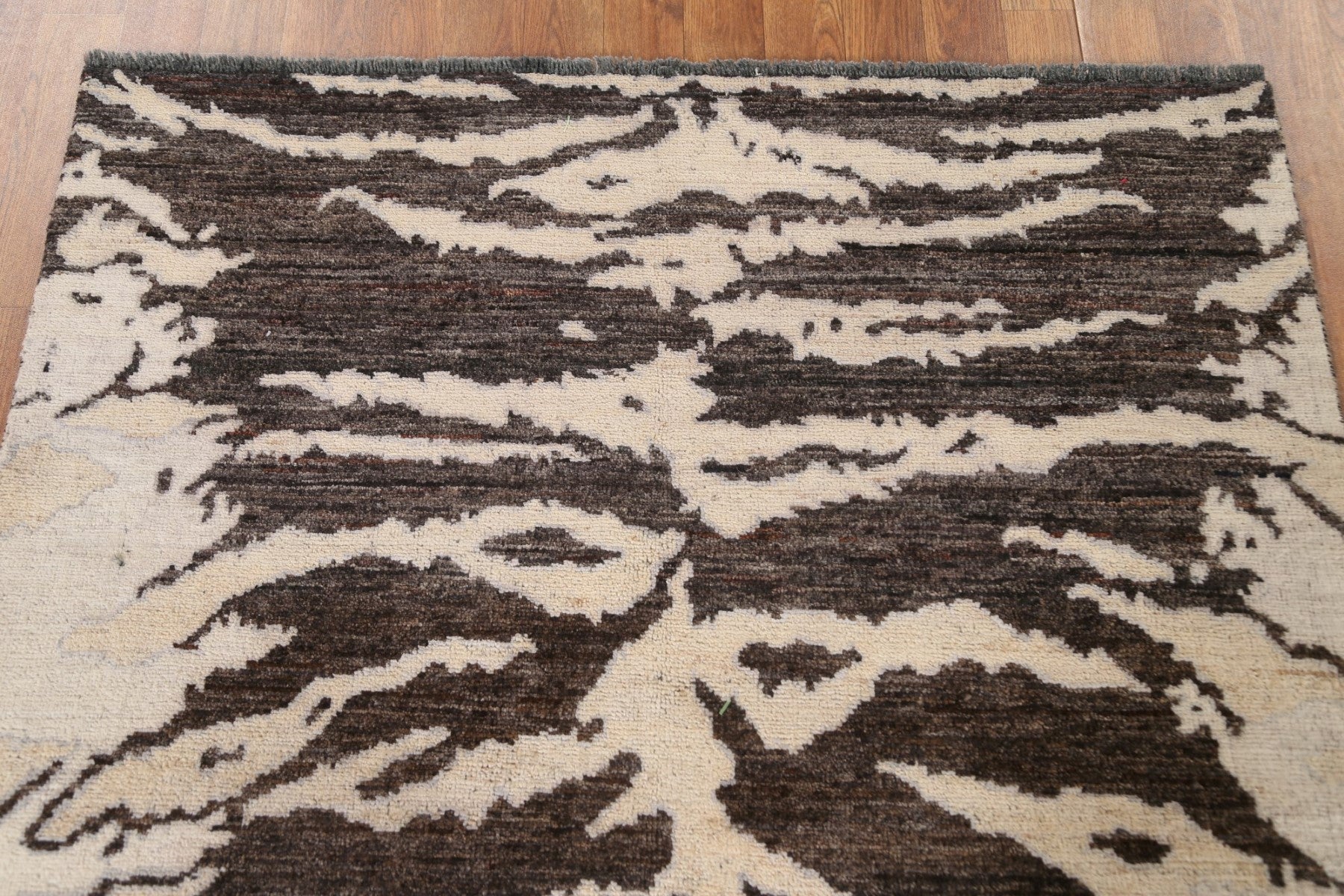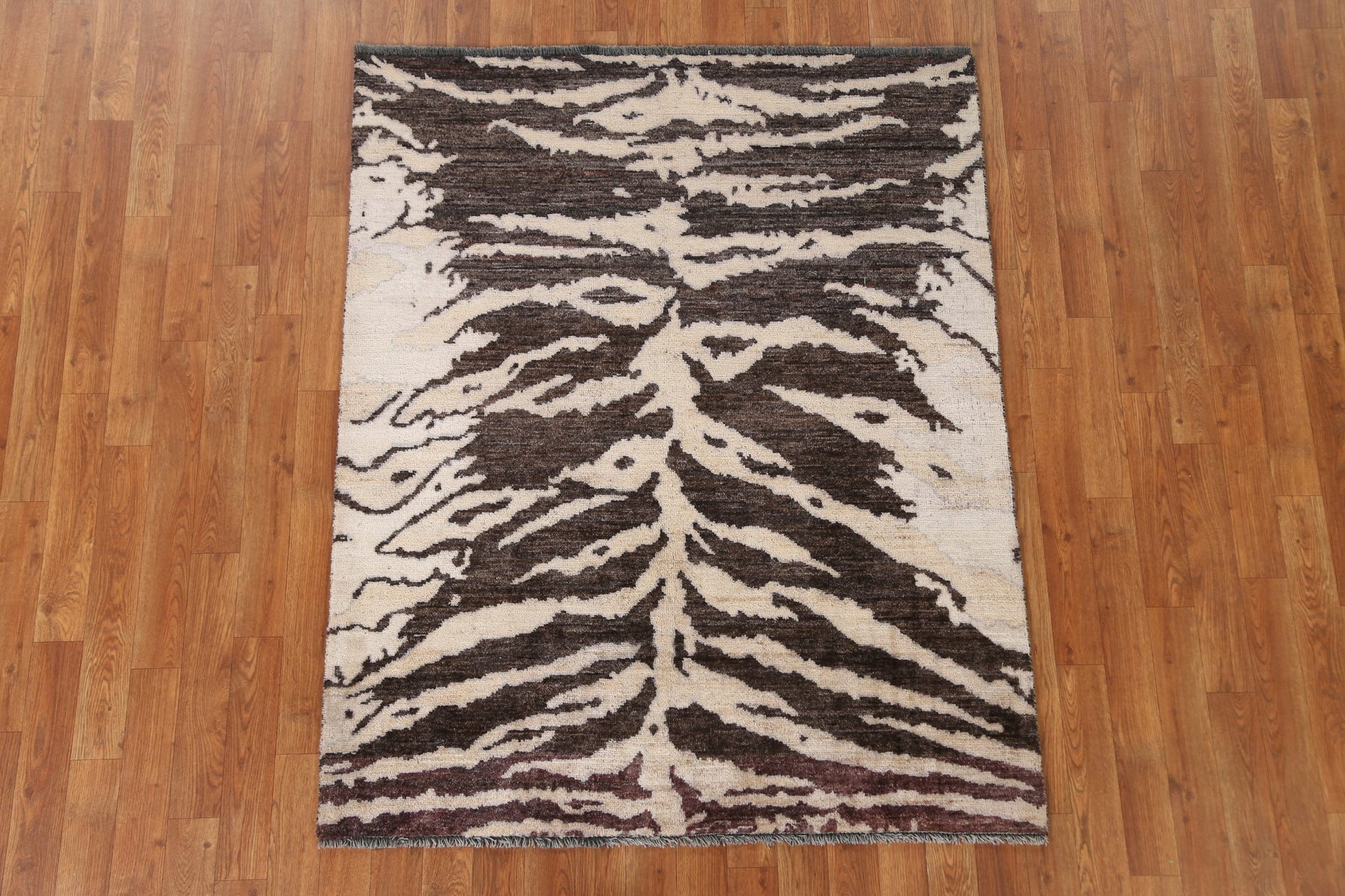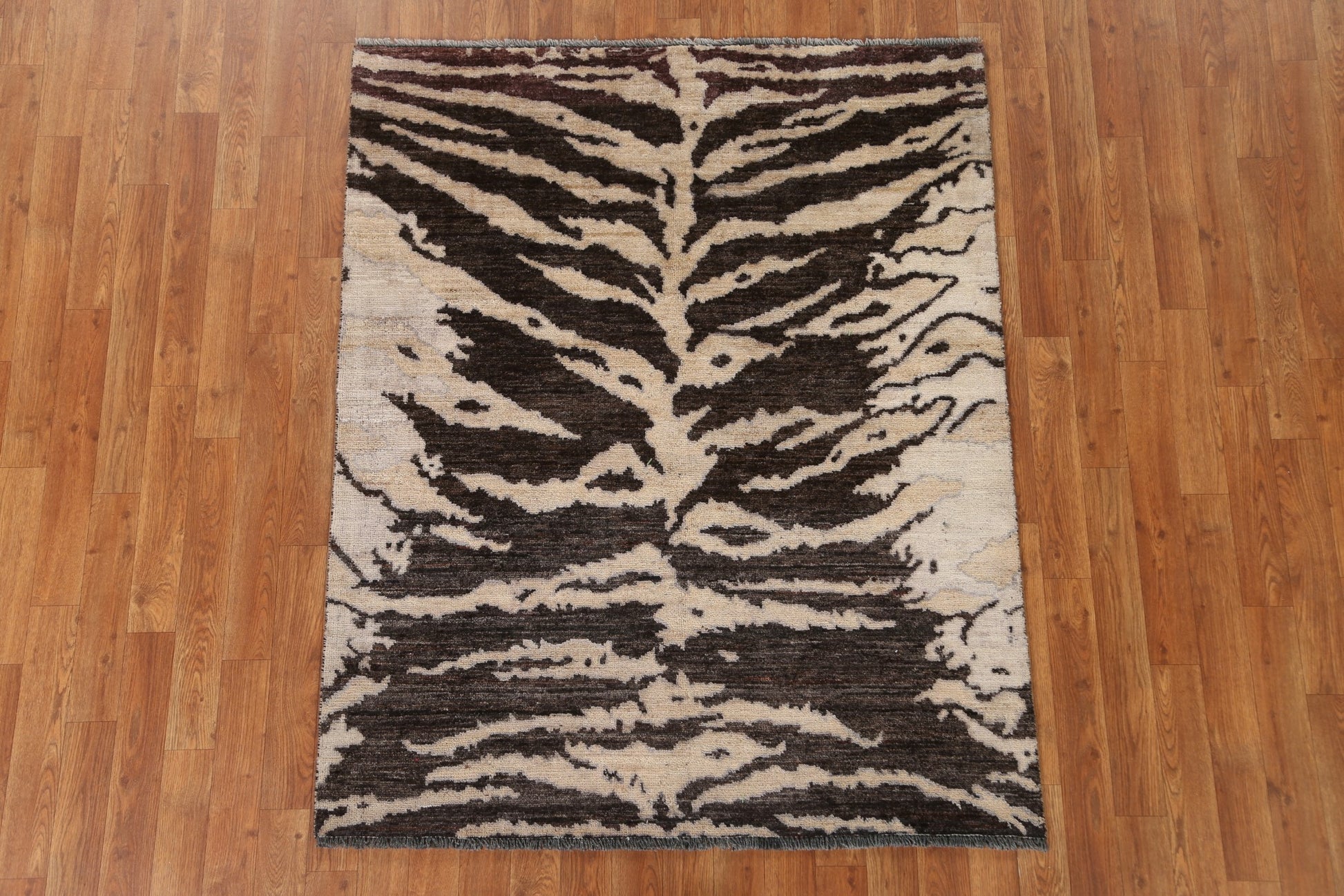 A Beautiful Genuine Pakistan Abstract rug is Hand Knotted by skillful weavers in Pakistan with 100% Wool Material. This rug is in New, First Quality condition. dimensions are 4' 10'' X 3' 11'' in foot and 147 X 119 in centimeter. the primary color is Brown.