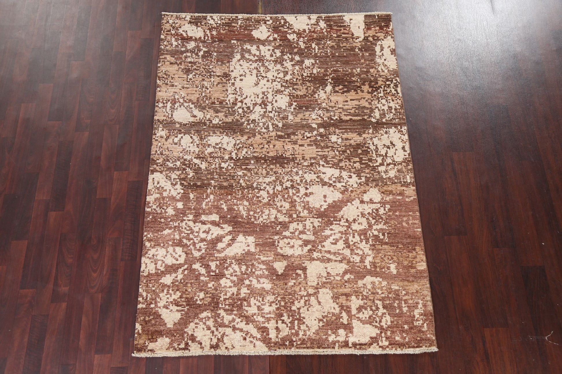 A Beautiful Genuine Pakistan Abstract rug is Hand Knotted by skillful weavers in Pakistan with 100% Wool Material. This rug is in New, First Quality condition. dimensions are 6' 10'' X 4' 10'' in foot and 208 X 147 in centimeter. the primary color is Brown.
