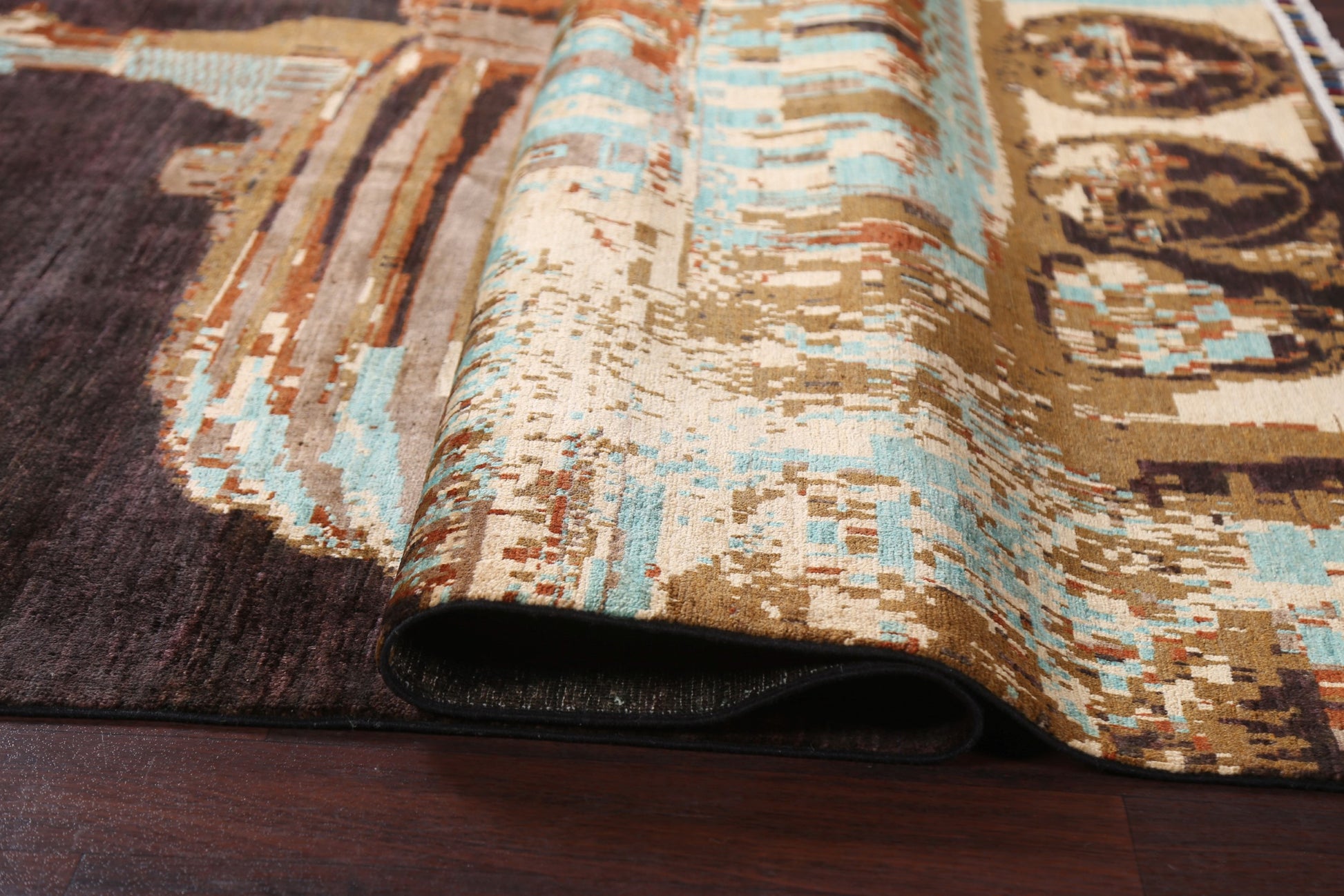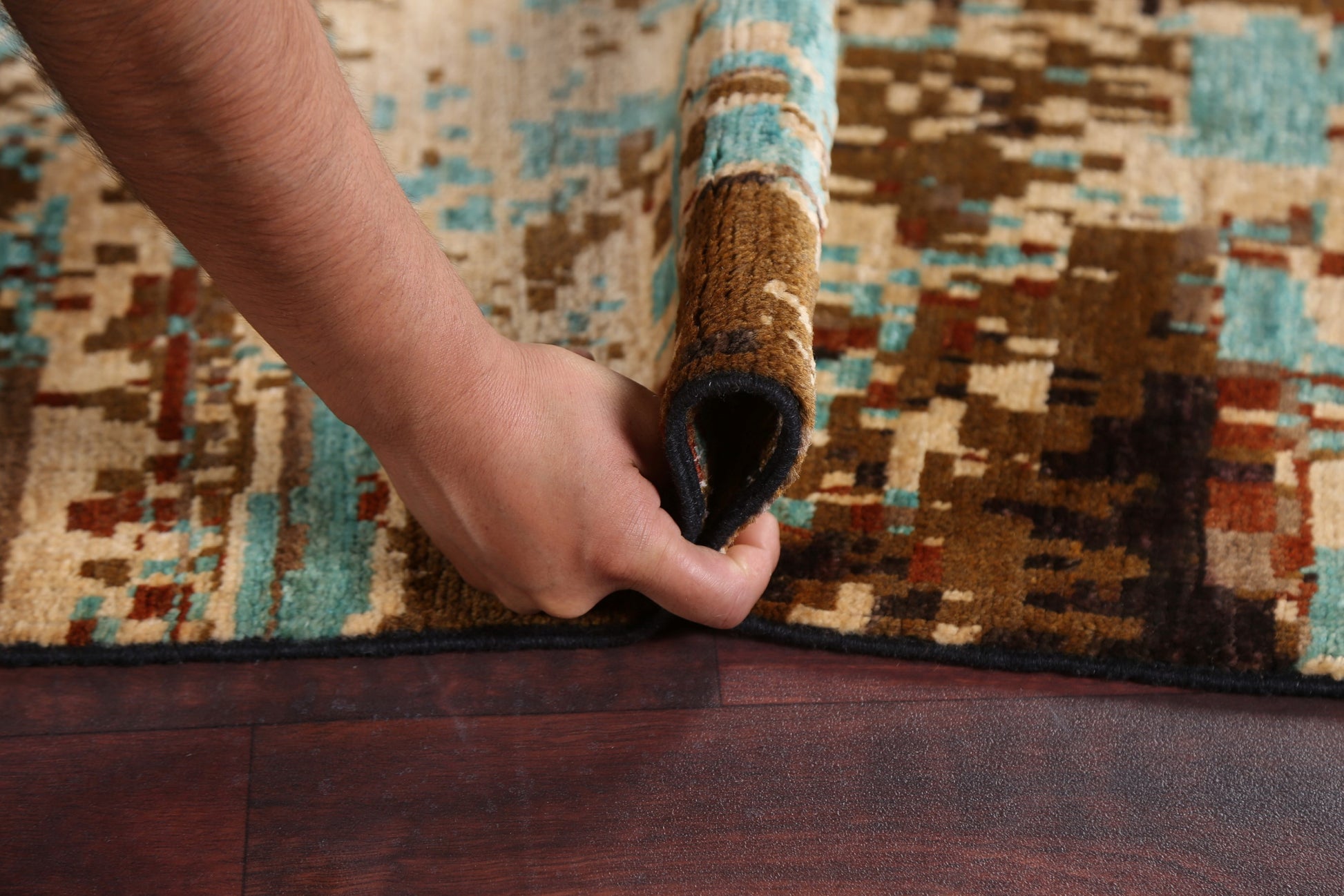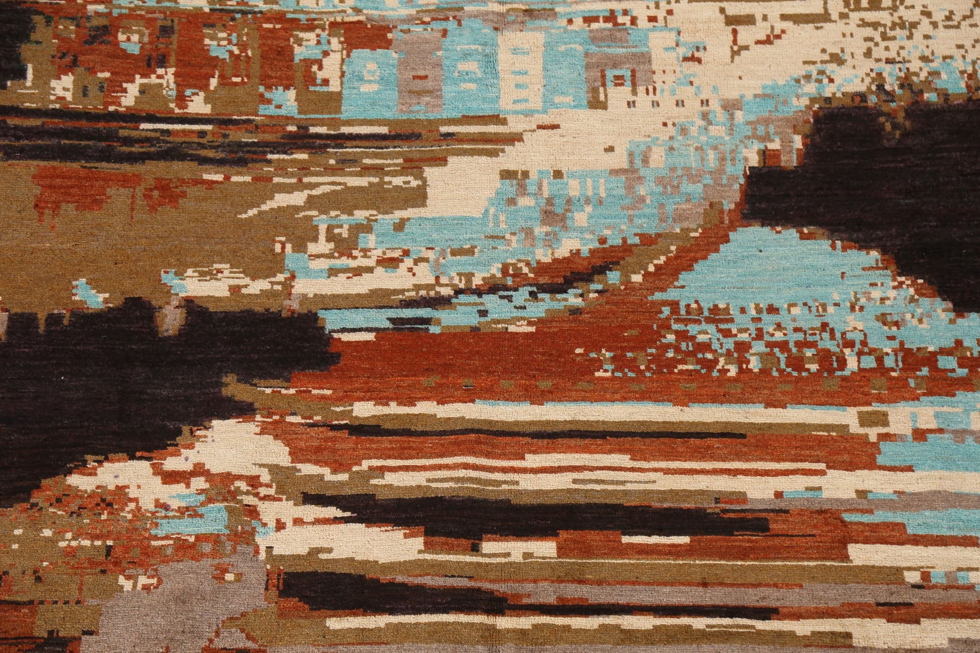 A Beautiful Genuine Pakistan Abstract rug is Hand Knotted by skillful weavers in Pakistan with 100% Wool Material. This rug is in New, First Quality condition. dimensions are 7' 9'' X 6' 5'' in foot and  236 X 196 in centimeter. the primary color is Multi-Colored.