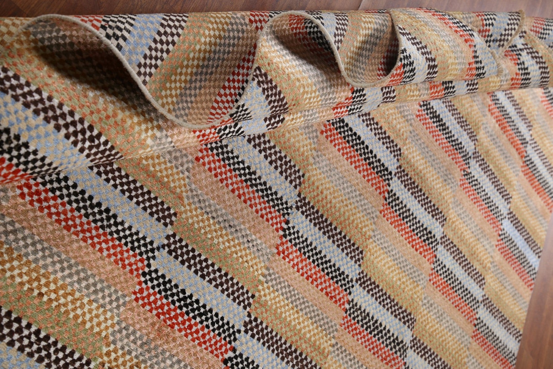 A Beautiful Genuine Pakistan Abstract rug is Hand Knotted by skillful weavers in Pakistan with Wool & Silk Material. This rug is in New, First Quality condition. dimensions are 10' 5'' X 8' 1'' in foot and  318 X 246 in centimeter. the primary color is Multi-Colored.