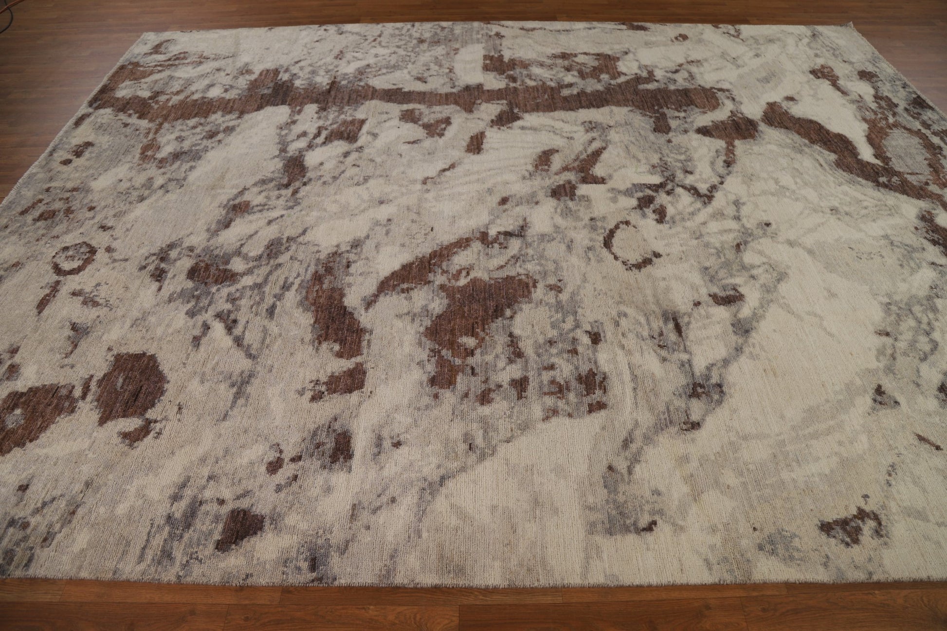 A Beautiful Genuine Pakistan Abstract rug is Hand Knotted by skillful weavers in Pakistan with 100% Wool Material. This rug is in New, First Quality condition. dimensions are 11' 9'' X 9' 0'' in foot and 358 X 274 in centimeter. the primary color is Beige & Ivories.