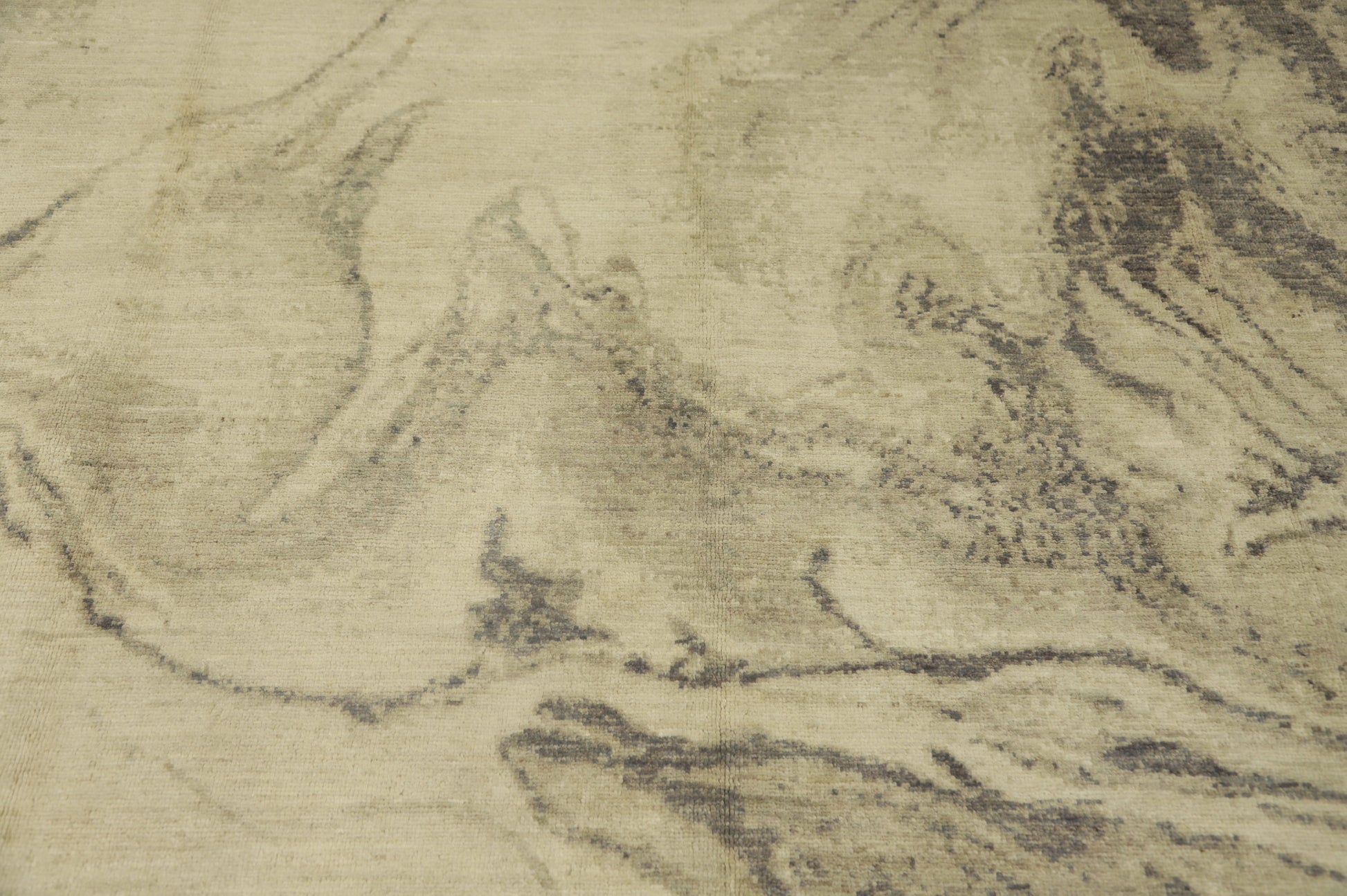A Beautiful Genuine Pakistan Abstract rug is Hand Knotted by skillful weavers in Pakistan with 100% Wool Material. This rug is in New, First Quality condition. dimensions are 9' 9'' X 6' 11'' in foot and 297 X 211 in centimeter. the primary color is Beige & Ivories.