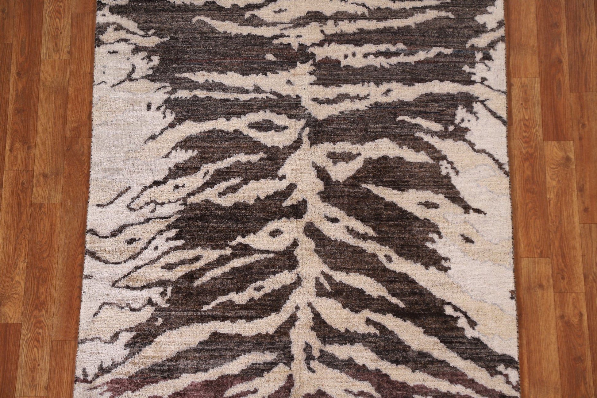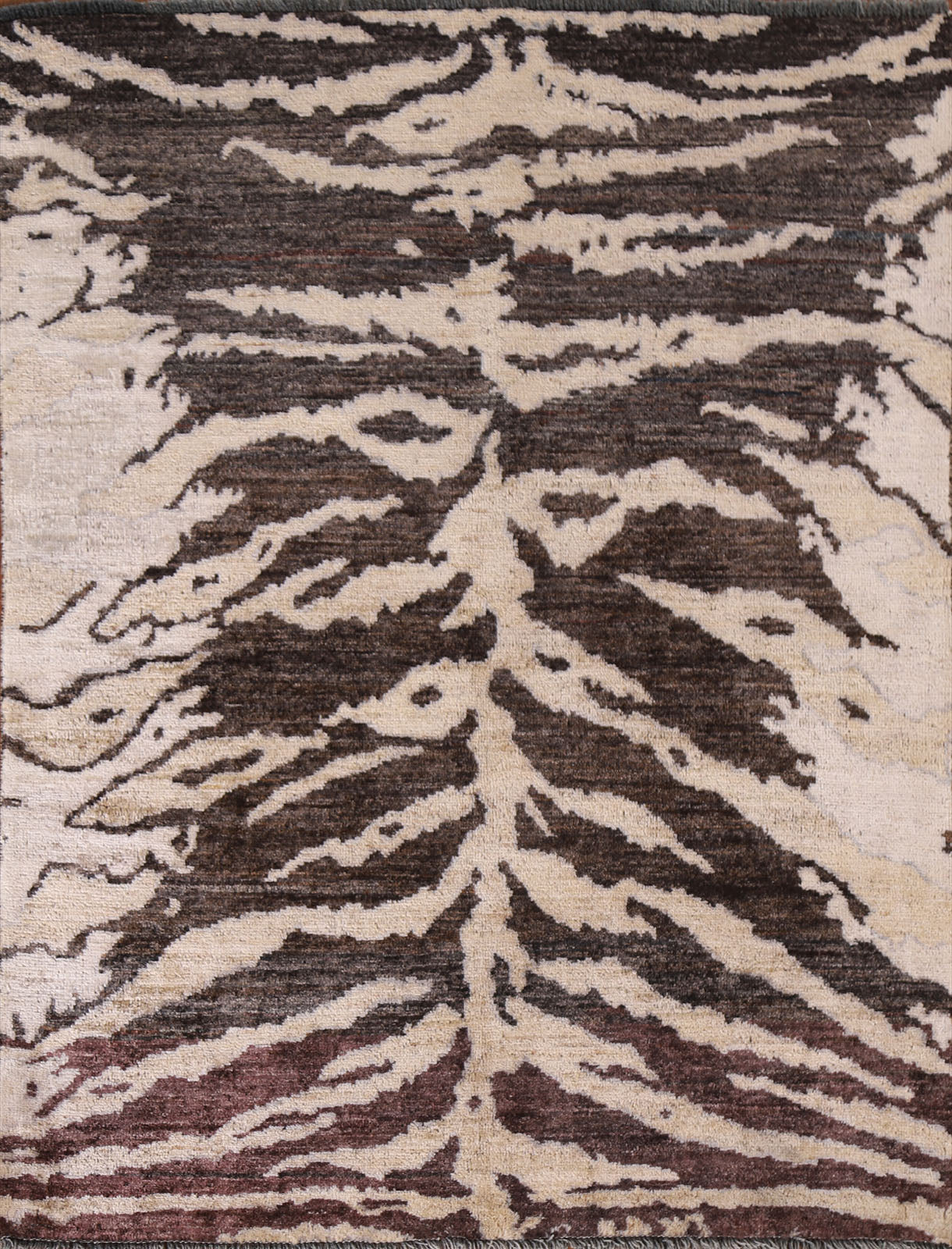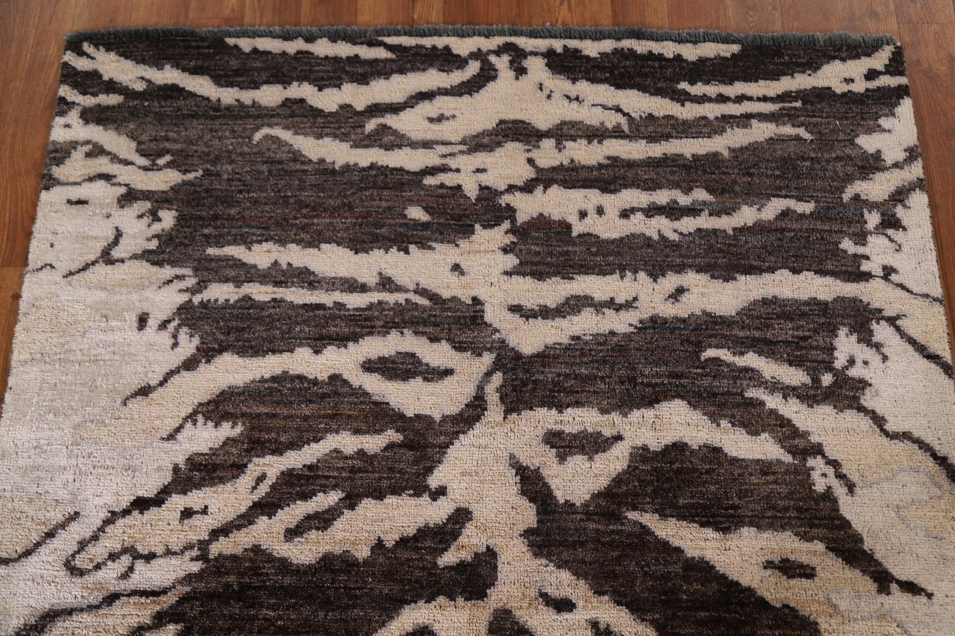 A Beautiful Genuine Pakistan Abstract rug is Hand Knotted by skillful weavers in Pakistan with 100% Wool Material. This rug is in New, First Quality condition. dimensions are 4' 11'' X 3' 11'' in foot and 150 X 119 in centimeter. the primary color is Brown.