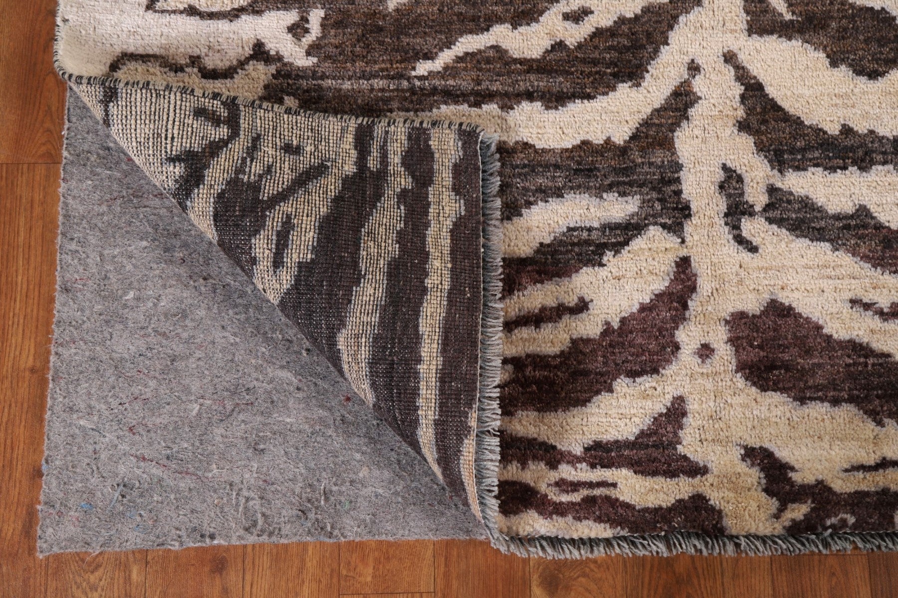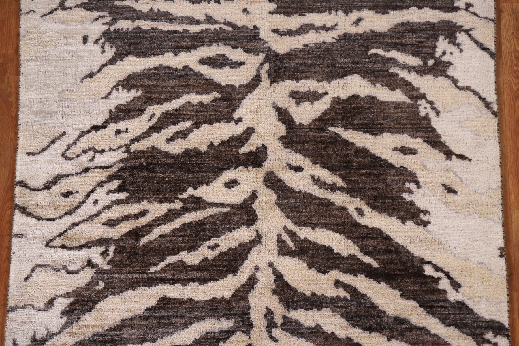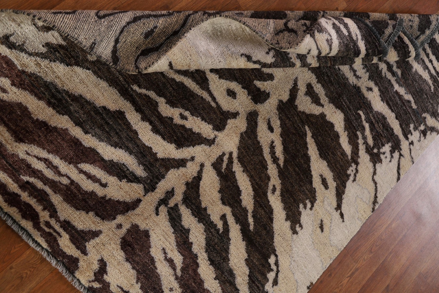 A Beautiful Genuine Pakistan Abstract rug is Hand Knotted by skillful weavers in Pakistan with 100% Wool Material. This rug is in New, First Quality condition. dimensions are 4' 11'' X 3' 11'' in foot and 150 X 119 in centimeter. the primary color is Brown.