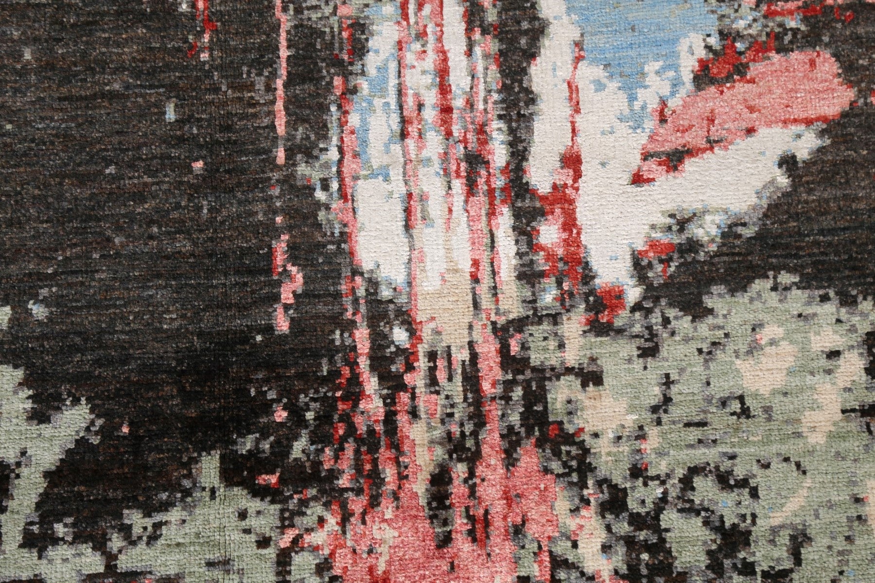 A Beautiful Genuine Pakistan Abstract rug is Hand Knotted by skillful weavers in Pakistan with Wool & Silk Material. This rug is in New, First Quality condition. dimensions are 5' 10'' X 3' 11'' in foot and 178 X 119 in centimeter. the primary color is Multi-Colored.