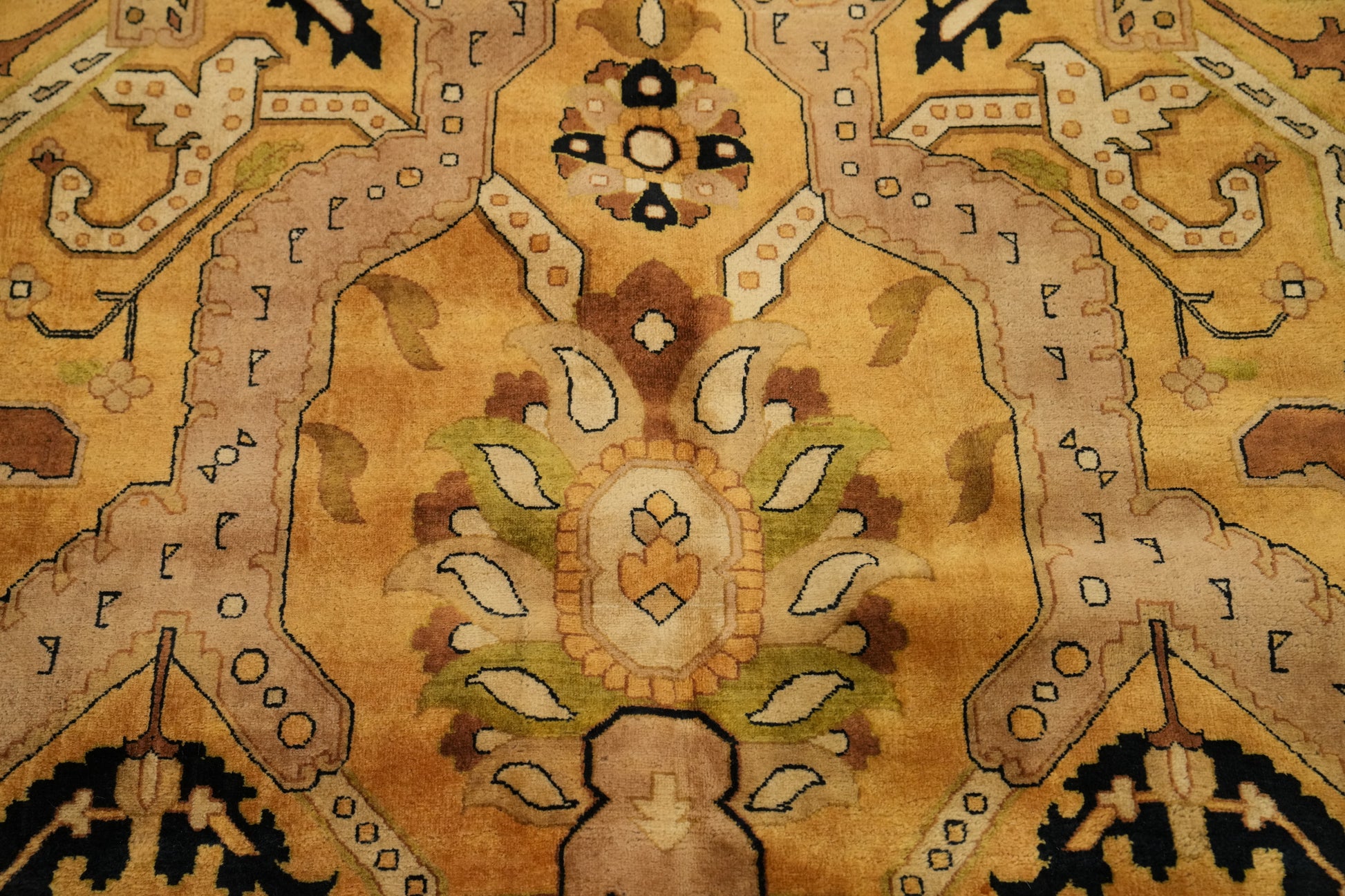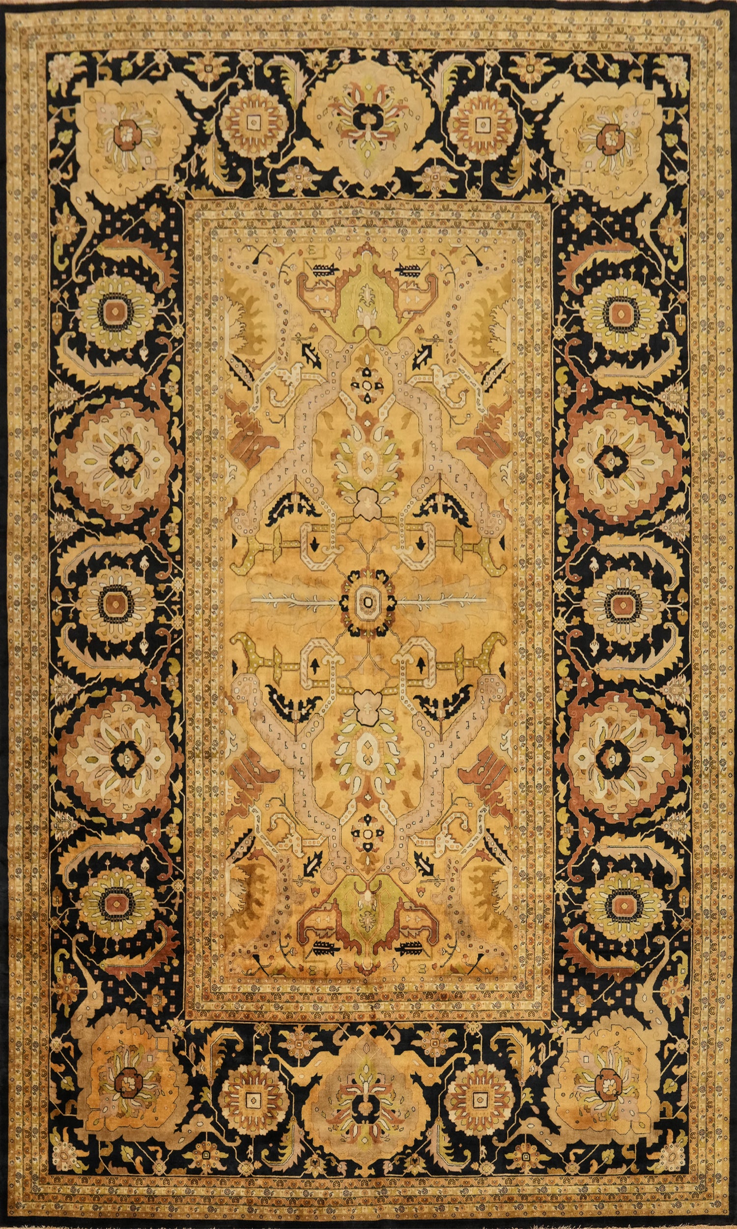 A Beautiful Genuine India Agra rug is Hand Knotted by skillful weavers in India with 100% Wool Material. This rug is in New, First Quality condition. dimensions are 18' 1'' X 11' 9'' in foot and 551 X 358 in centimeter. the primary color is Yellow & Gold.