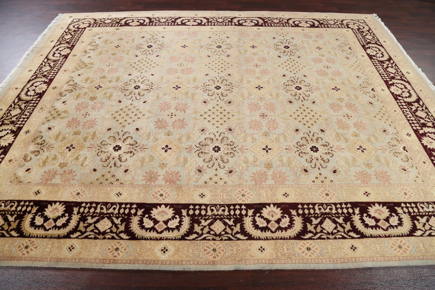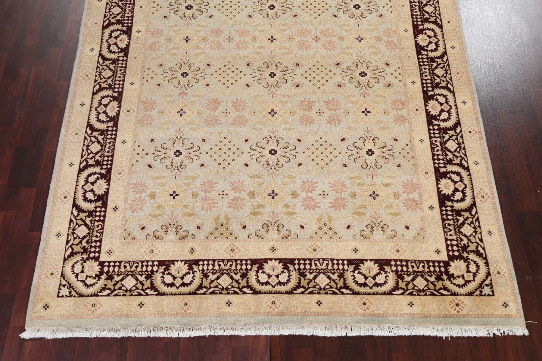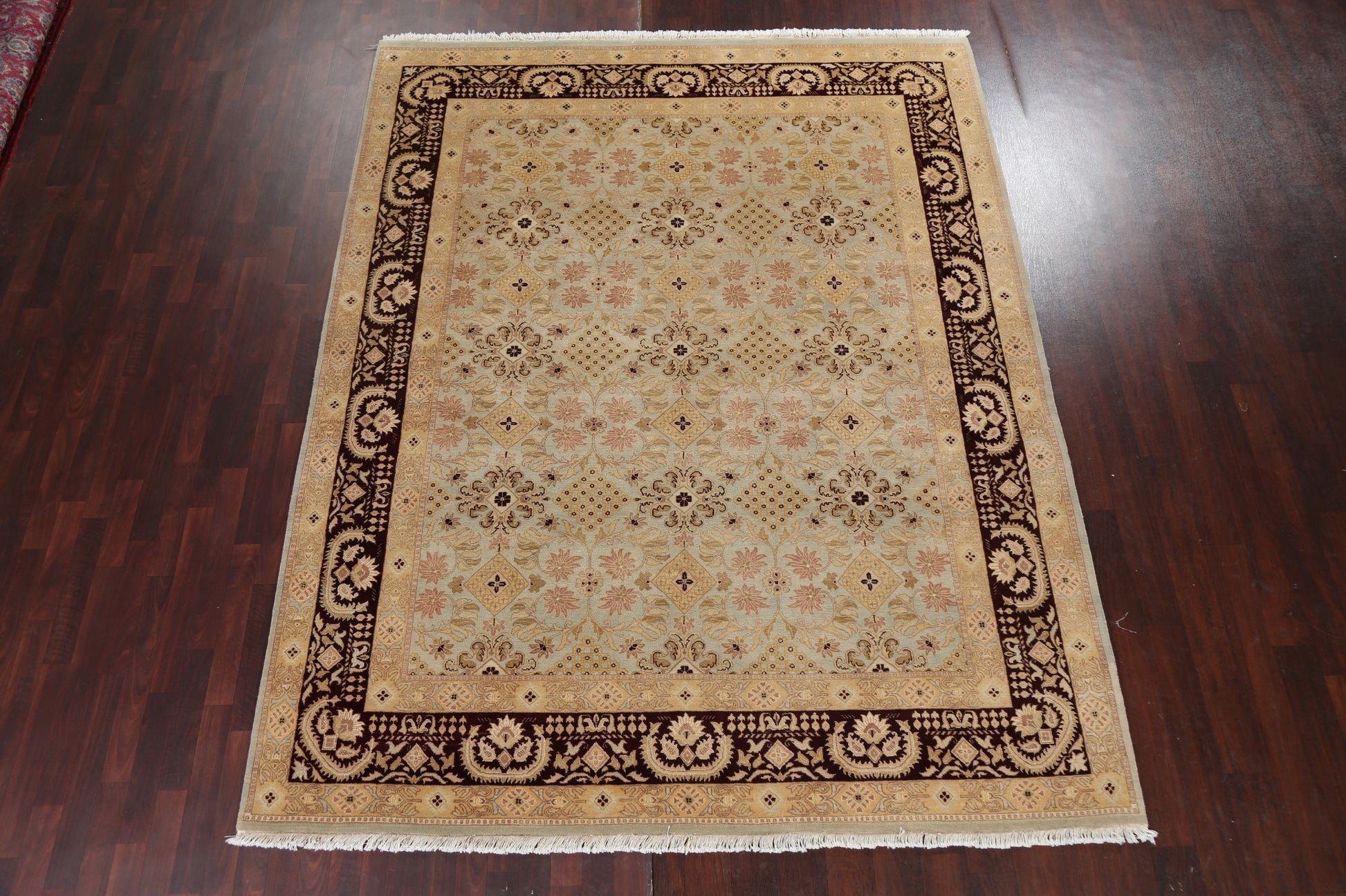 A Beautiful Genuine India Agra rug is Hand Knotted by skillful weavers in India with 100% Wool Material. This rug is in New, First Quality condition. dimensions are 10' 4'' X 8' 1'' in foot and 315 X 246 in centimeter. the primary color is Green.