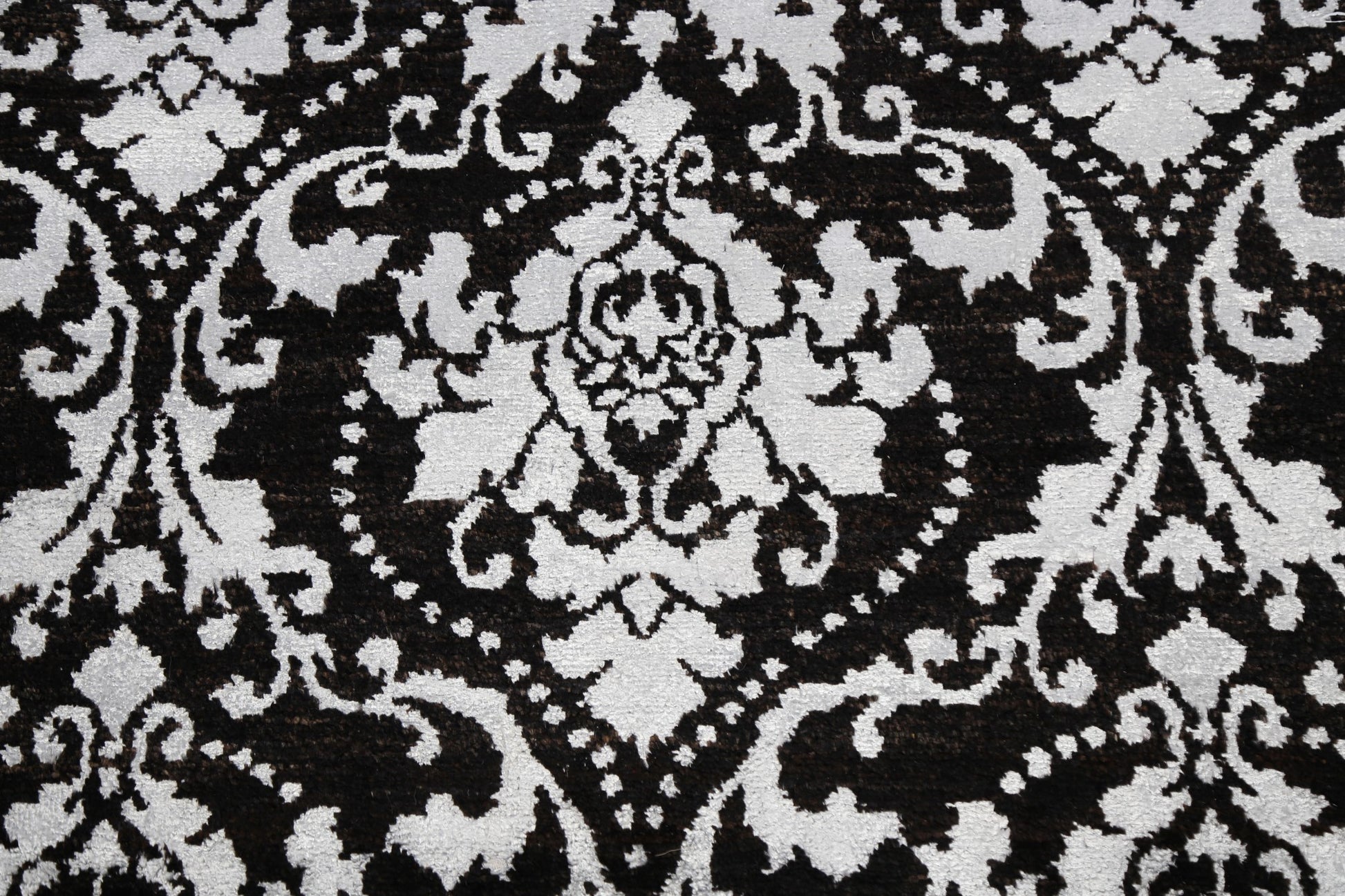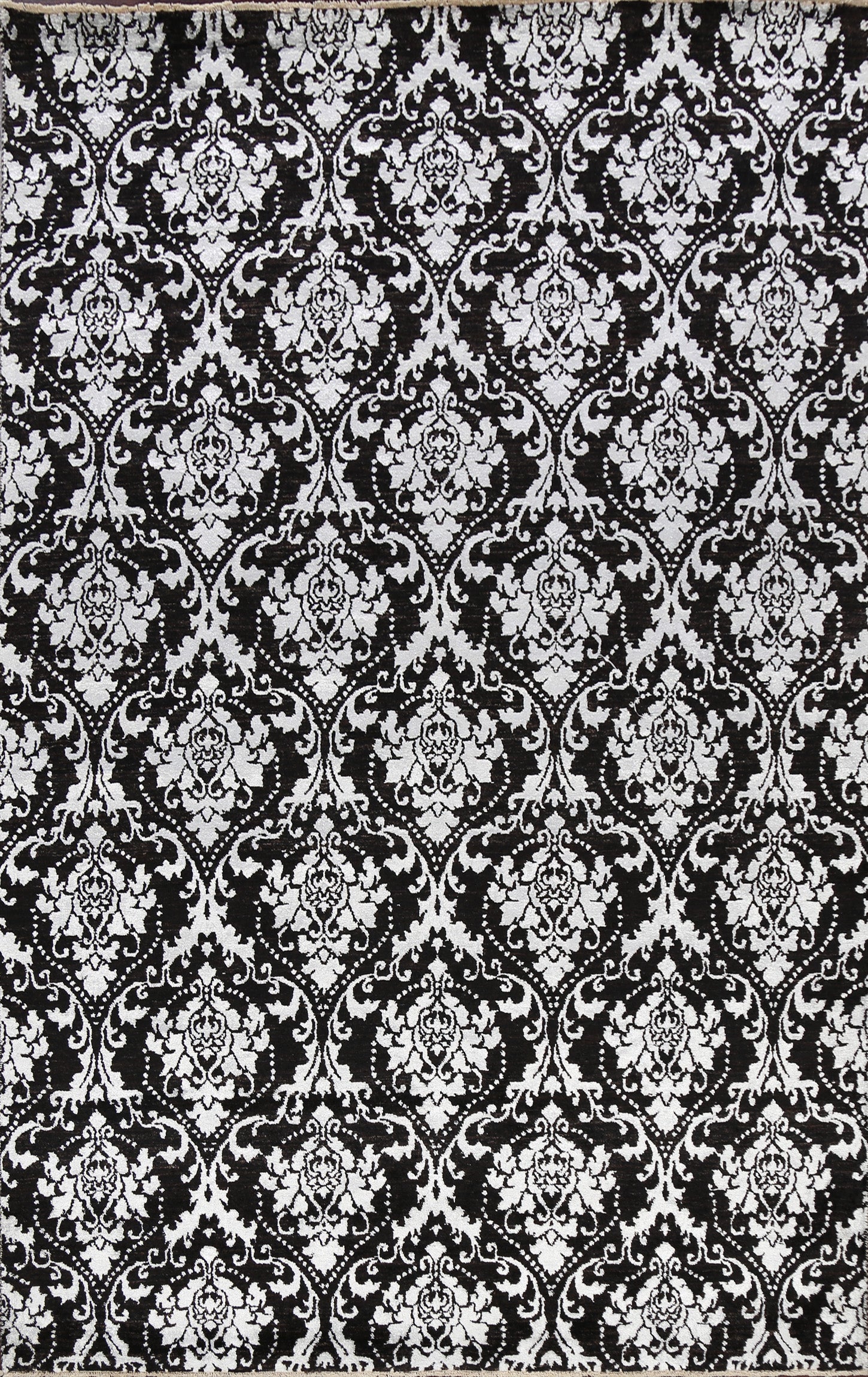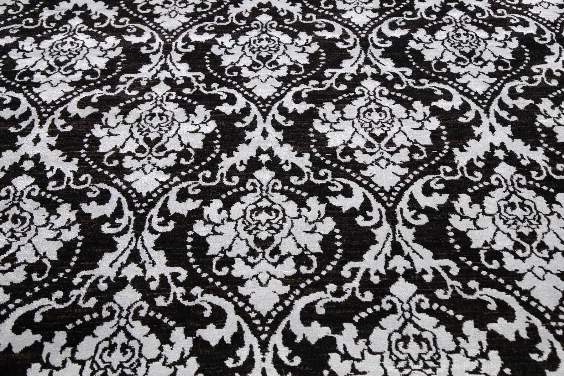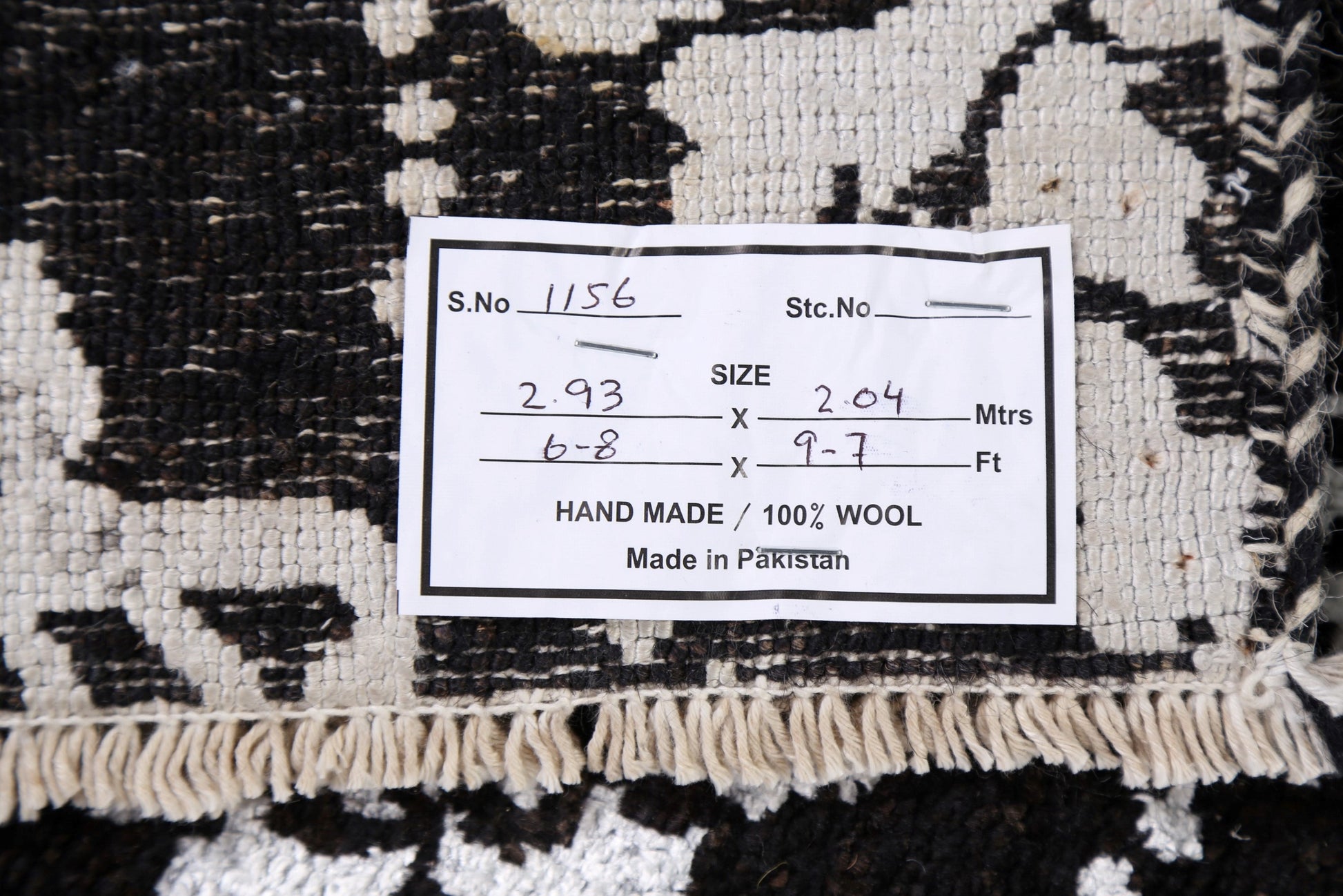 A Beautiful Genuine Pakistan Versace rug is Hand Knotted by skillful weavers in Pakistan with Wool & Silk Material. This rug is in New, First Quality condition. dimensions are 9' 7'' X 6' 8'' in foot and 292 X 203 in centimeter. the primary color is Black.