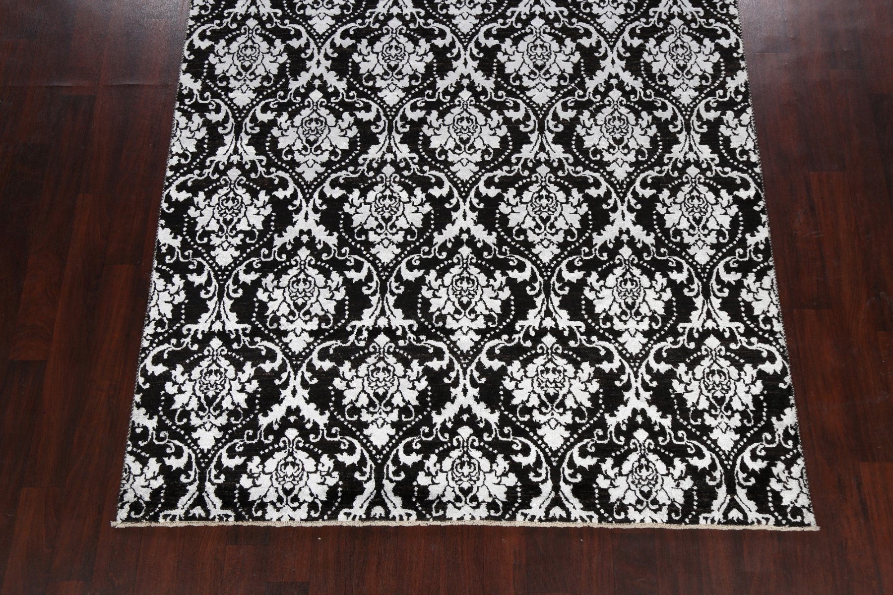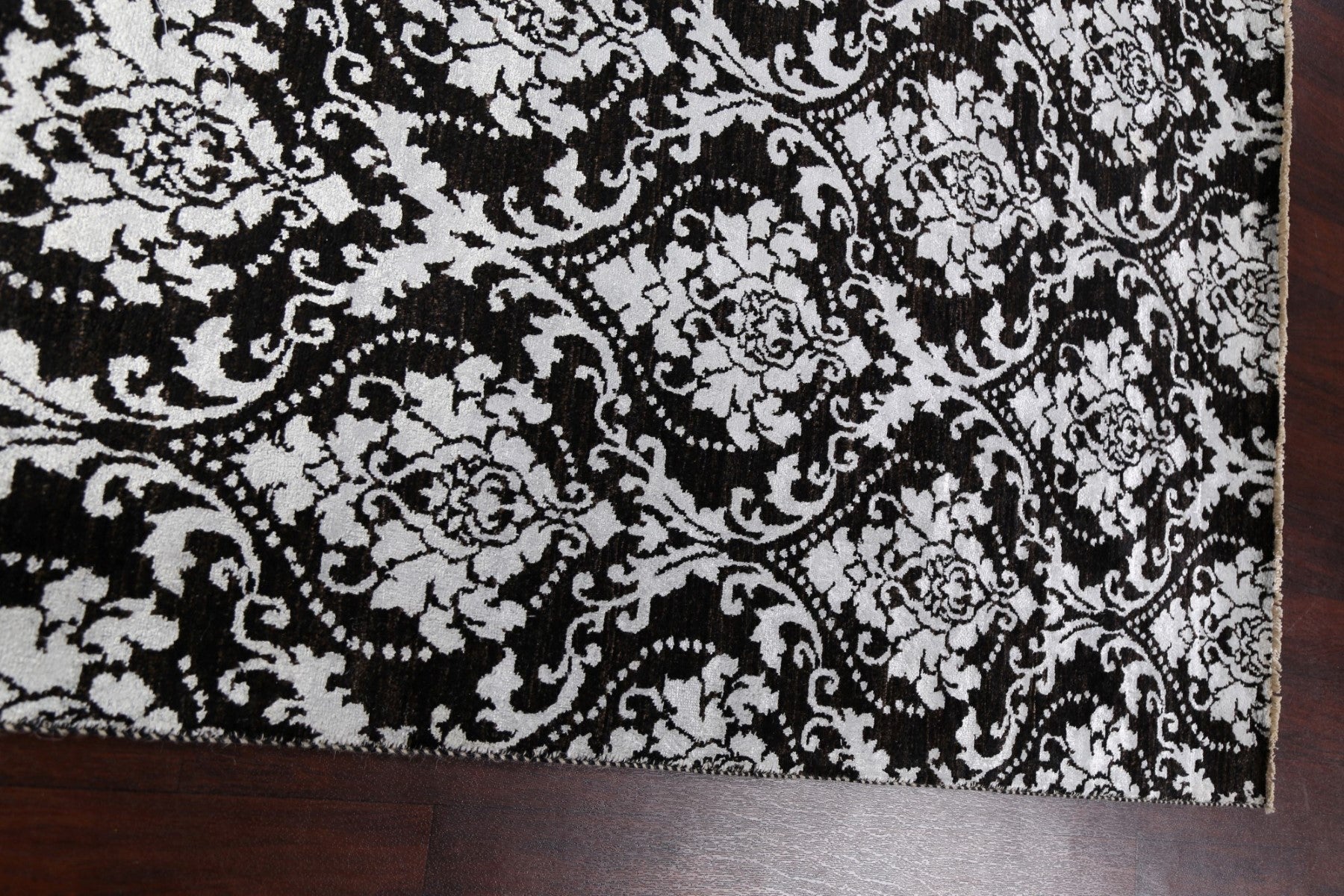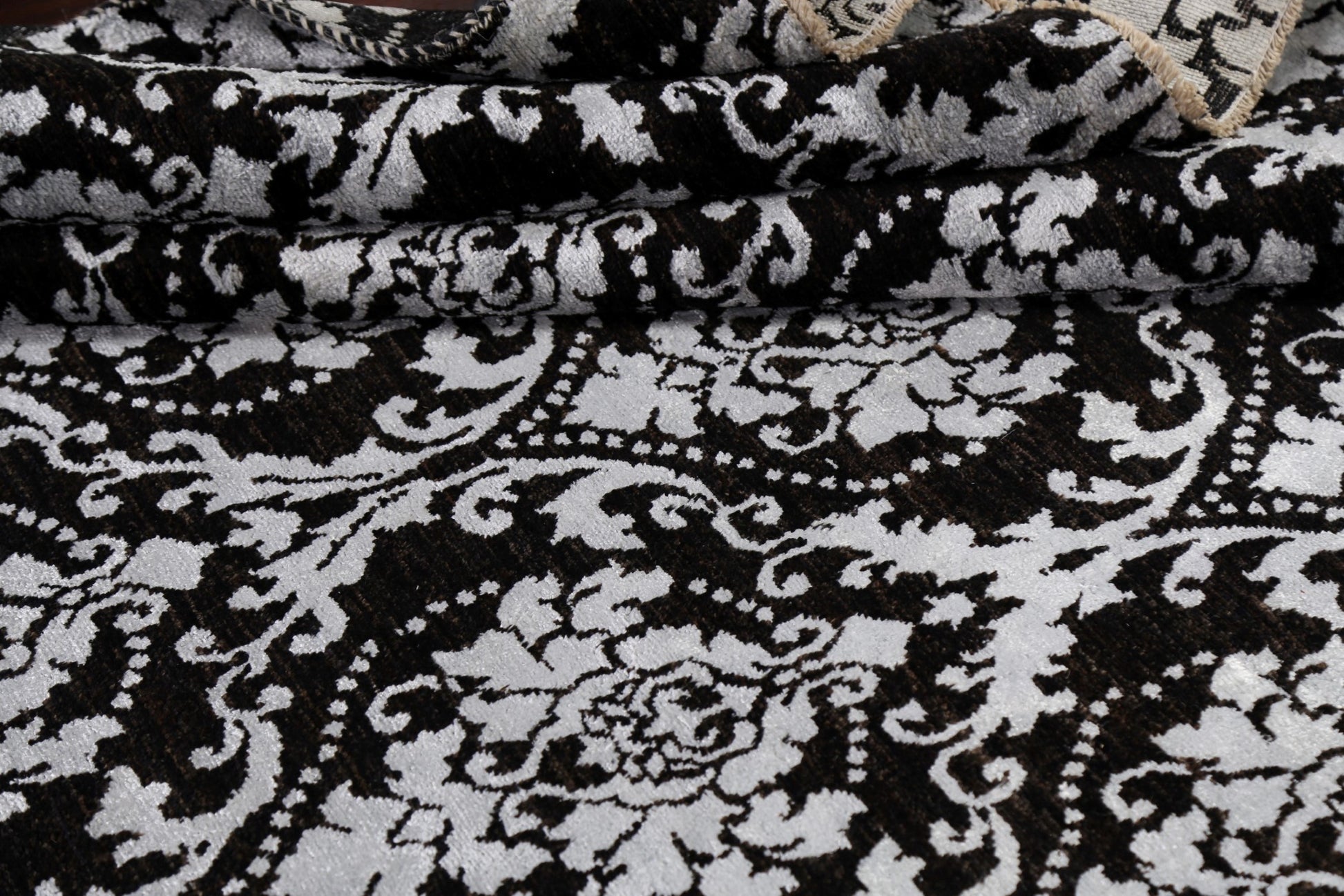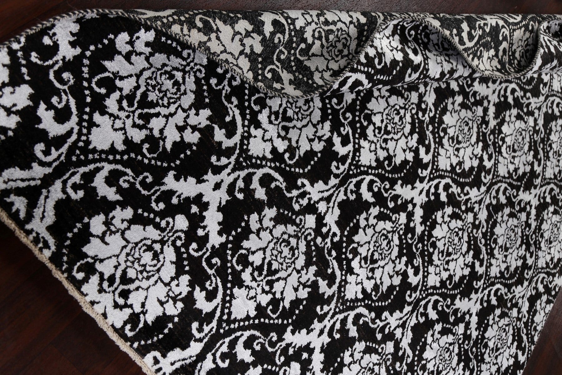 A Beautiful Genuine Pakistan Versace rug is Hand Knotted by skillful weavers in Pakistan with Wool & Silk Material. This rug is in New, First Quality condition. dimensions are 9' 7'' X 6' 8'' in foot and 292 X 203 in centimeter. the primary color is Black.
