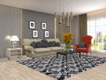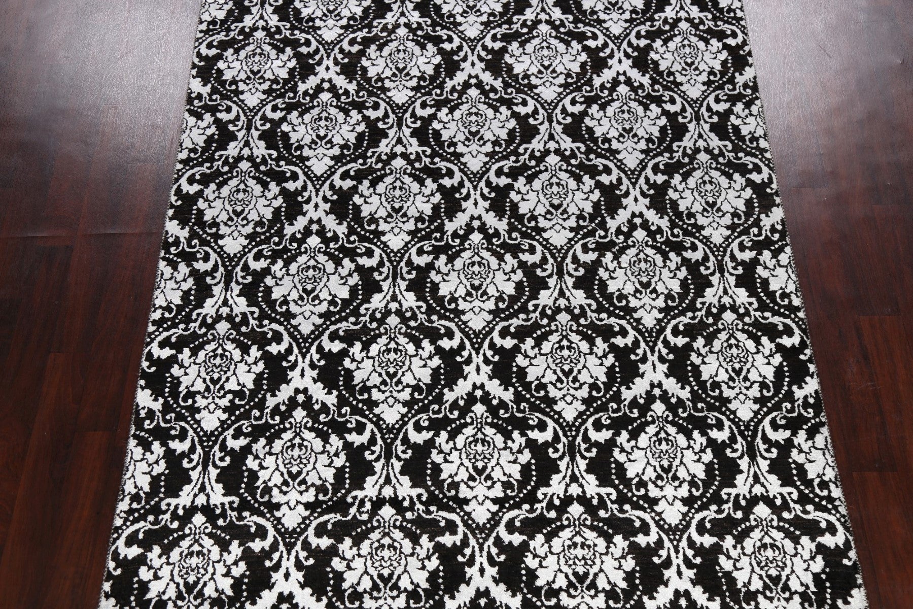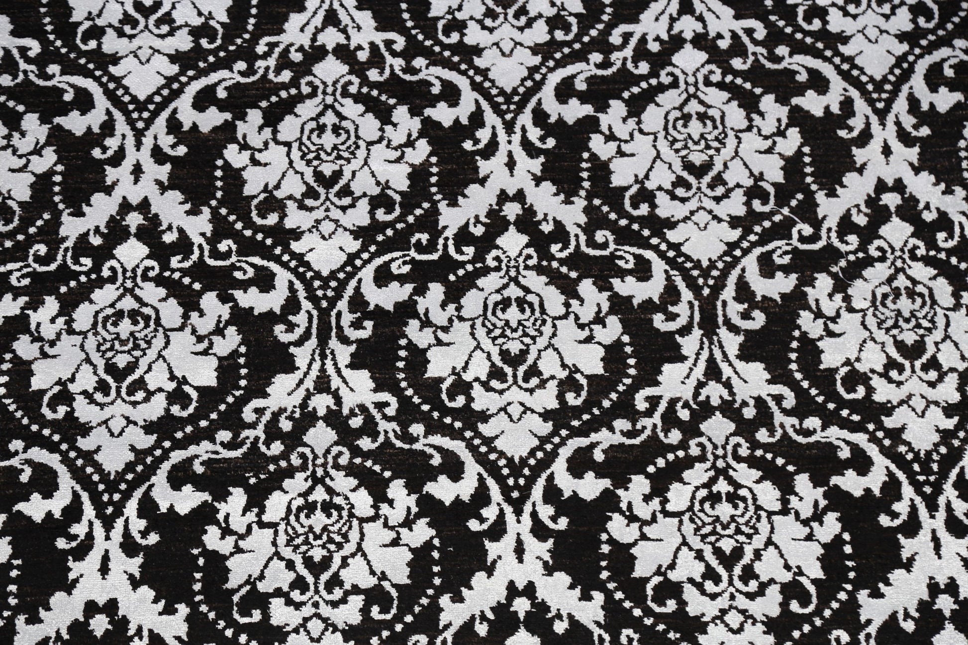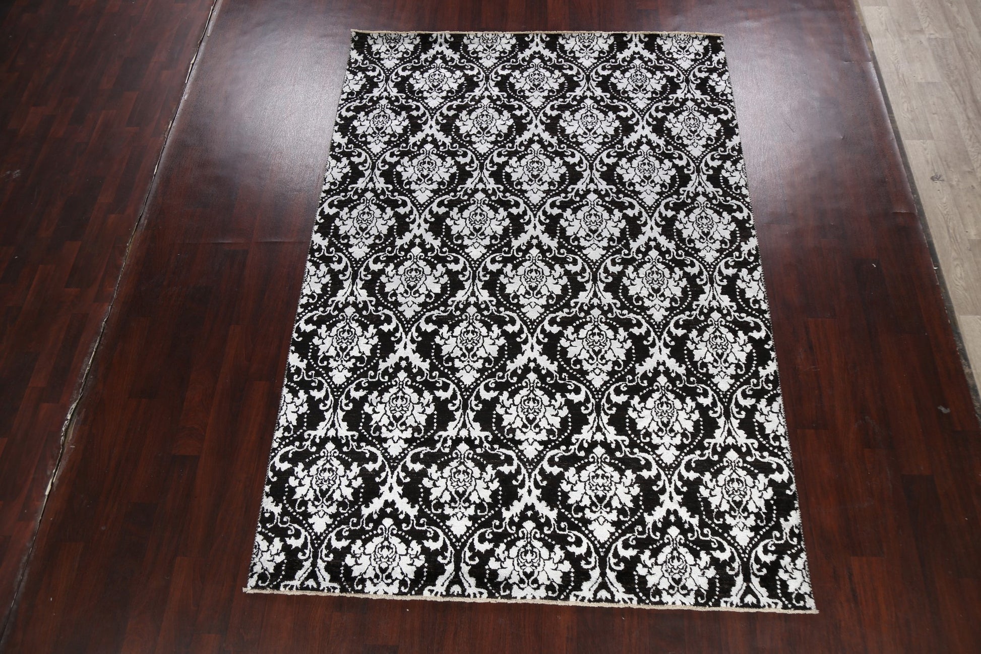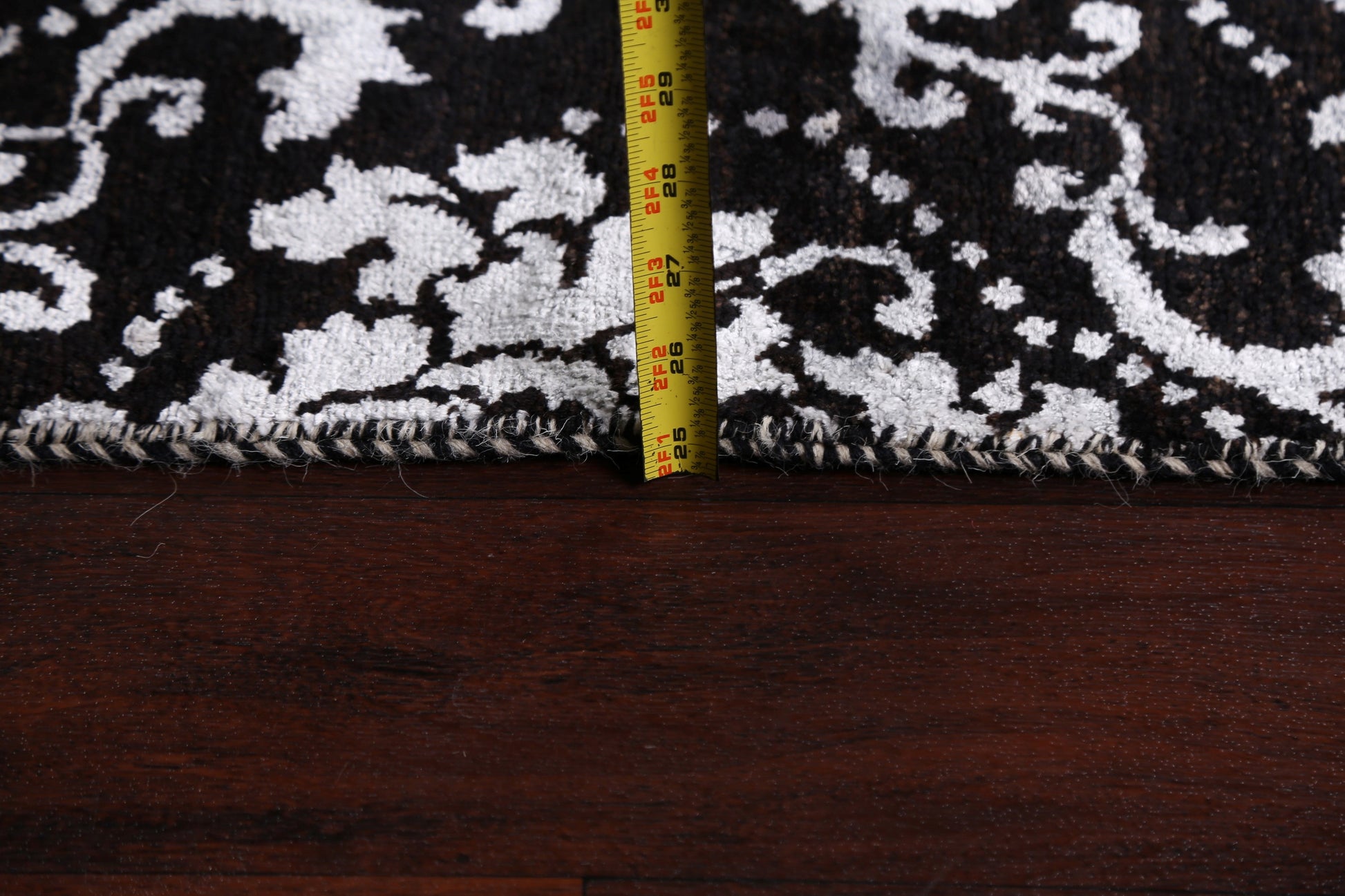 A Beautiful Genuine Pakistan Versace rug is Hand Knotted by skillful weavers in Pakistan with Wool & Silk Material. This rug is in New, First Quality condition. dimensions are 9' 7'' X 6' 8'' in foot and 292 X 203 in centimeter. the primary color is Black.