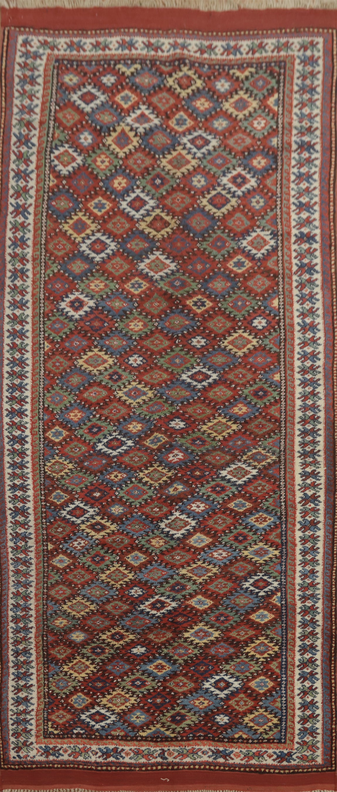 A Beautiful Genuine Turkey Anatolian rug is Hand Knotted by skillful weavers in Turkey with 100% Wool Material. This rug is in Very Good ( Low Pile ) condition. dimensions are 10' 11'' X 4' 10'' in foot and 333 X 147 in centimeter. the primary color is Multi-Colored.