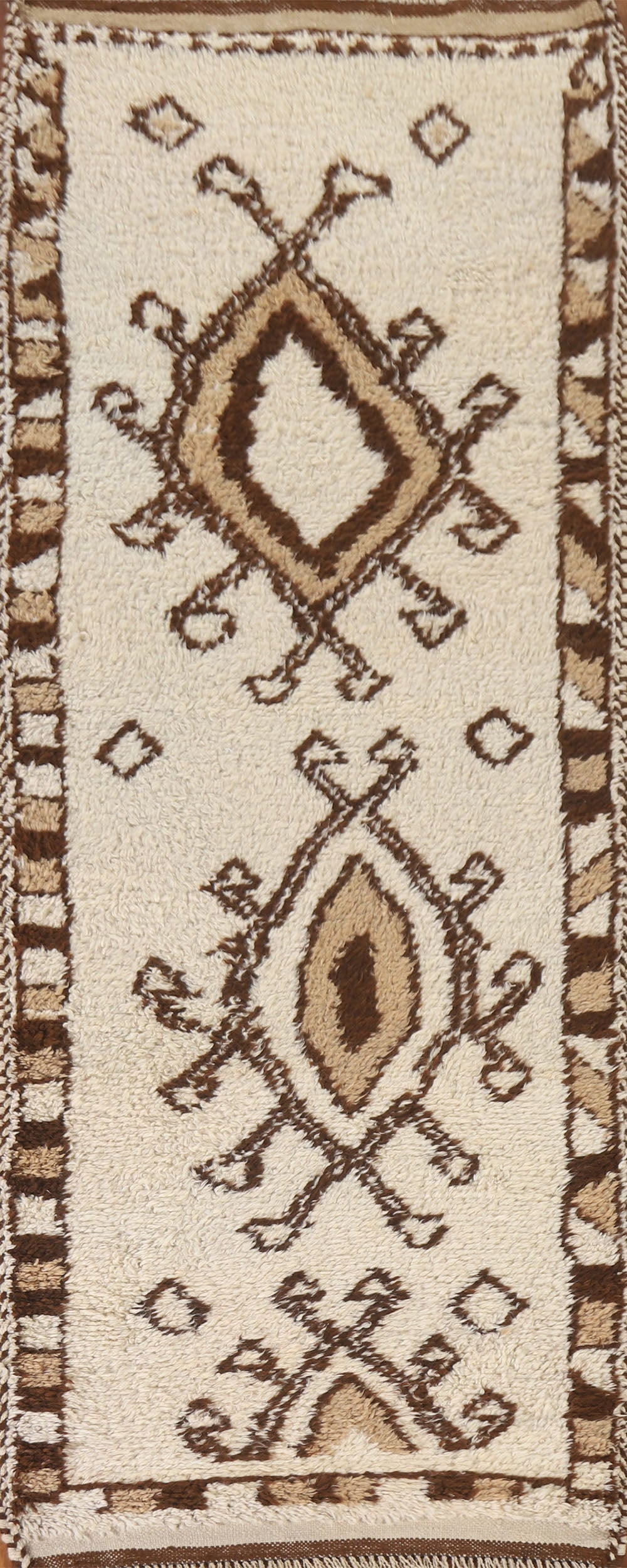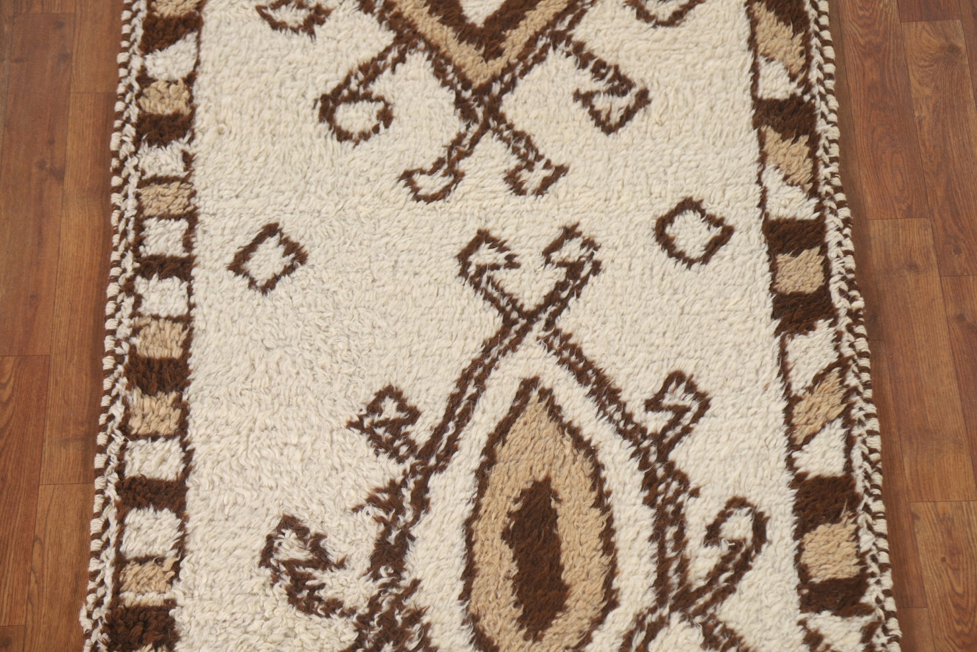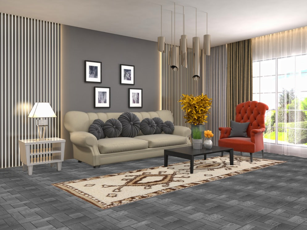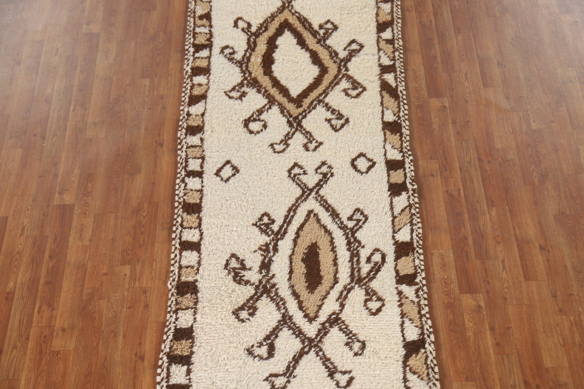 A Beautiful Genuine Turkey Anatolian rug is Hand Knotted by skillful weavers in Turkey with 100% Wool Material. This rug is in New, First Quality condition. dimensions are 10' 4'' X 3' 3'' in foot and 315 X 99 in centimeter. the primary color is Beige & Ivories.
