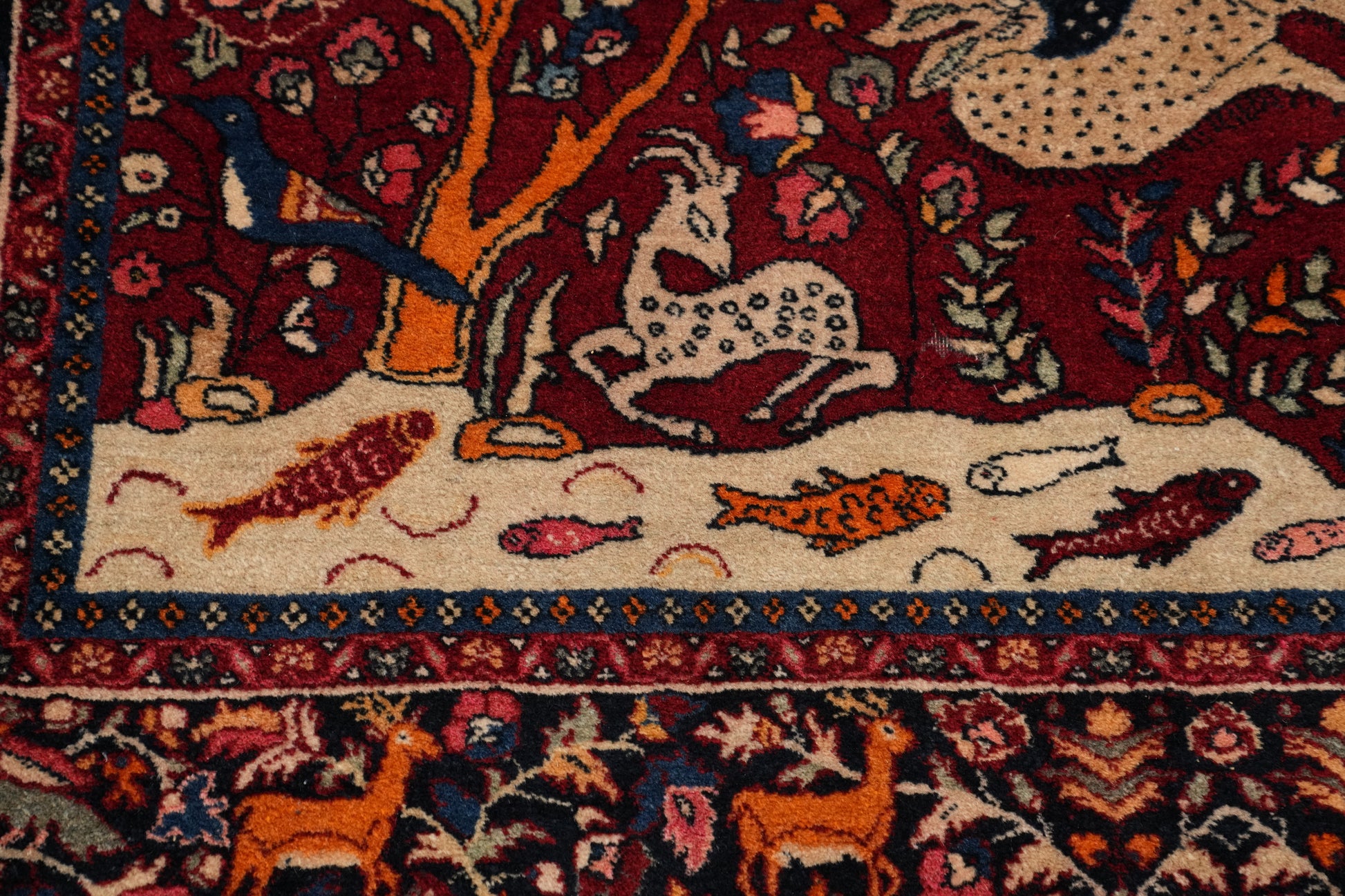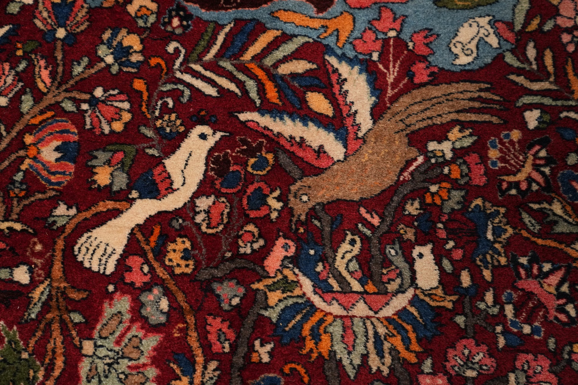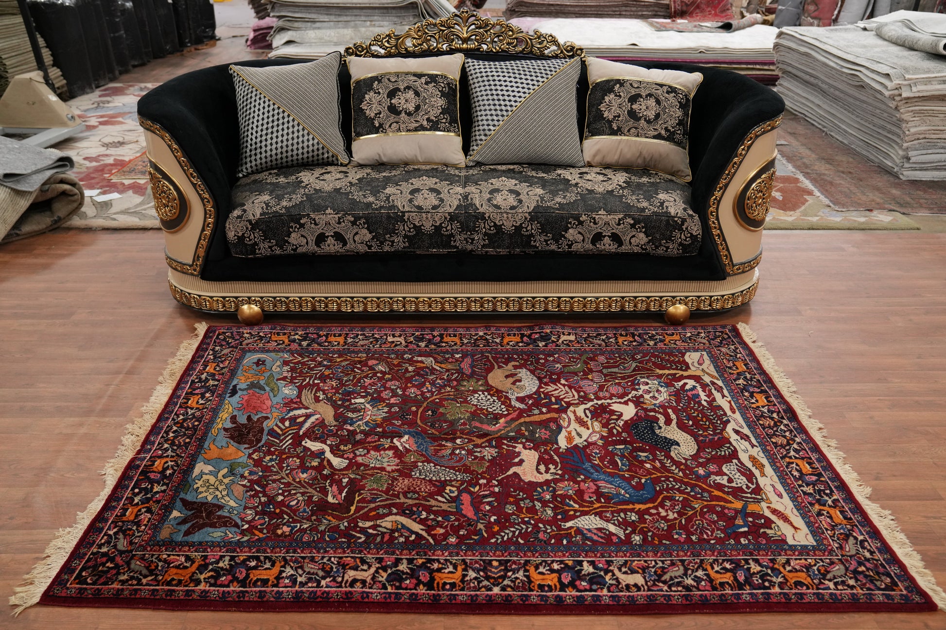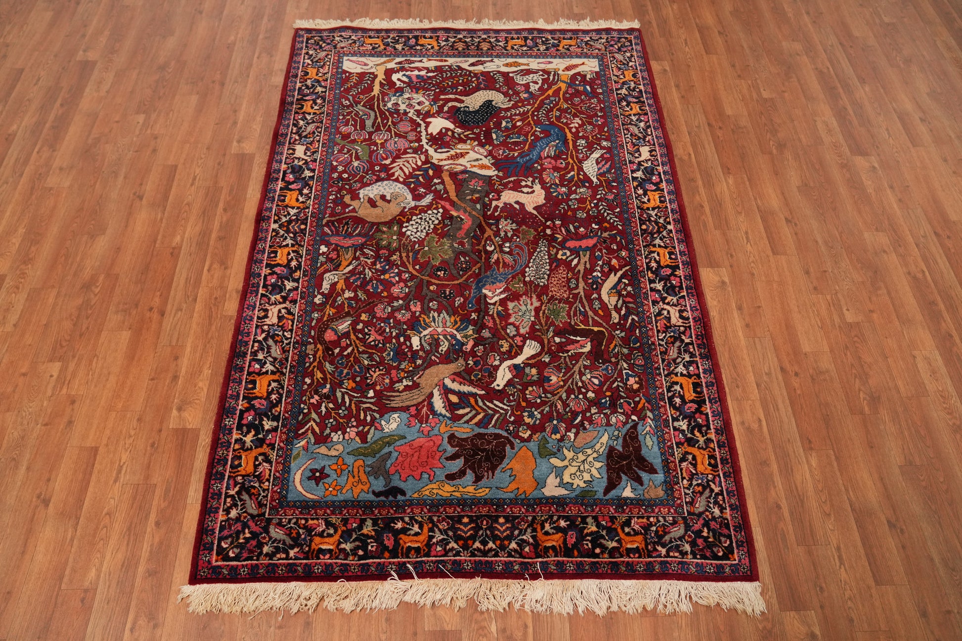 Vegetable Dye Animals Design Kashan Persian Rug 5x7