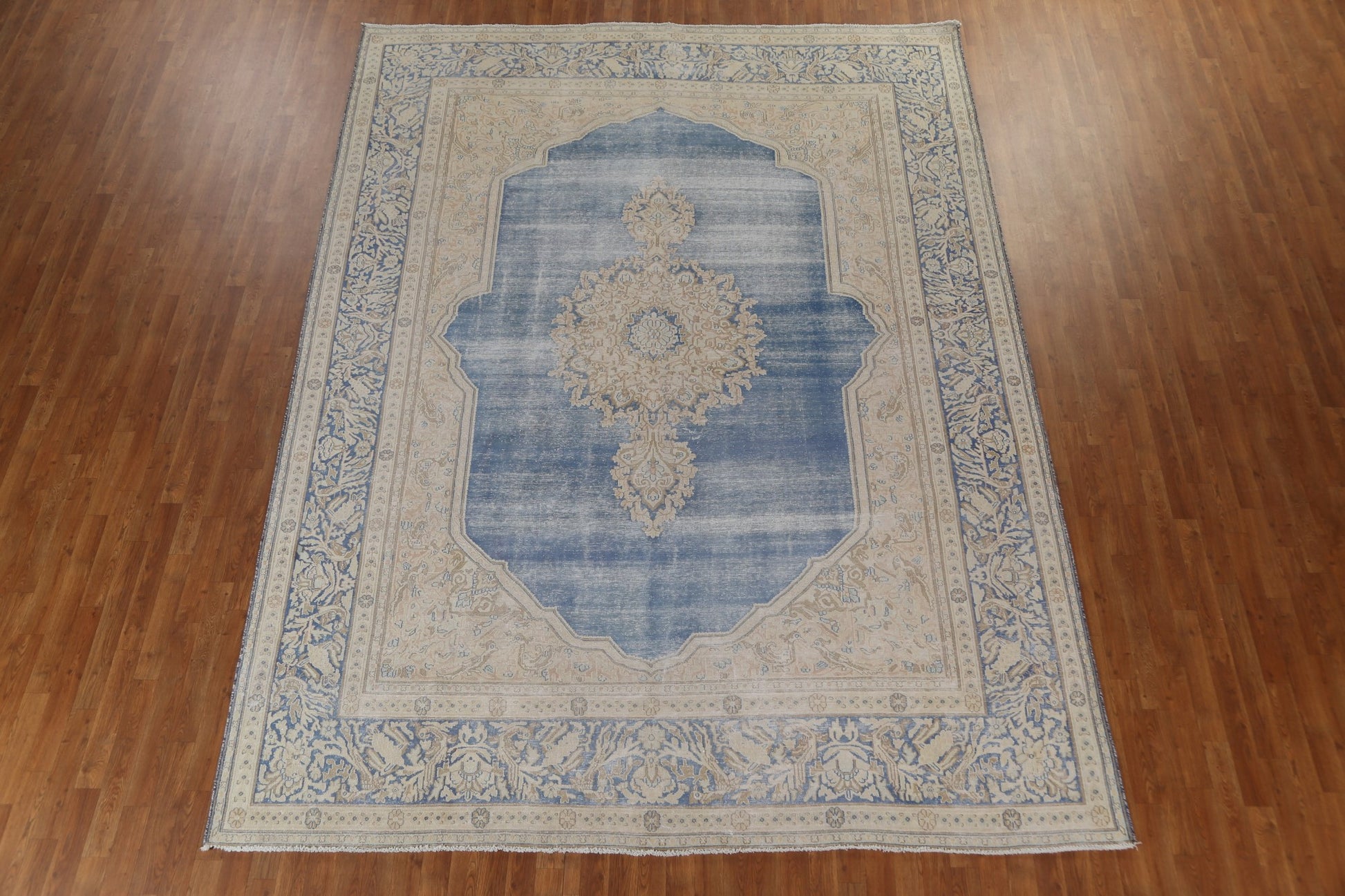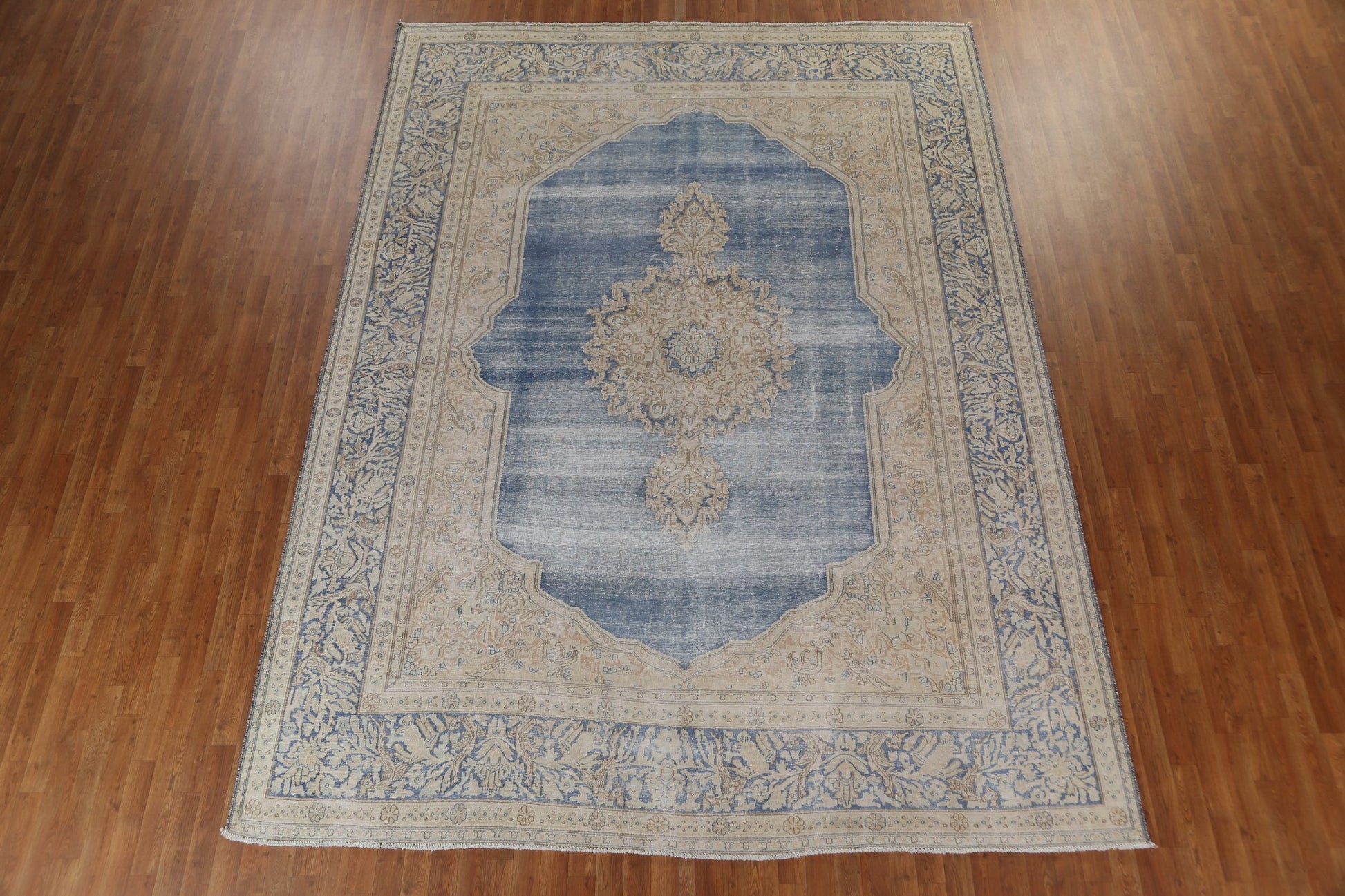 Vegetable Dye Antique Distressed Kerman Persian Area Rug 9x13