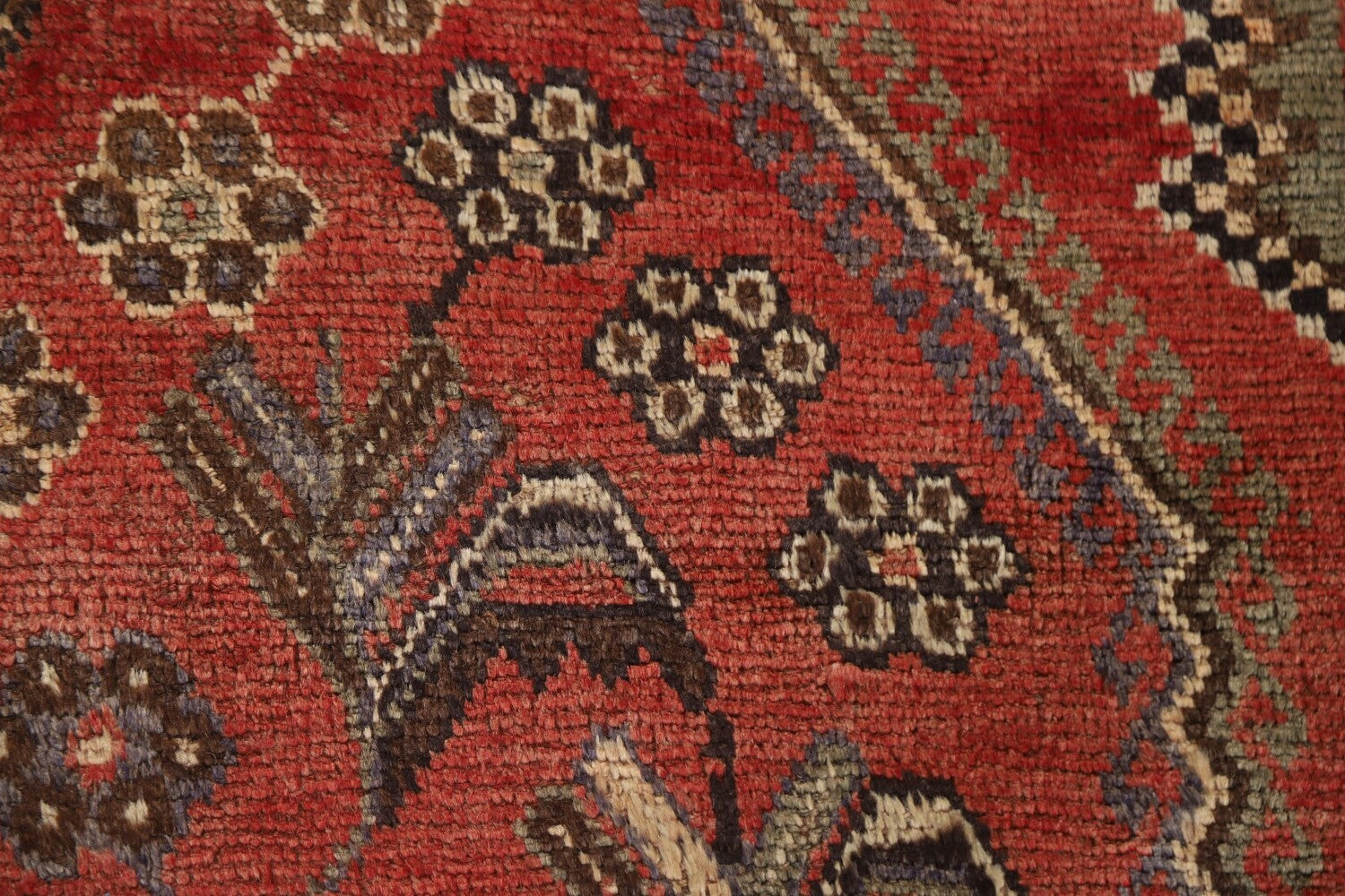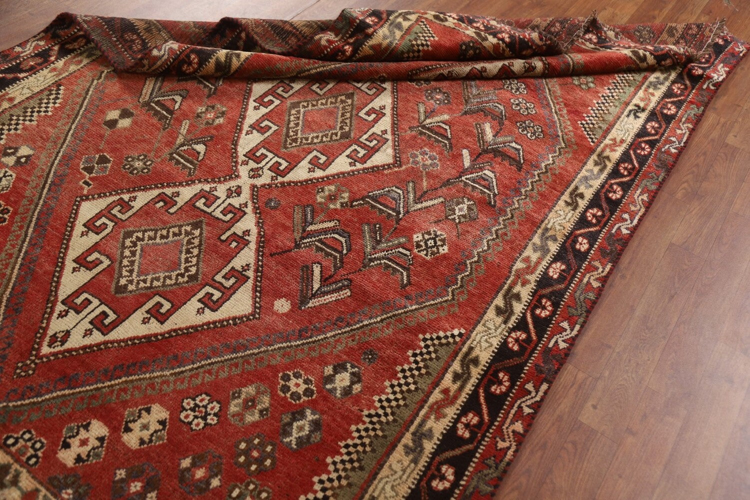 A Beautiful Genuine Persia ( Persia ) Ghashghaei rug is Hand Knotted by skillful weavers in Persia ( Persia ) with 100% Wool Material. This rug is in Very Good (Low Pile-Abrash) condition. dimensions are 7' 6'' X 4' 10'' in foot and 229 X 147 in centimeter. the primary color is Red.