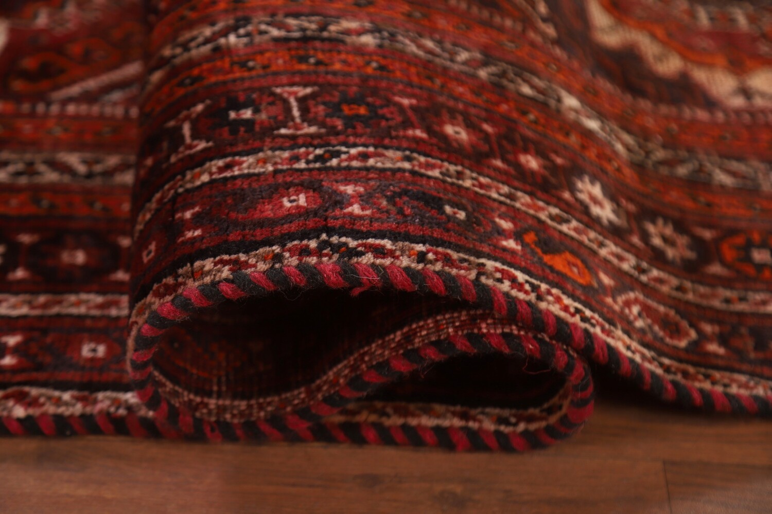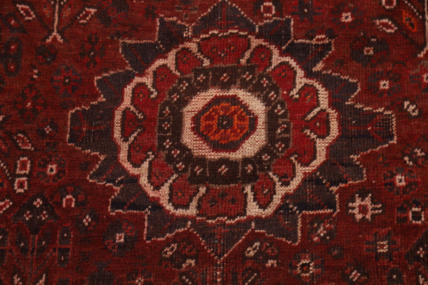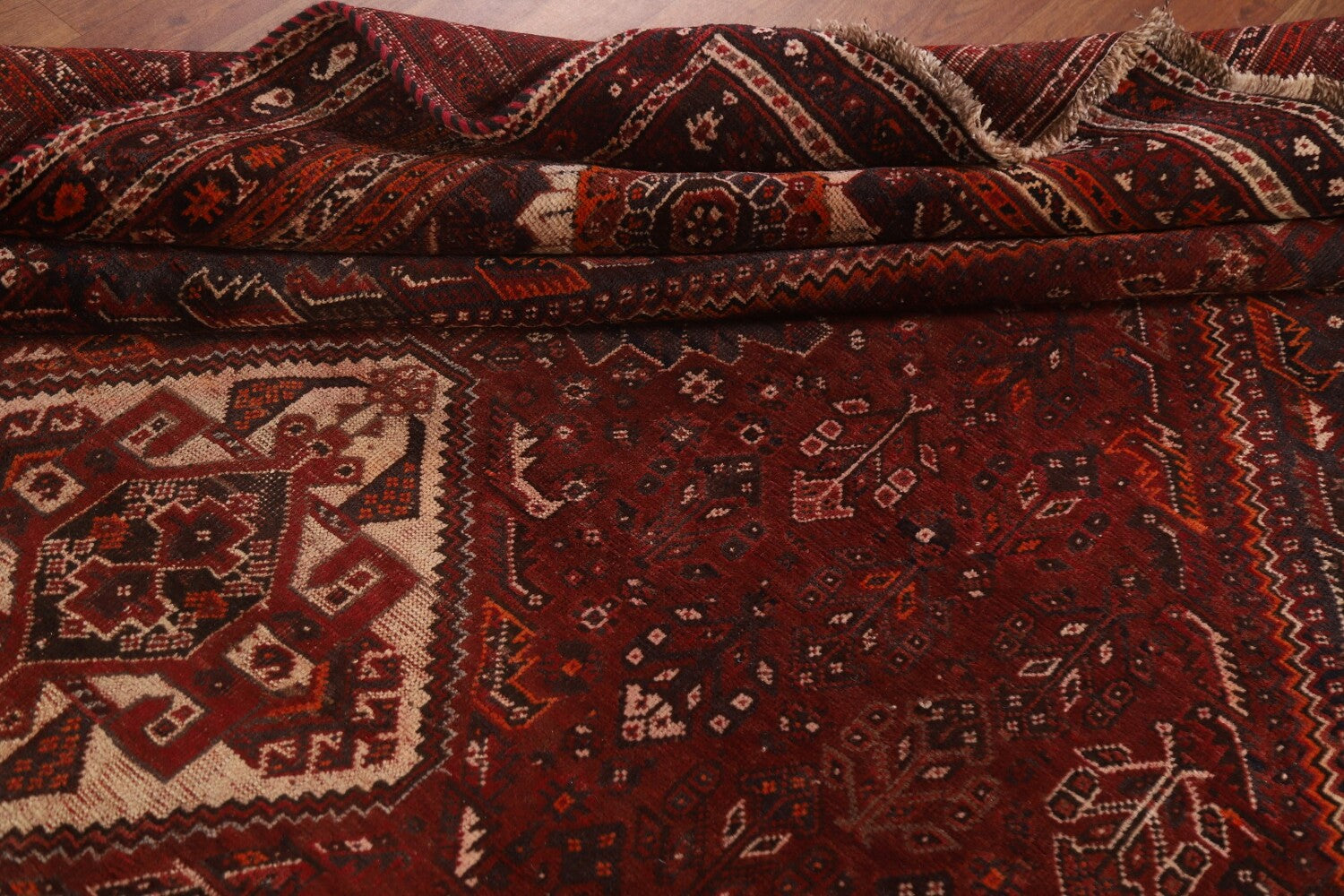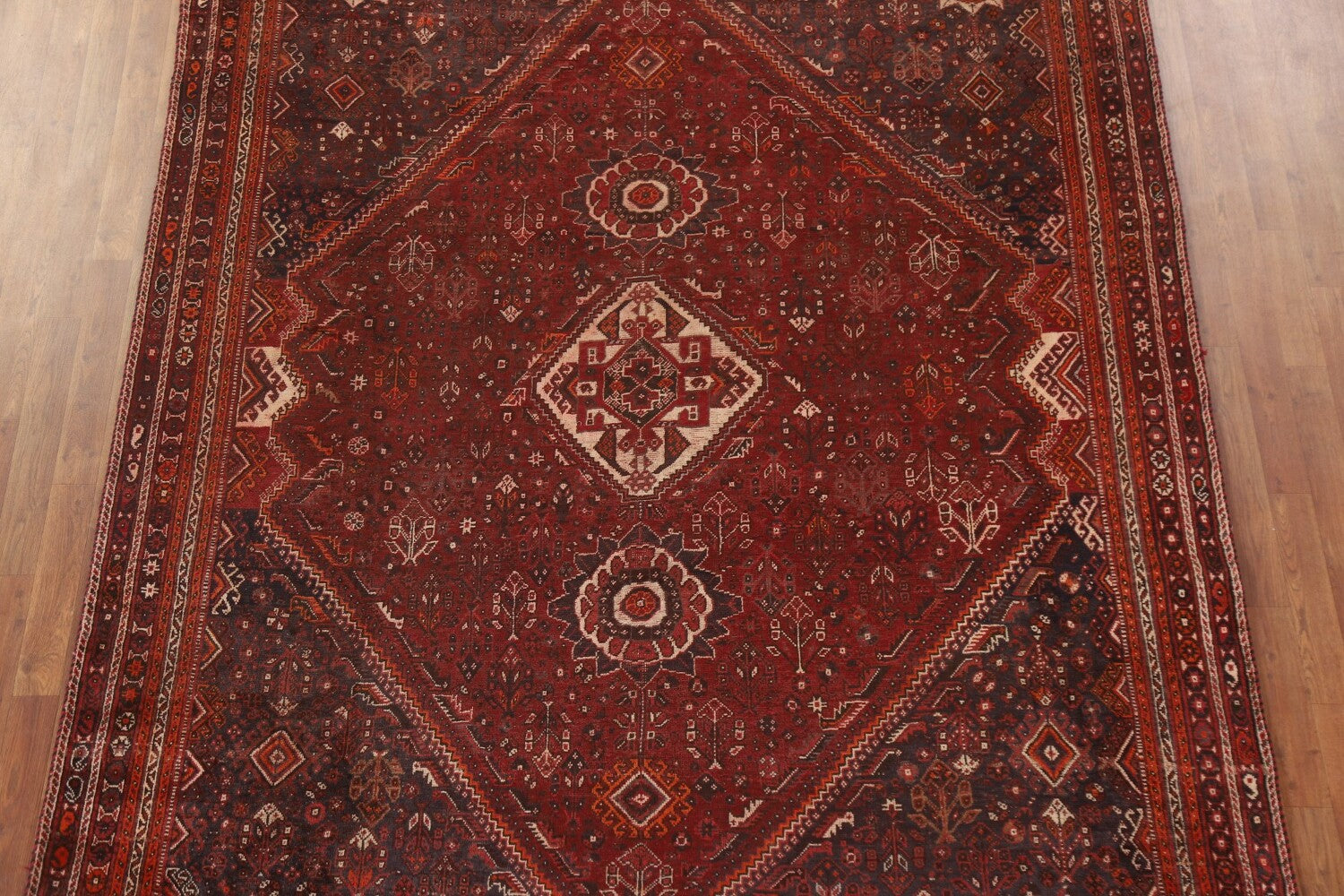 A Beautiful Genuine Persia ( Persia ) Qashqai rug is Hand Knotted by skillful weavers in Persia ( Persia ) with 100% Wool Material. This rug is in Very Good (Low Pile) condition. dimensions are 10' 8'' X 7' 3'' in foot and 325 X 221 in centimeter. the primary color is Red.