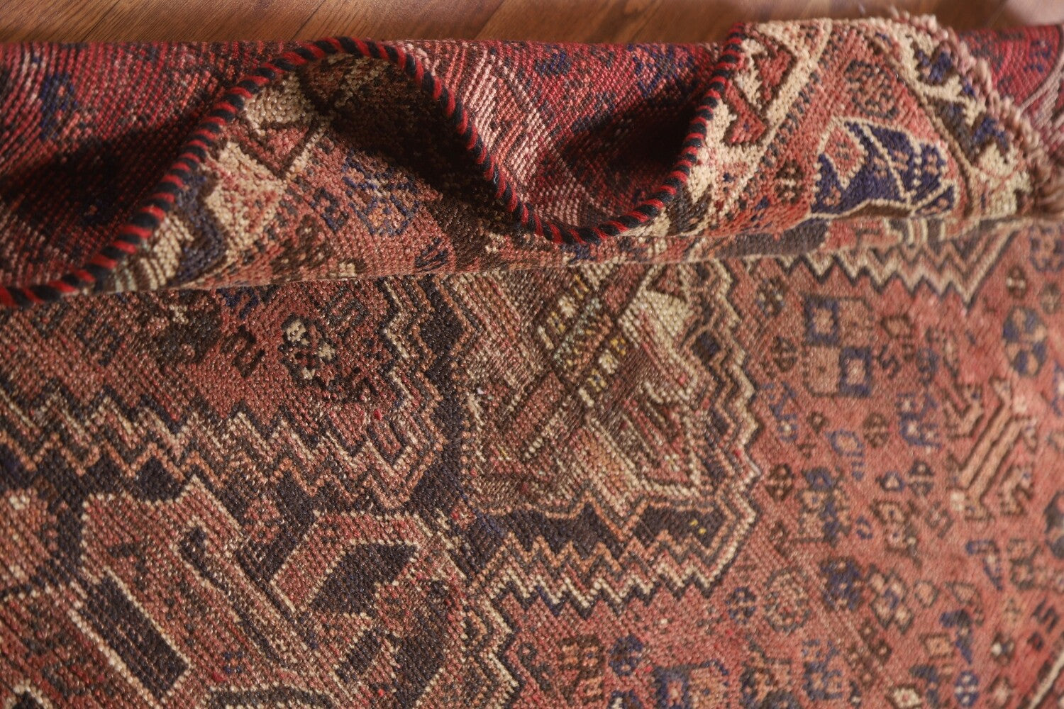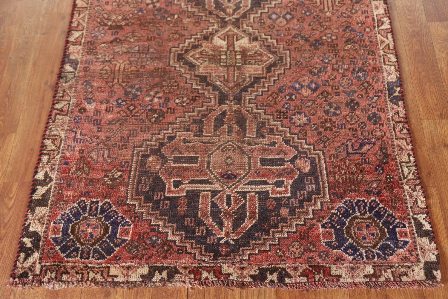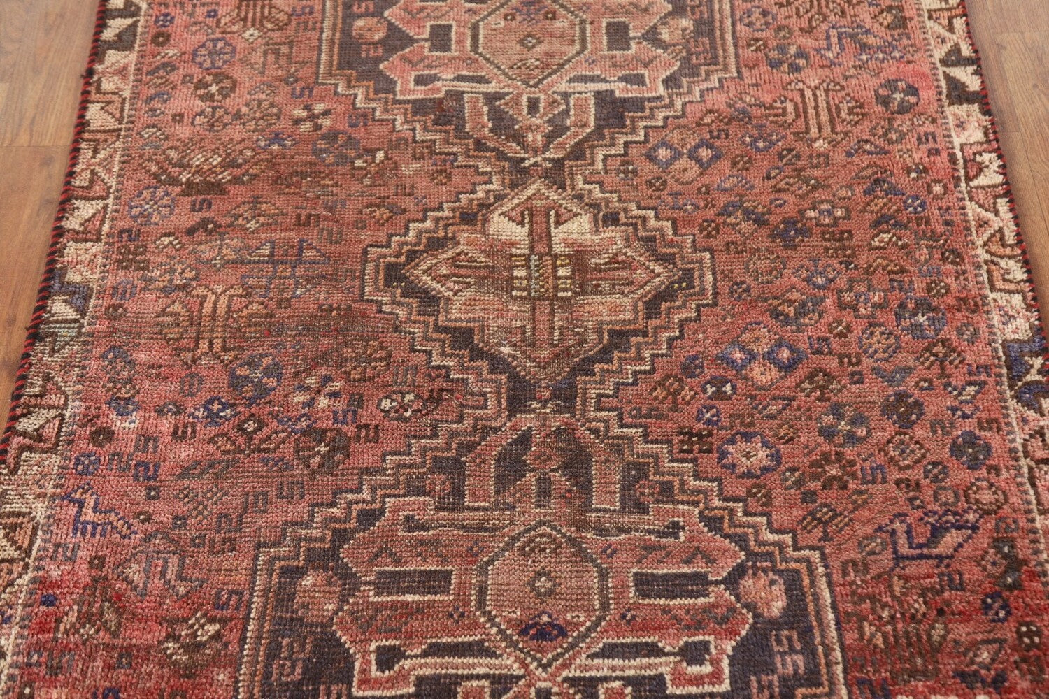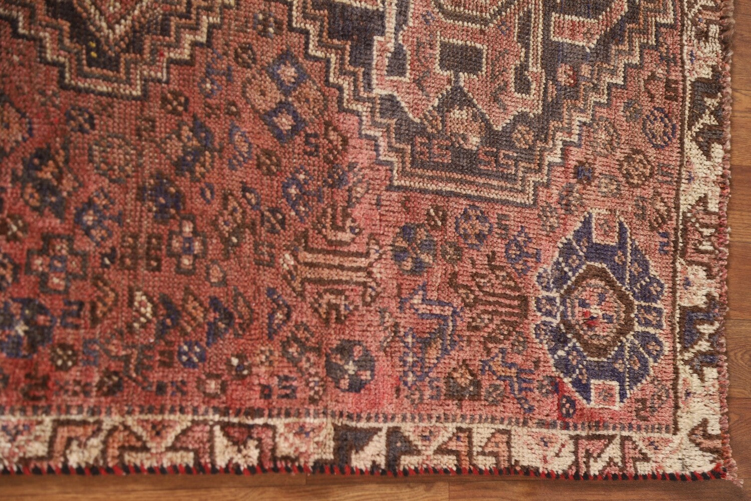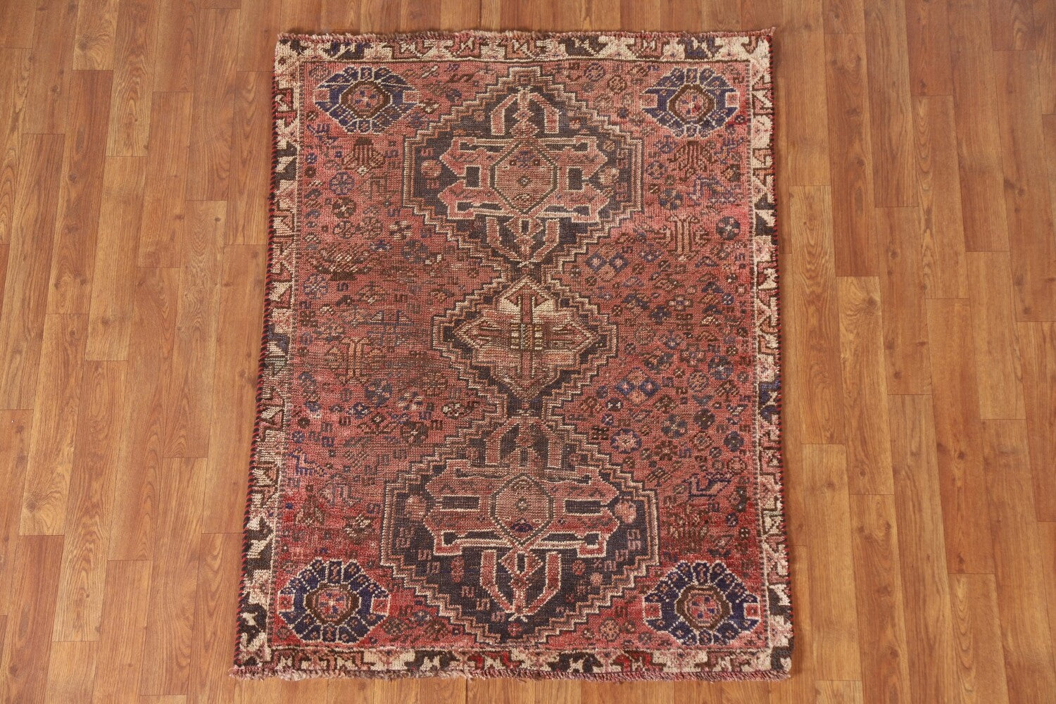 A Beautiful Genuine Persia ( Persia ) Qashqai rug is Hand Knotted by skillful weavers in Persia ( Persia ) with 100% Wool Material. This rug is in Very Good(Evenly Low Pile) condition. dimensions are 4' 5'' X 3' 4'' in foot and 135 X 102 in centimeter. the primary color is Pink.