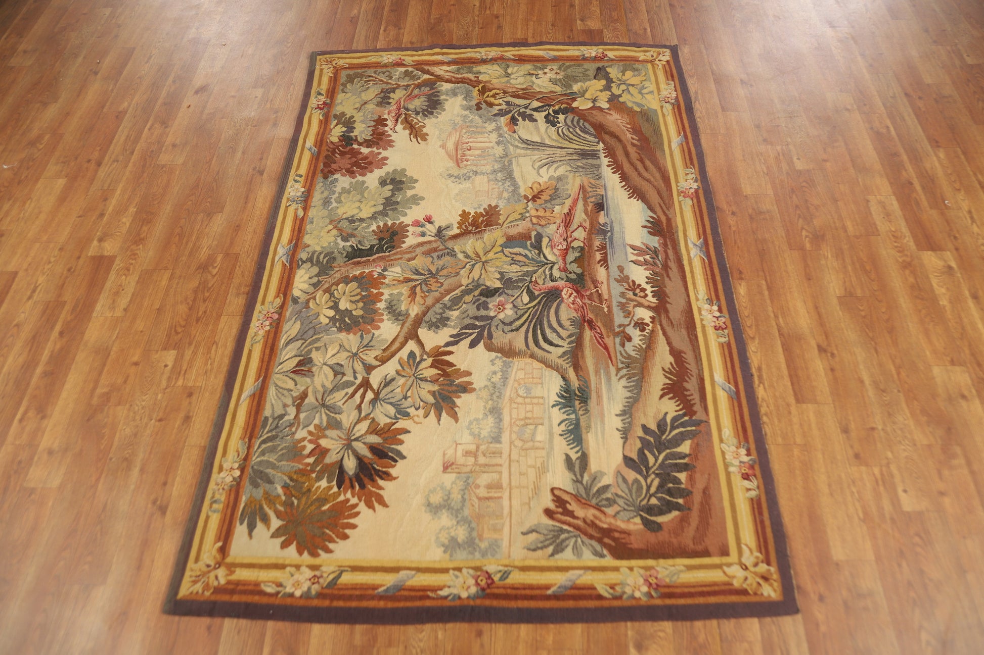 A Beautiful Genuine France Tapestries rug is Hand Woven by skillful weavers in France with 100% Wool Material. This rug is in Very Good condition. dimensions are 5' 10'' X 3' 11'' in foot and 178 X 119 in centimeter. the primary color is Beige & Ivories.