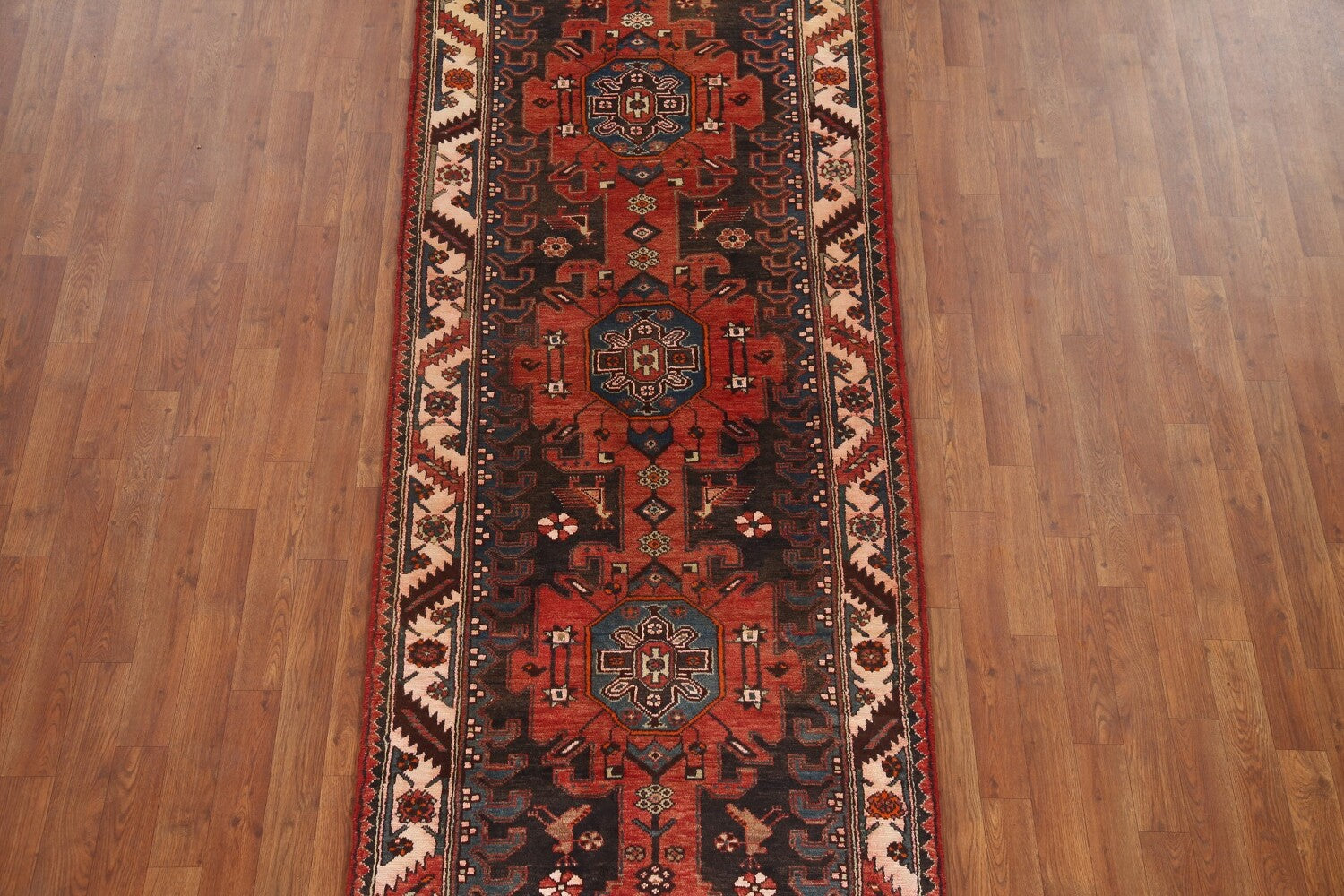 A Beautiful Genuine Persia ( Persia ) Ardebil rug is Hand Knotted by skillful weavers in Persia ( Persia ) with 100% Wool Material. This rug is in Very Good condition. dimensions are 9' 11'' X 3' 2'' in foot and 302 X 97 in centimeter. the primary color is Red.