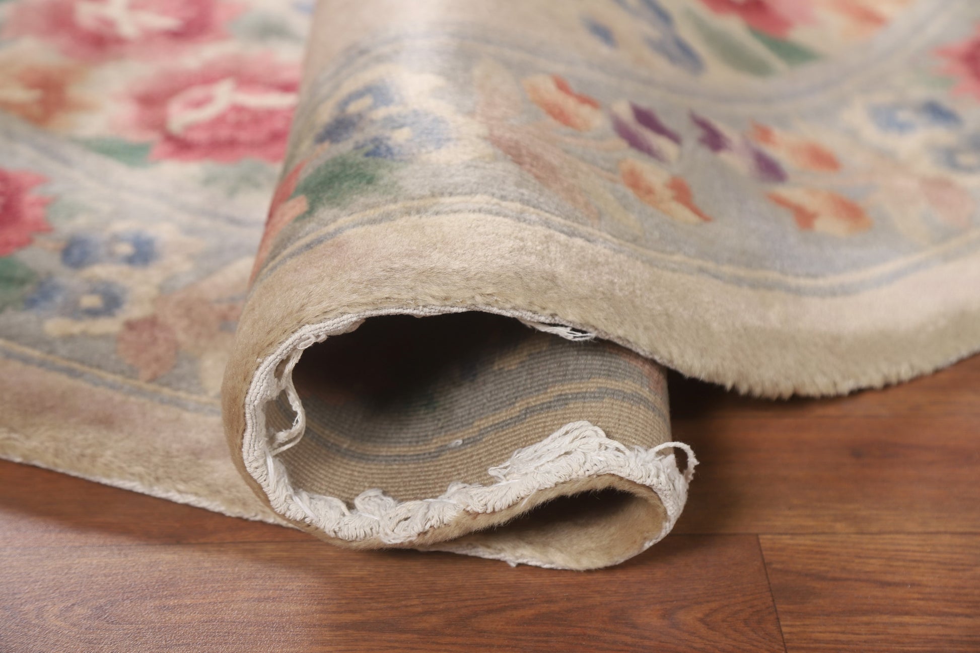 A Beautiful Genuine China Art Deco rug is Hand Knotted by skillful weavers in China with 100% Wool Material. This rug is in Very Good condition. dimensions are 6' 1'' X 6' 1'' in foot and 185 X 185 in centimeter. the primary color is Beige & Ivories.