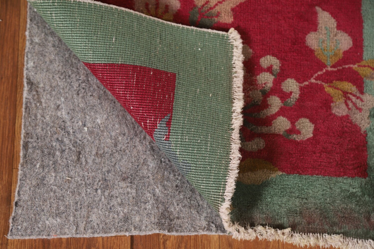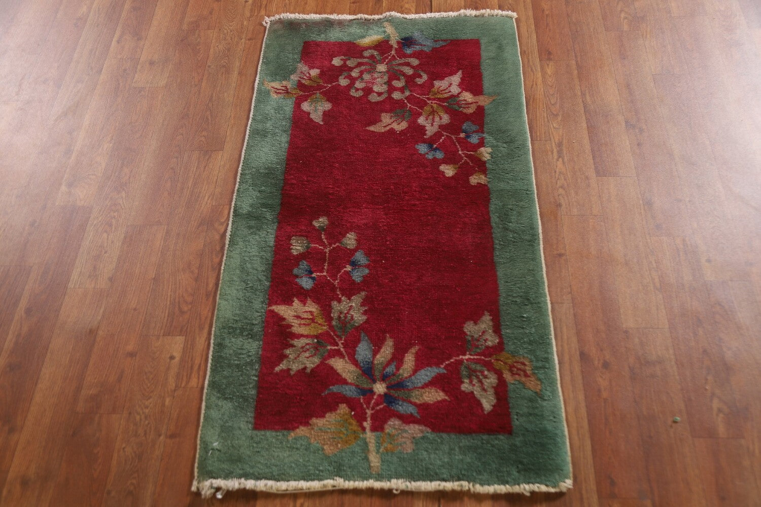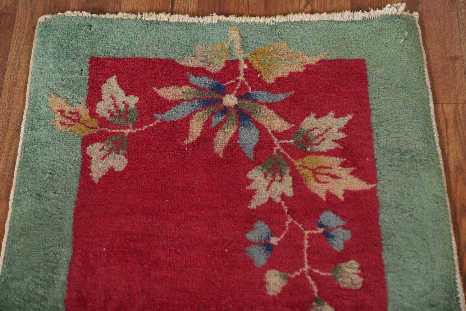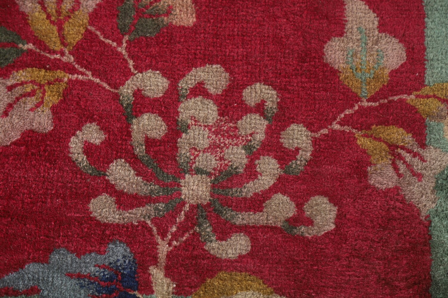 A Beautiful Genuine China Art Deco Nichols rug is Hand Knotted by skillful weavers in China with 100% Wool Material. This rug is in condition. dimensions are 3' 9'' X 2' 1'' in foot and 114 X 64 in centimeter. the primary color is Red.