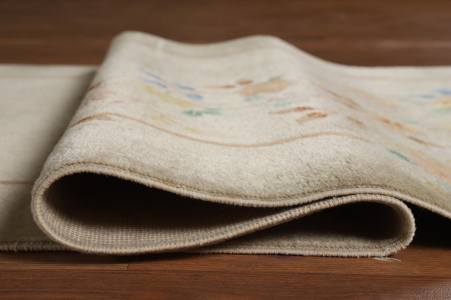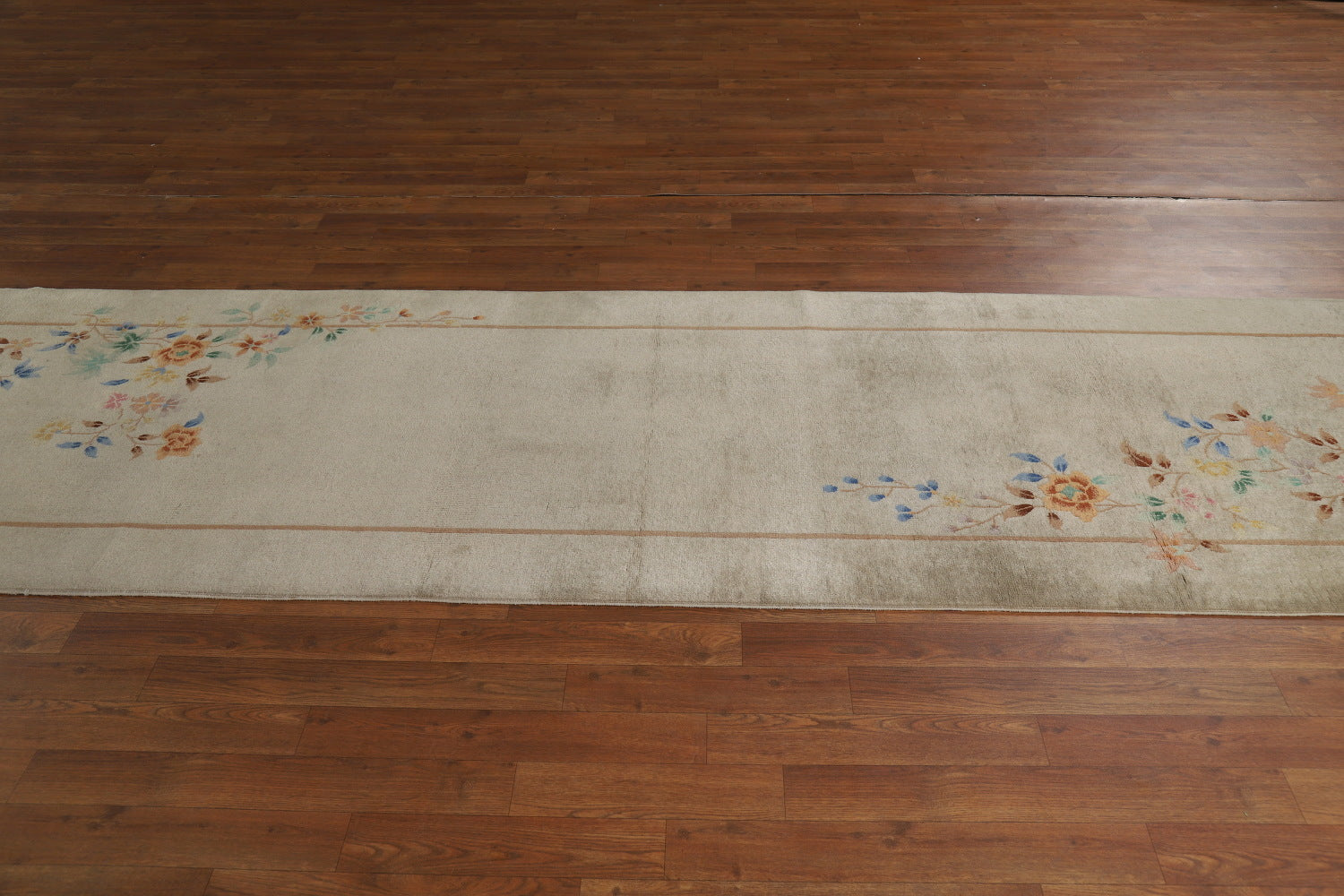 A Beautiful Genuine China Art Deco rug is Hand Knotted by skillful weavers in China with 100% Wool Material. This rug is in Very Good condition. dimensions are 11' 8'' X 3' 0'' in foot and 356 X 91 in centimeter. the primary color is Beige & Ivories.