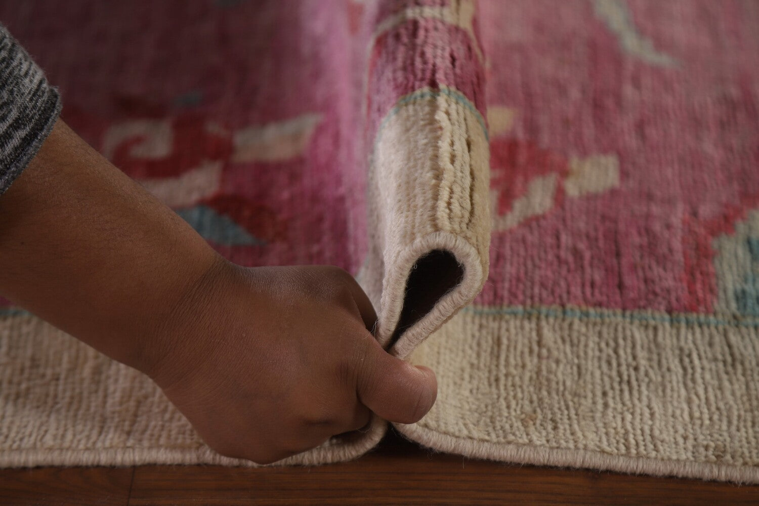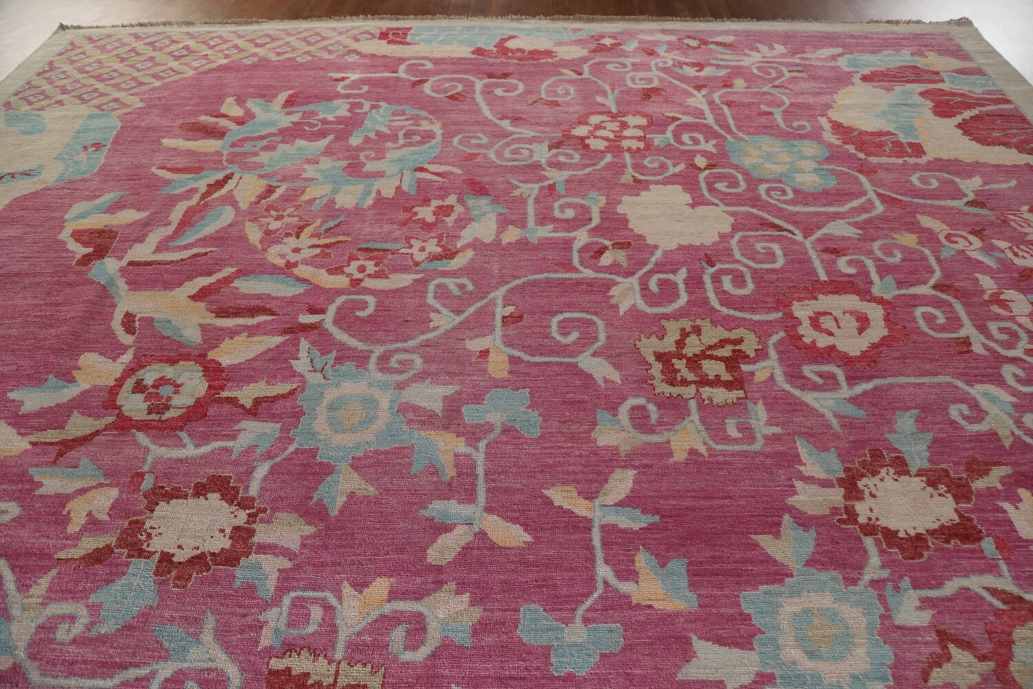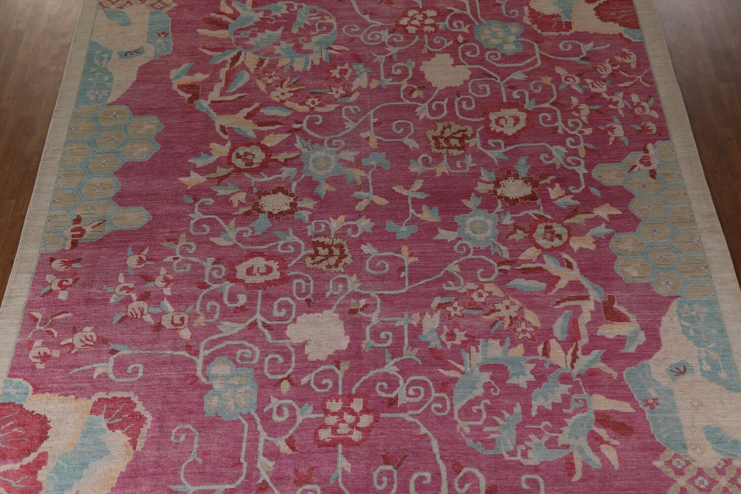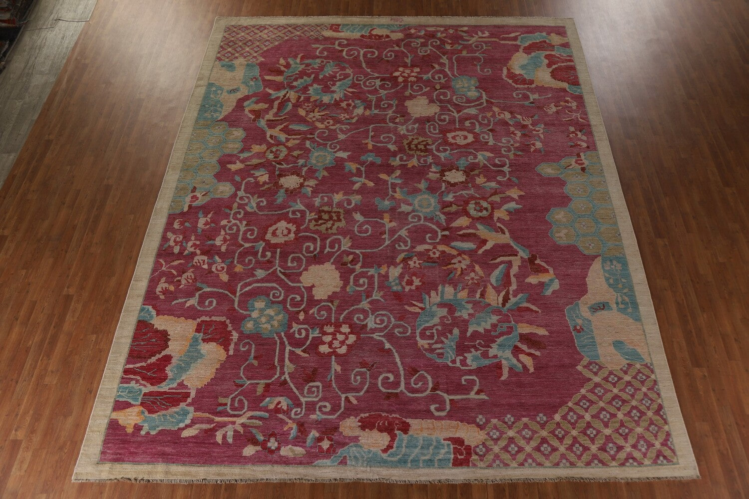 A Beautiful Genuine China Art Deco rug is Hand Knotted by skillful weavers in China with 100% Wool Material. This rug is in New, First Quality condition. dimensions are 14' 3'' X 11' 9'' in foot and 434 X 358 in centimeter. the primary color is Pink.