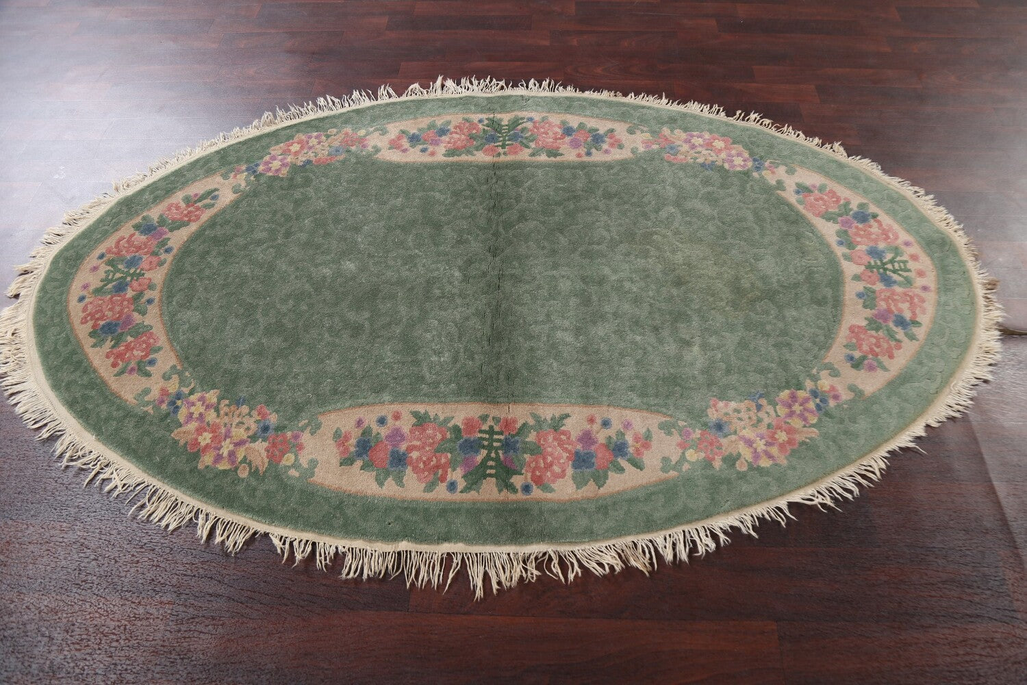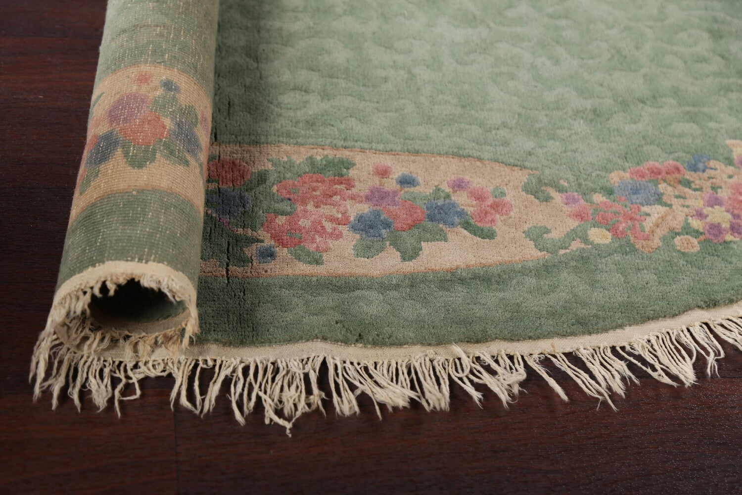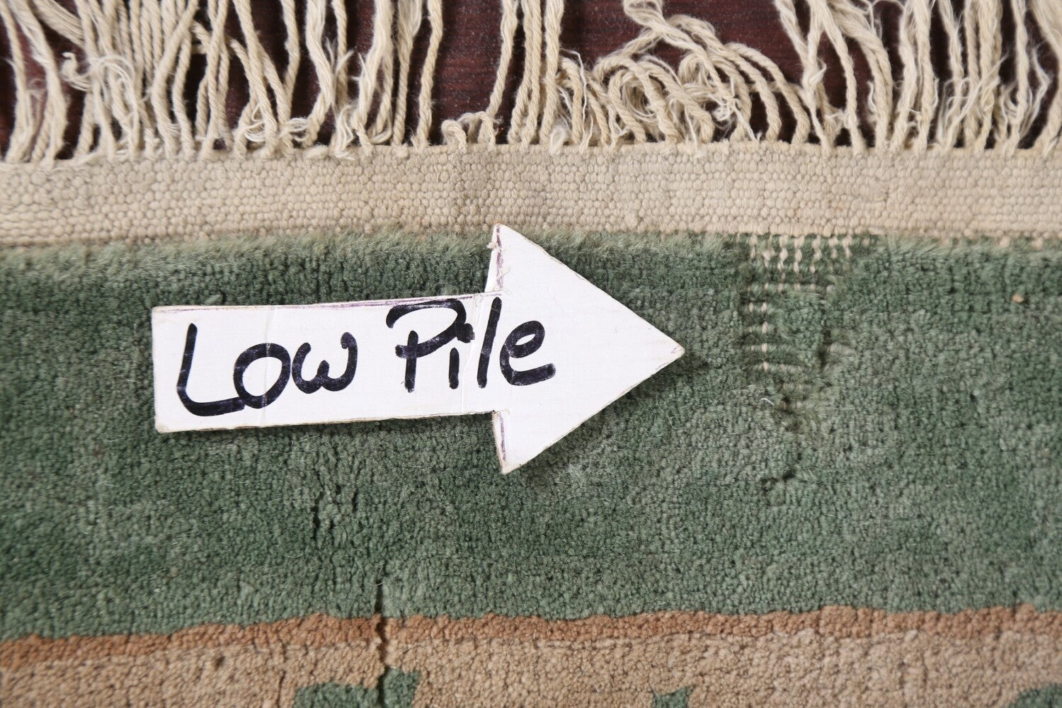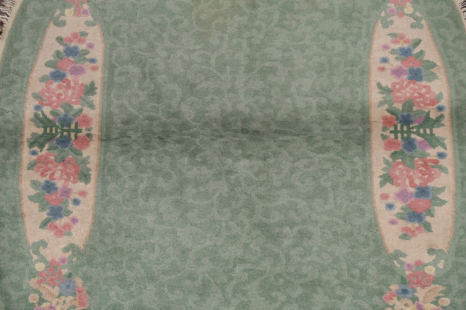 A Beautiful Genuine China Art Deco Nichols rug is Hand Knotted by skillful weavers in China with 100% Wool Material. This rug is in very good (small low pile) condition. dimensions are 6' 11'' X 4' 1'' in foot and 211 X 124 in centimeter. the primary color is Green.
