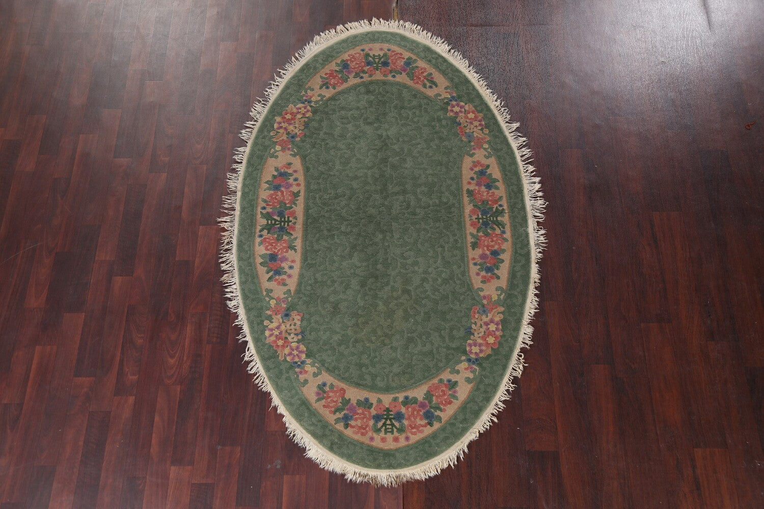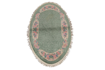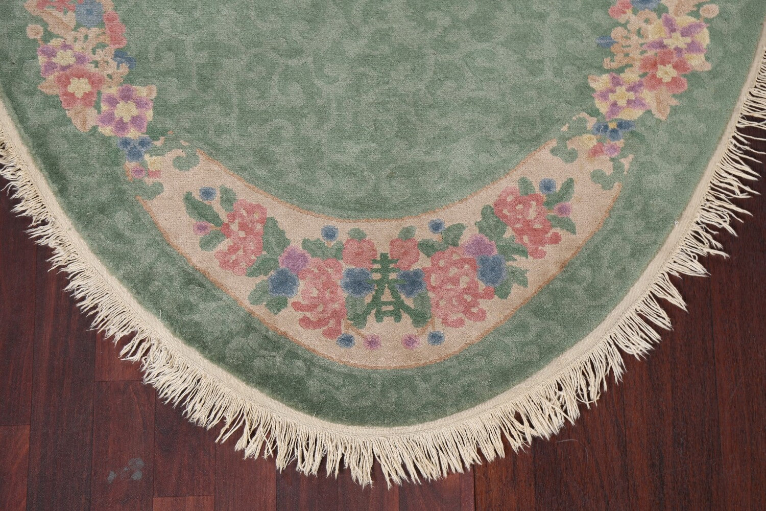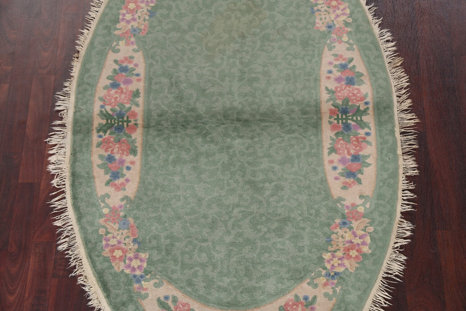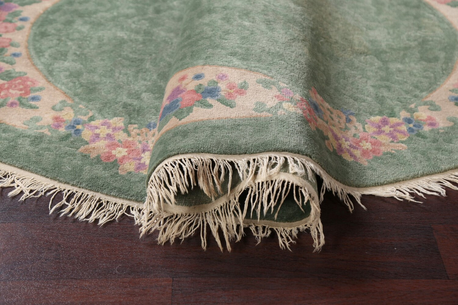 A Beautiful Genuine China Art Deco Nichols rug is Hand Knotted by skillful weavers in China with 100% Wool Material. This rug is in very good (small low pile) condition. dimensions are 6' 11'' X 4' 1'' in foot and 211 X 124 in centimeter. the primary color is Green.