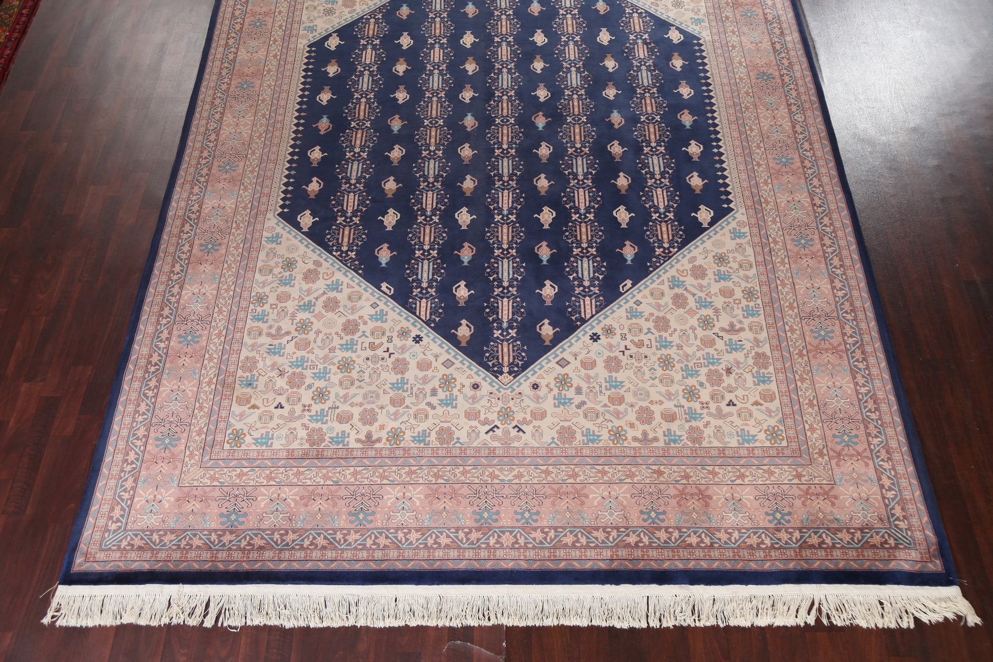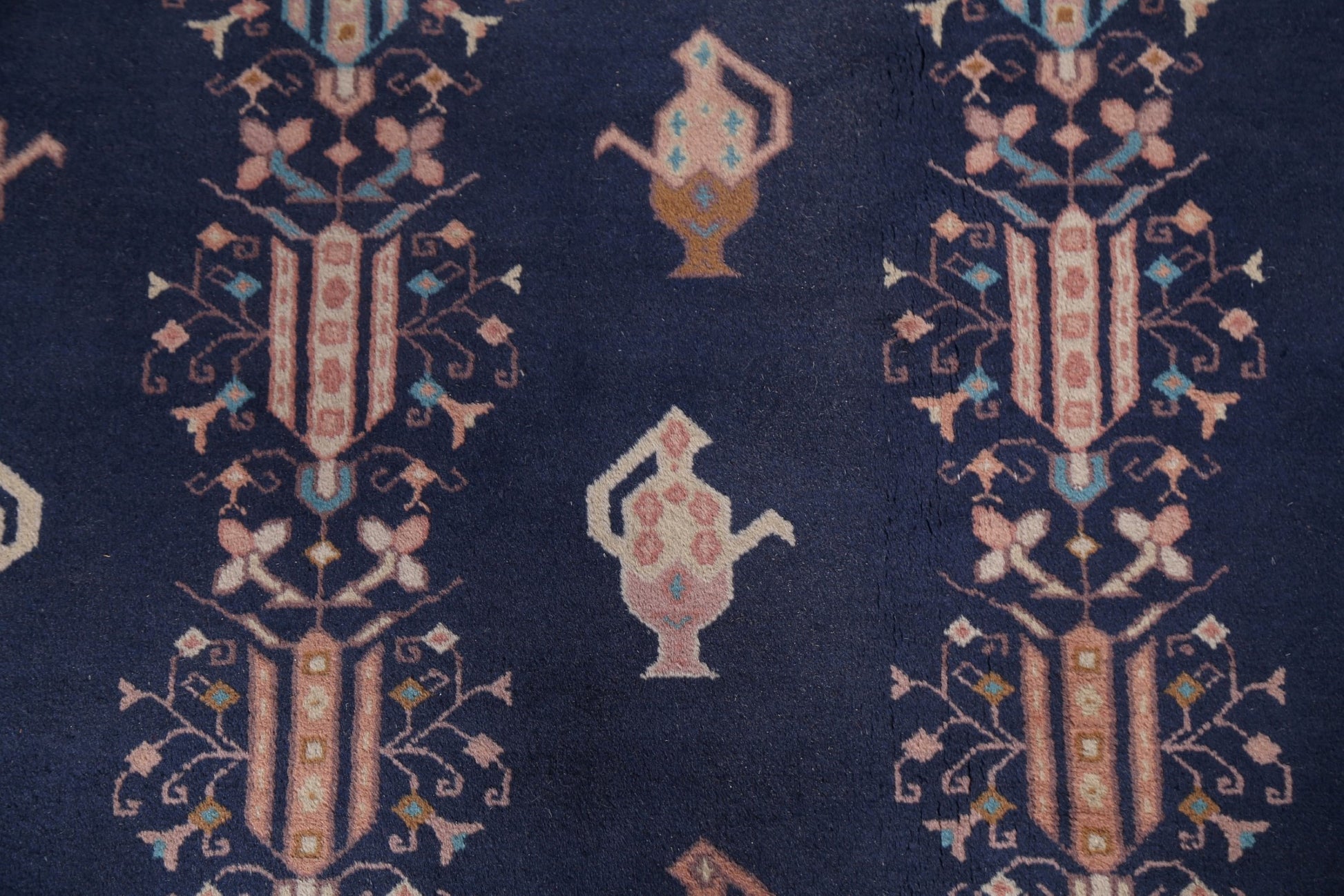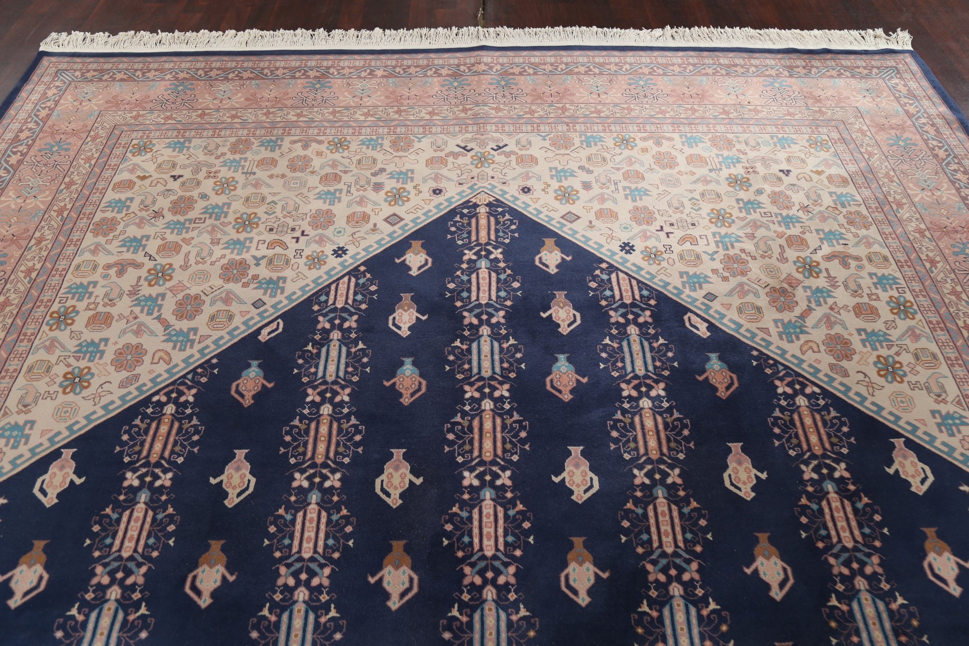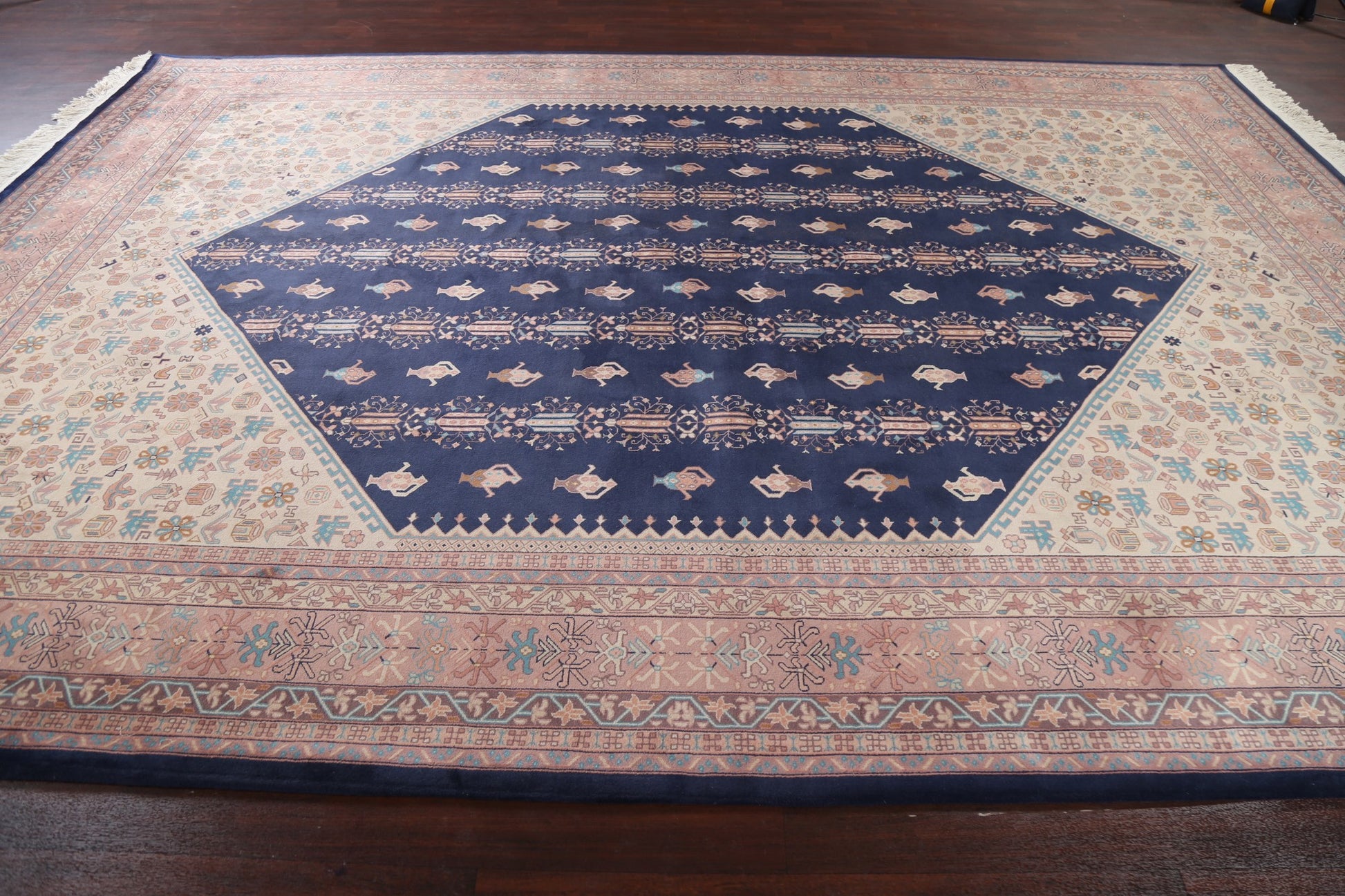 A Beautiful Genuine China Art Deco rug is Hand Knotted by skillful weavers in China with 100% Wool Material. This rug is in New, First Quality condition. dimensions are 14' 1'' X 9' 10'' in foot and 429 X 300 in centimeter. the primary color is Navy Blue & Blues.
