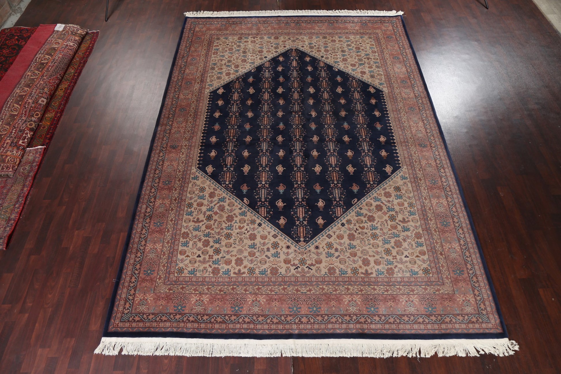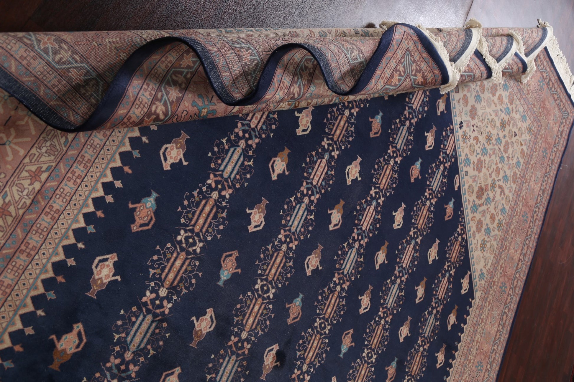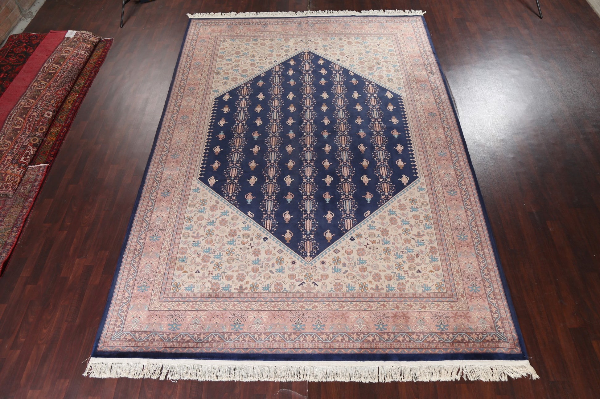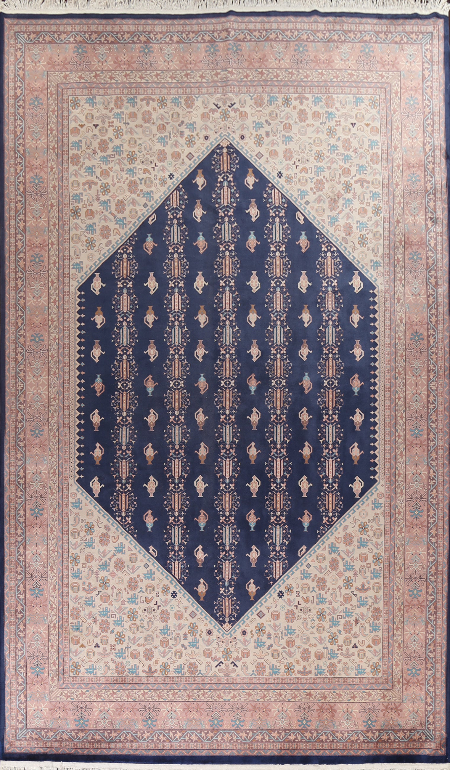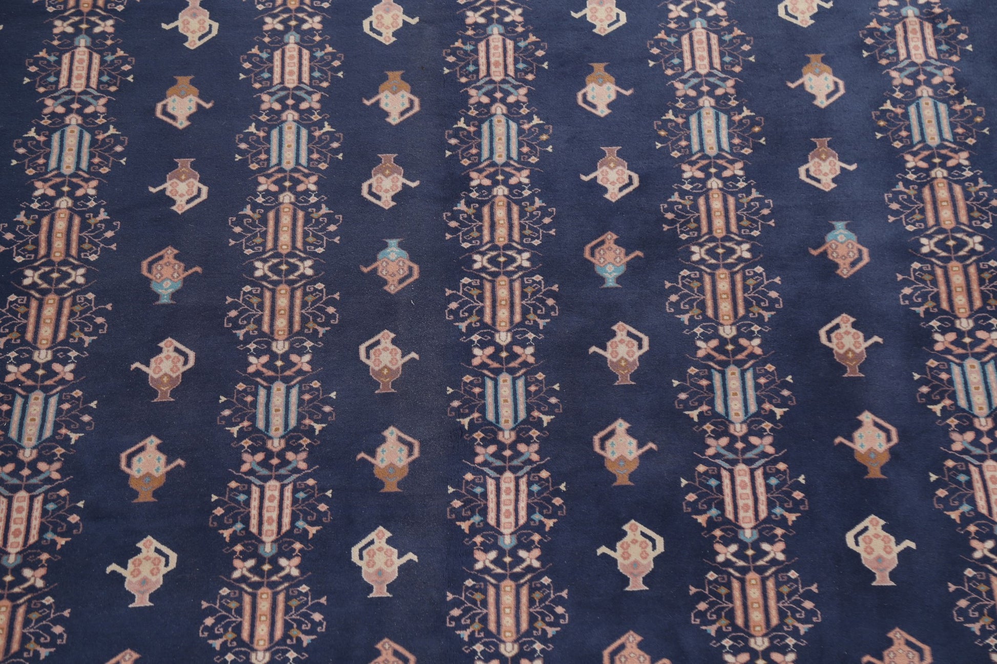A Beautiful Genuine China Art Deco rug is Hand Knotted by skillful weavers in China with 100% Wool Material. This rug is in New, First Quality condition. dimensions are 14' 1'' X 9' 10'' in foot and 429 X 300 in centimeter. the primary color is Navy Blue & Blues.