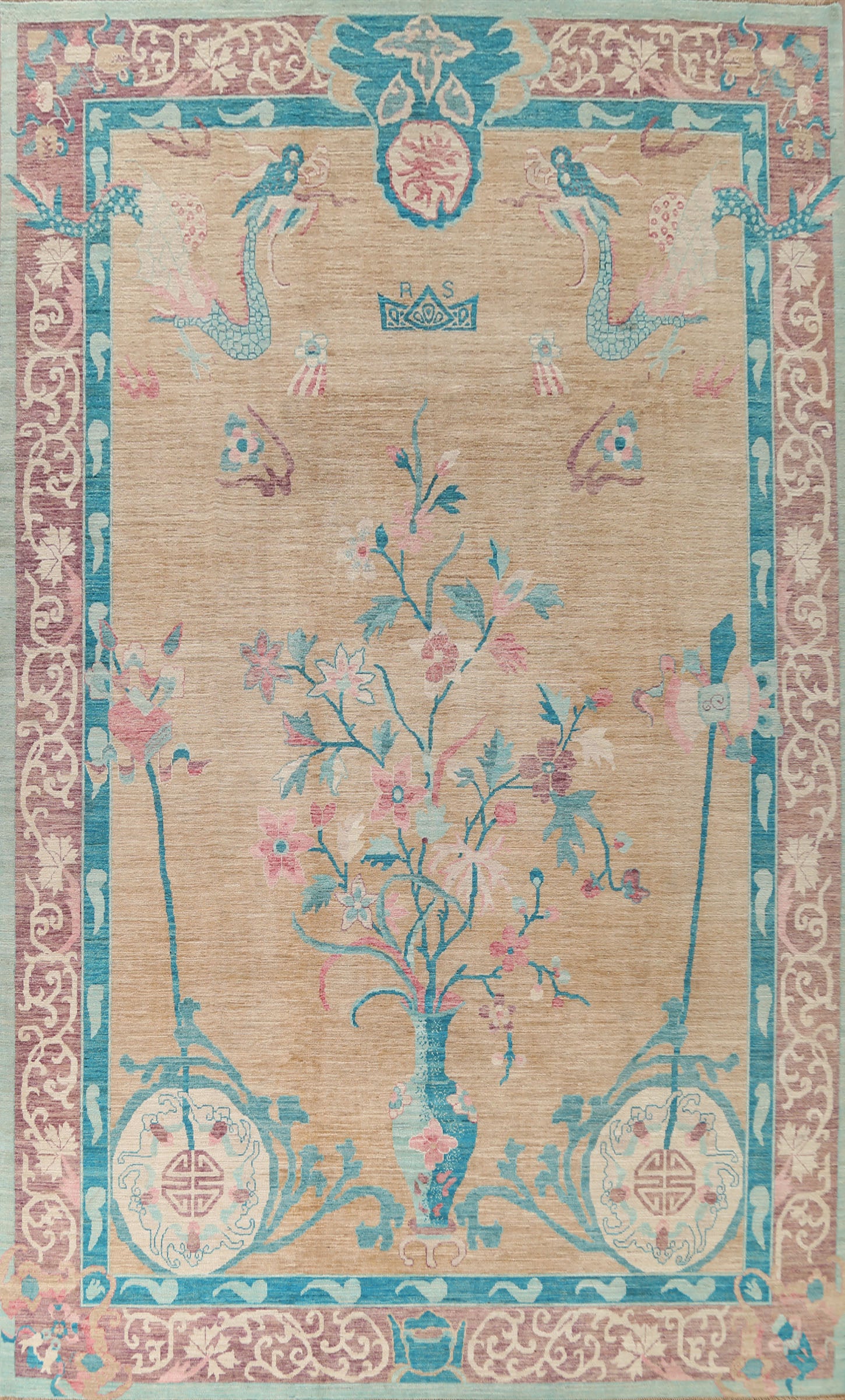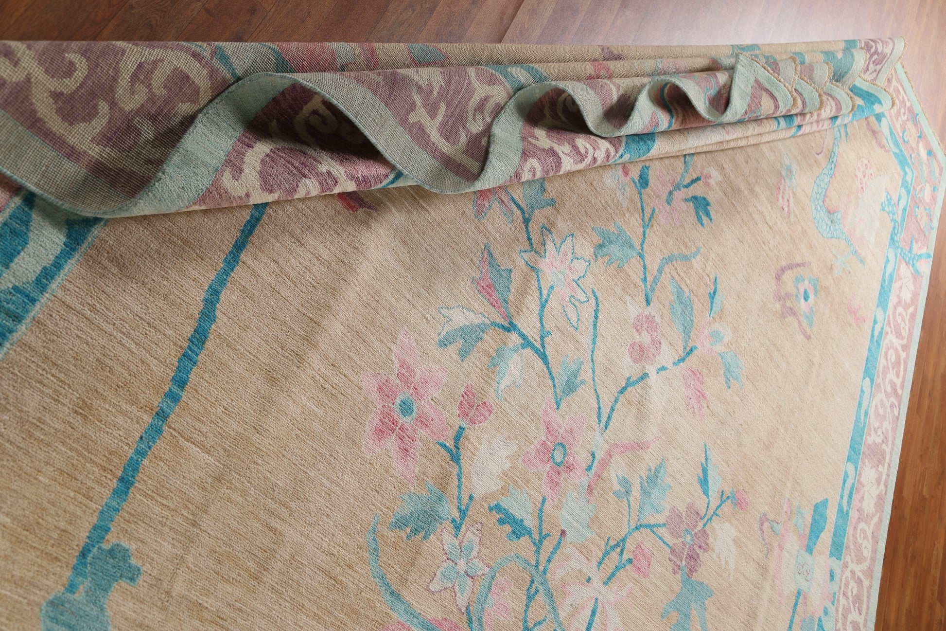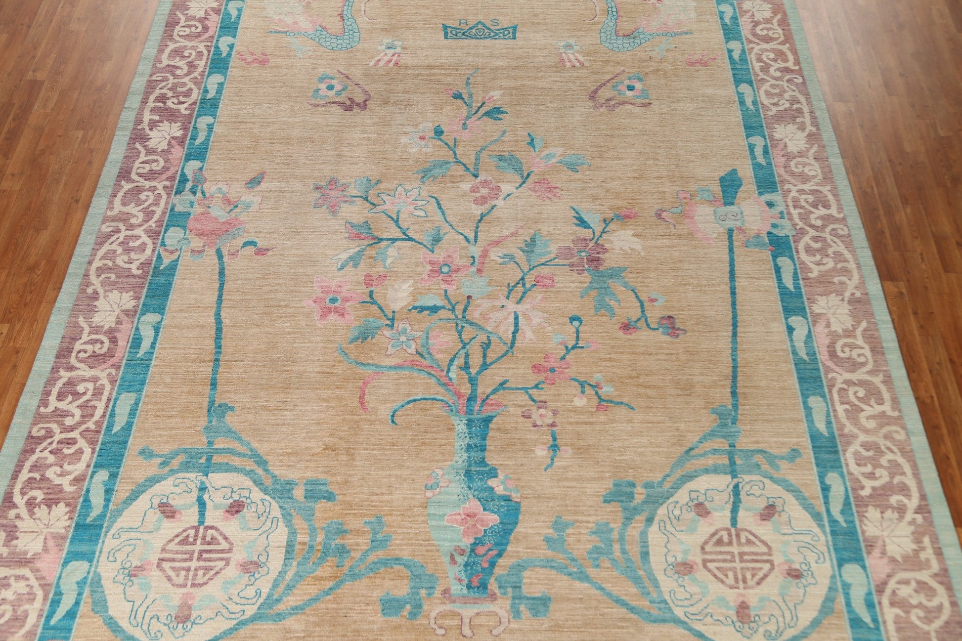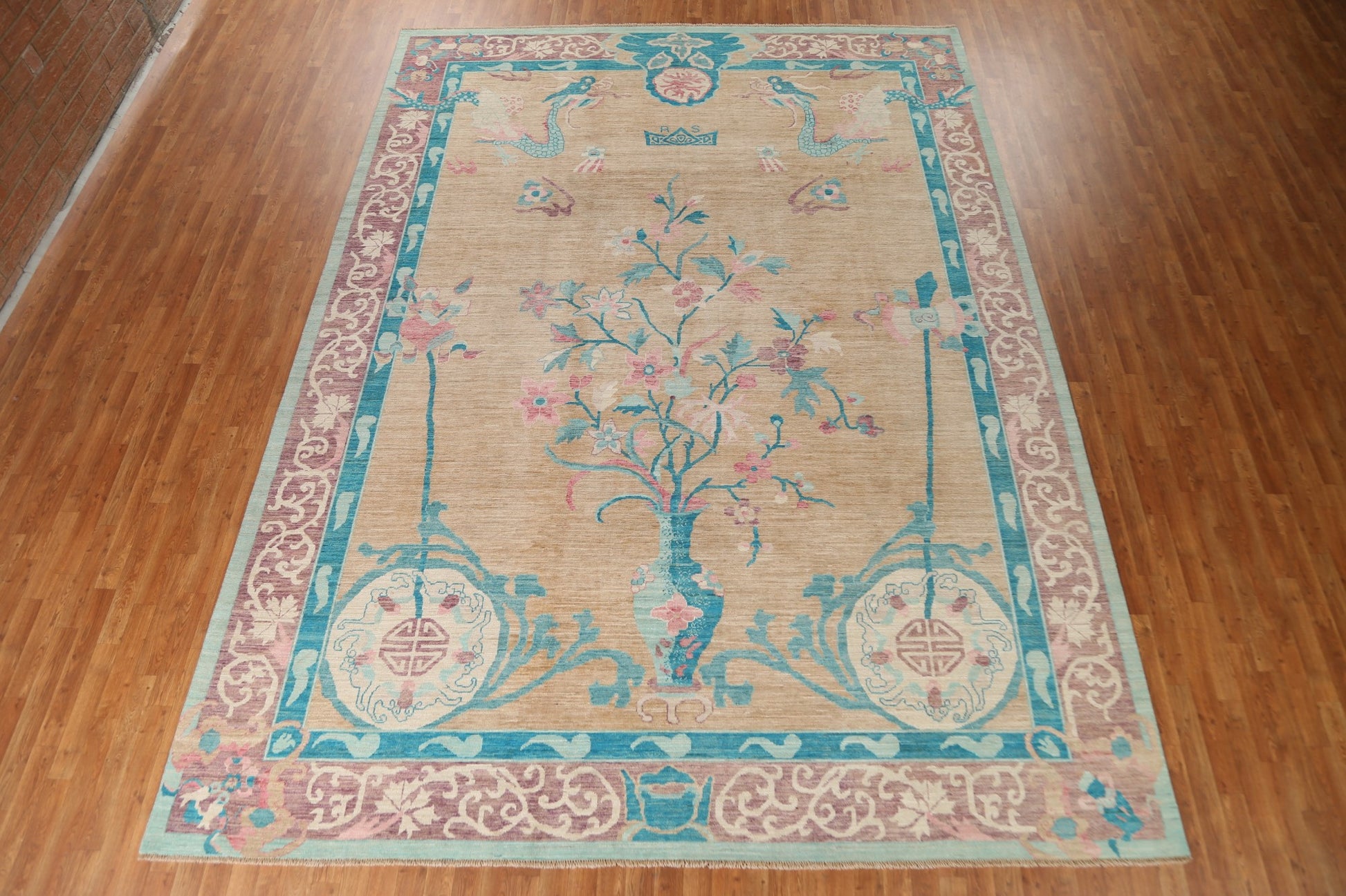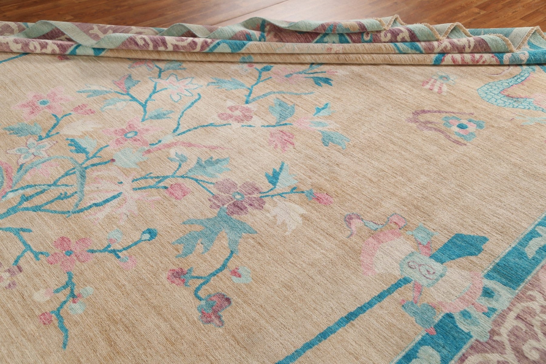 A Beautiful Genuine China Art Deco rug is Hand Knotted by skillful weavers in China with 100% Wool Material. This rug is in New, First Quality condition. dimensions are 13' 9'' X 10' 1'' in foot and 419 X 307 in centimeter. the primary color is Peach.