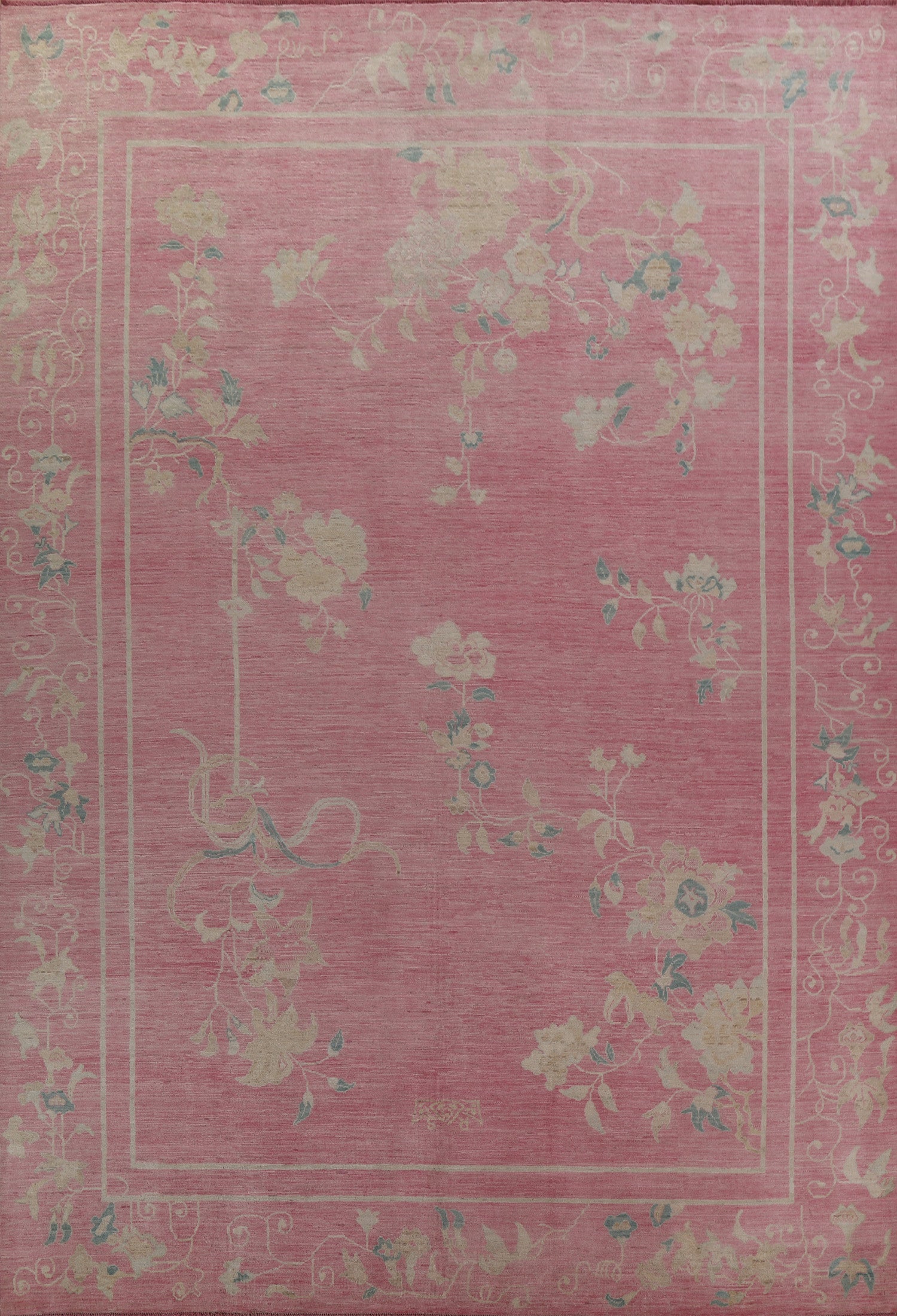 A Beautiful Genuine China Art Deco rug is Hand Knotted by skillful weavers in China with 100% Wool Material. This rug is in New, First Quality condition. dimensions are 13' 10'' X 10' 7'' in foot and 422 X 323 in centimeter. the primary color is Pink.