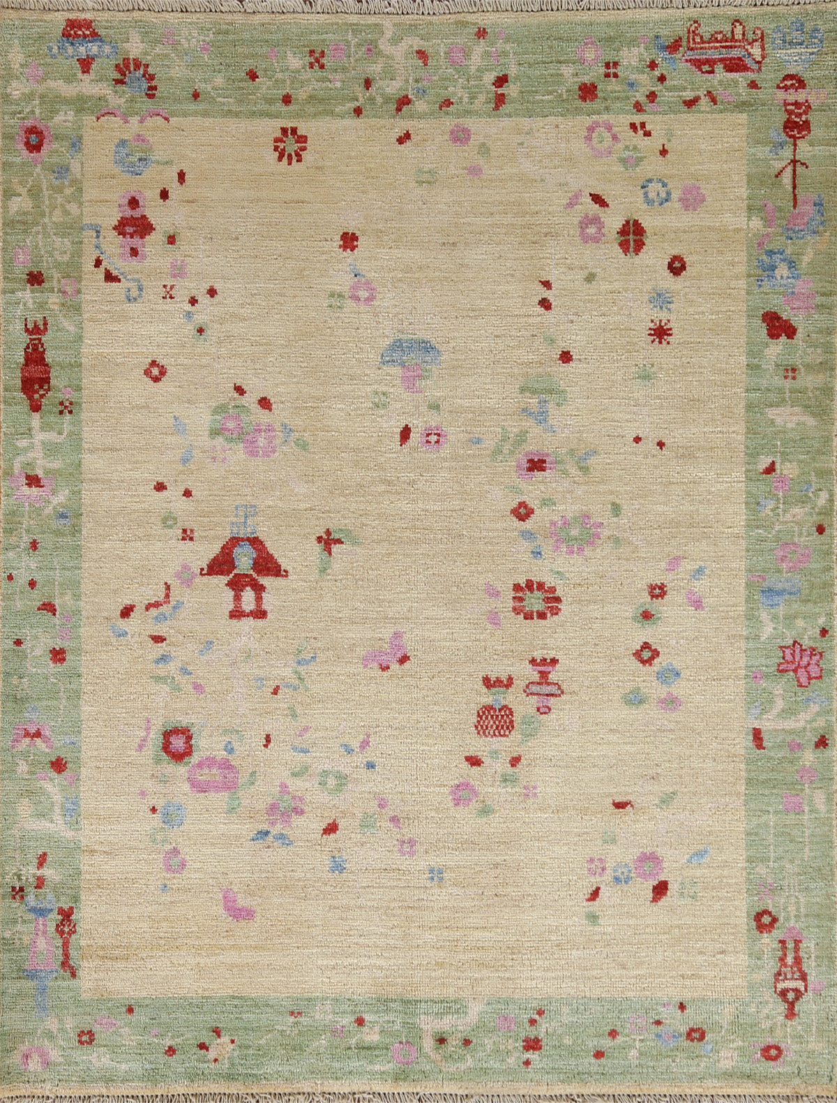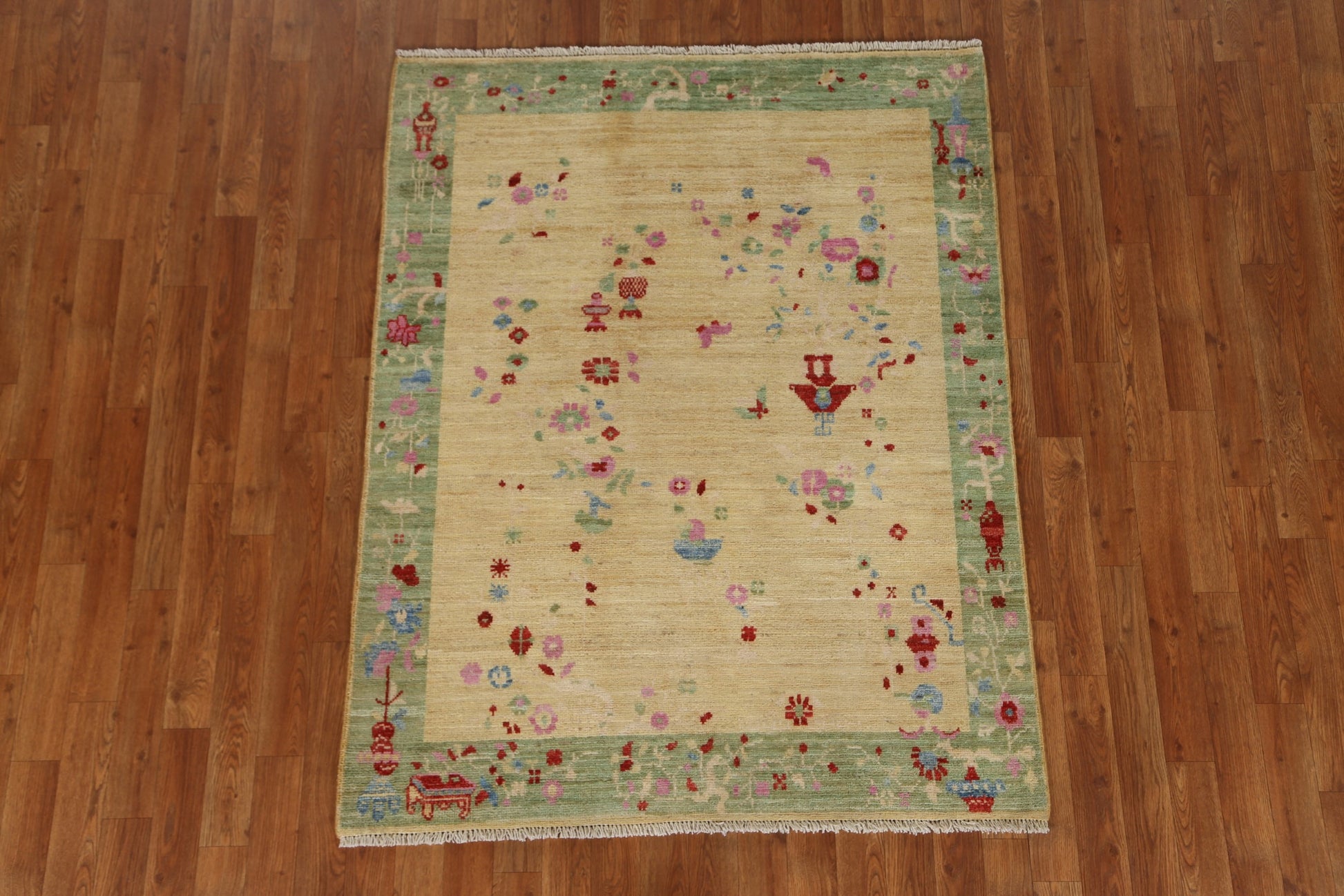 Vegetable Dye Art Deco Oriental Area Rug 4x5