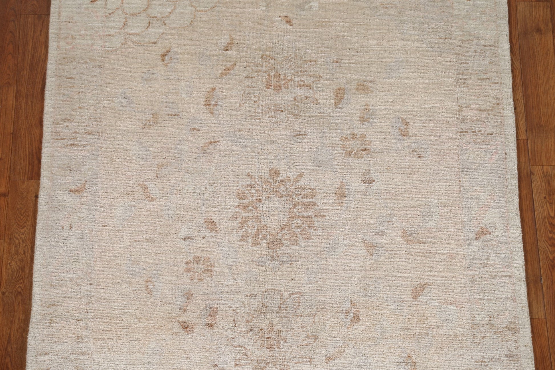 A Beautiful Genuine China Art Deco rug is Hand Knotted by skillful weavers in China with 100% Wool Material. This rug is in New, First Quality condition. dimensions are 4' 10'' X 3' 9'' in foot and 147 X 114 in centimeter. the primary color is Beige & Ivories.