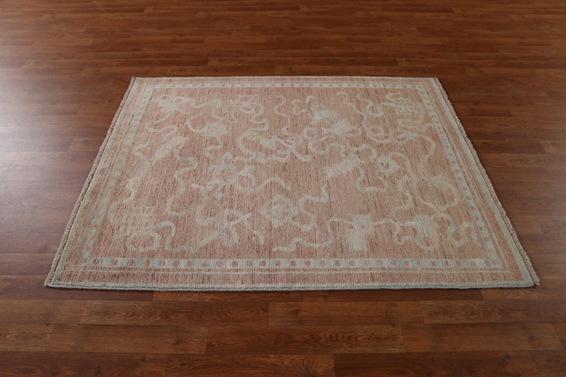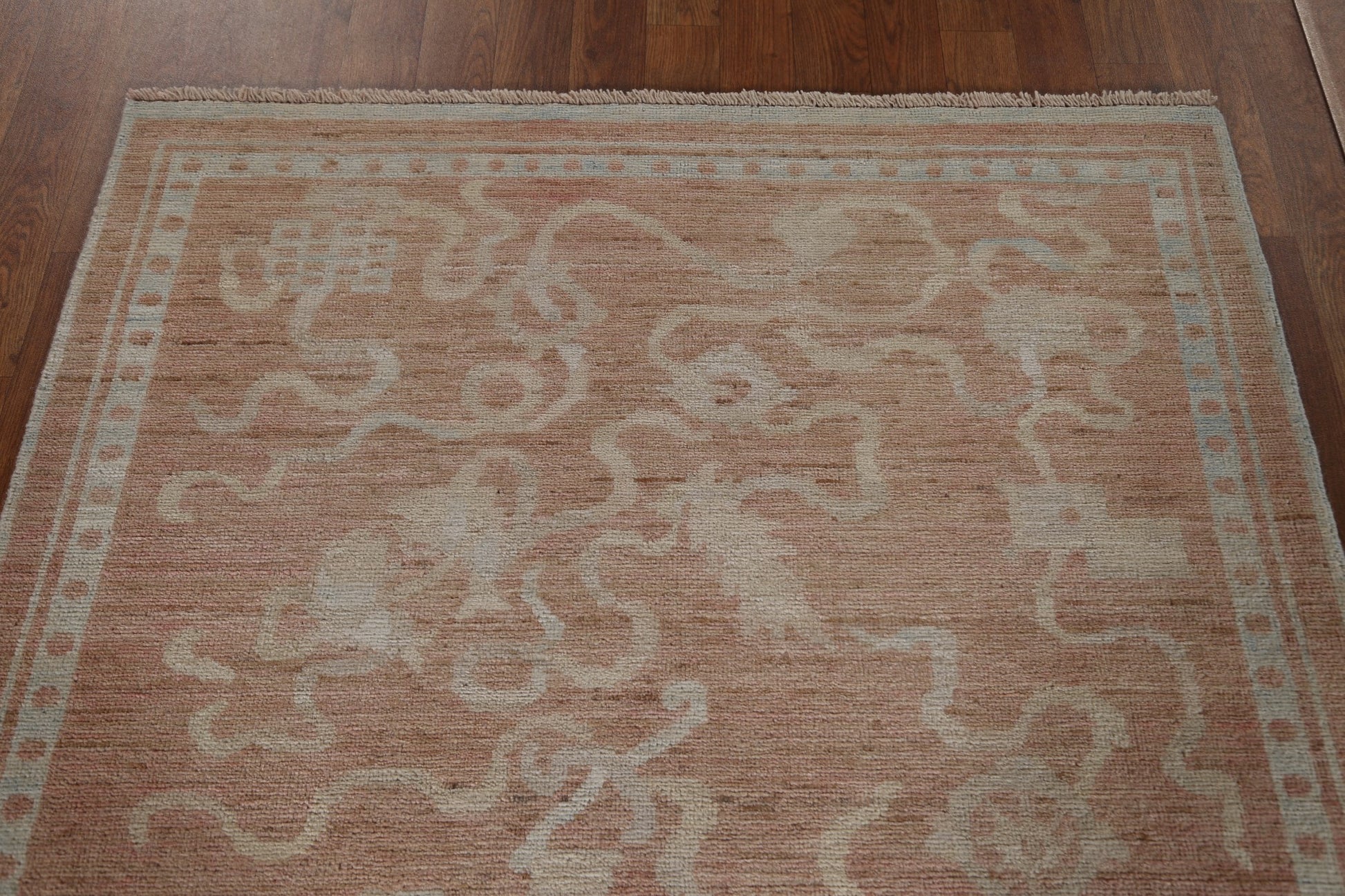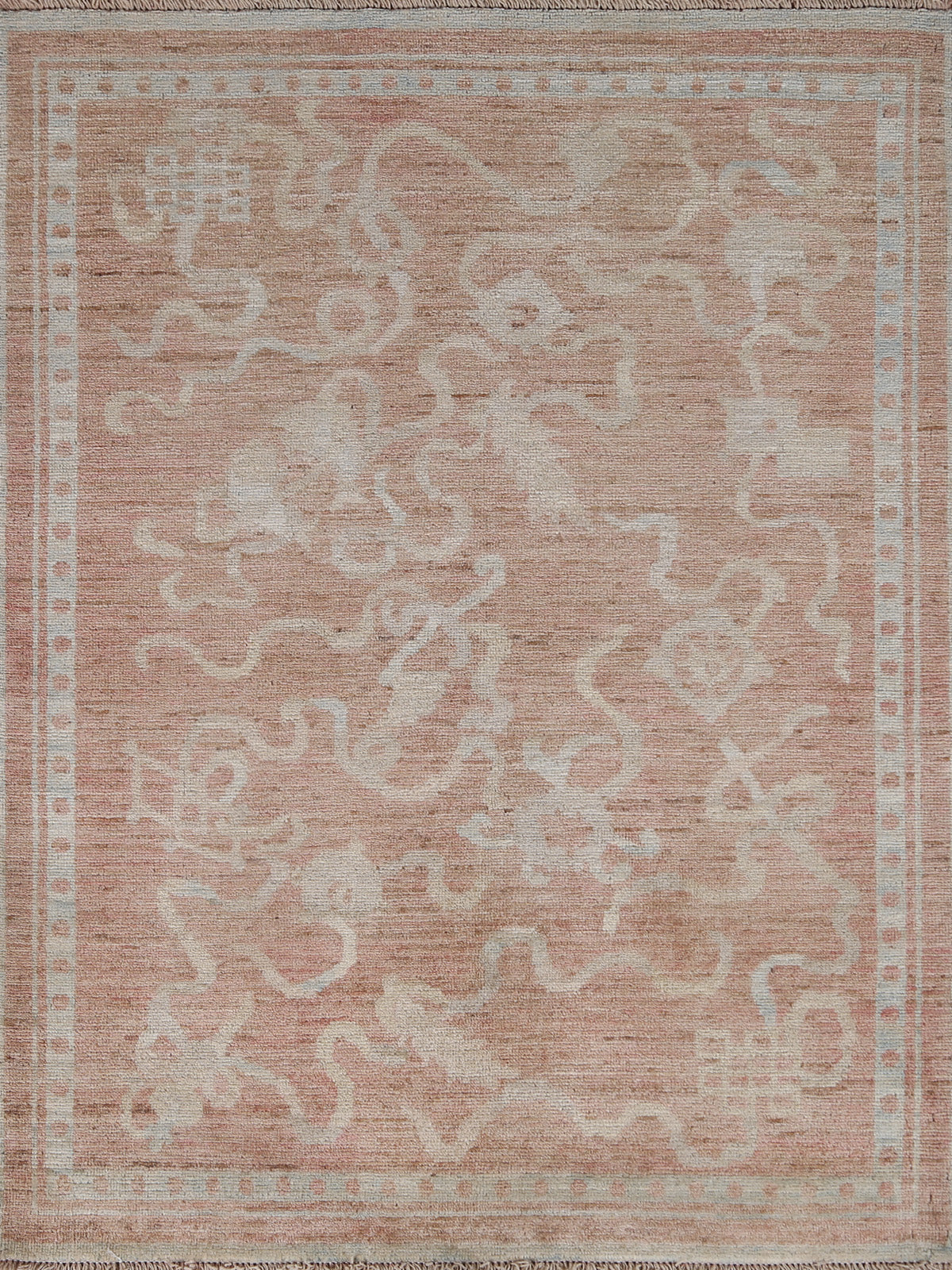 A Beautiful Genuine China Art Deco rug is Hand Knotted by skillful weavers in China with 100% Wool Material. This rug is in New, First Quality condition. dimensions are 4' 11'' X 3' 10'' in foot and 150 X 117 in centimeter. the primary color is Peach.