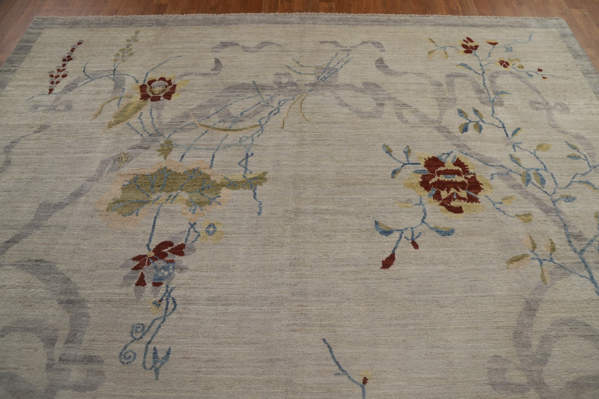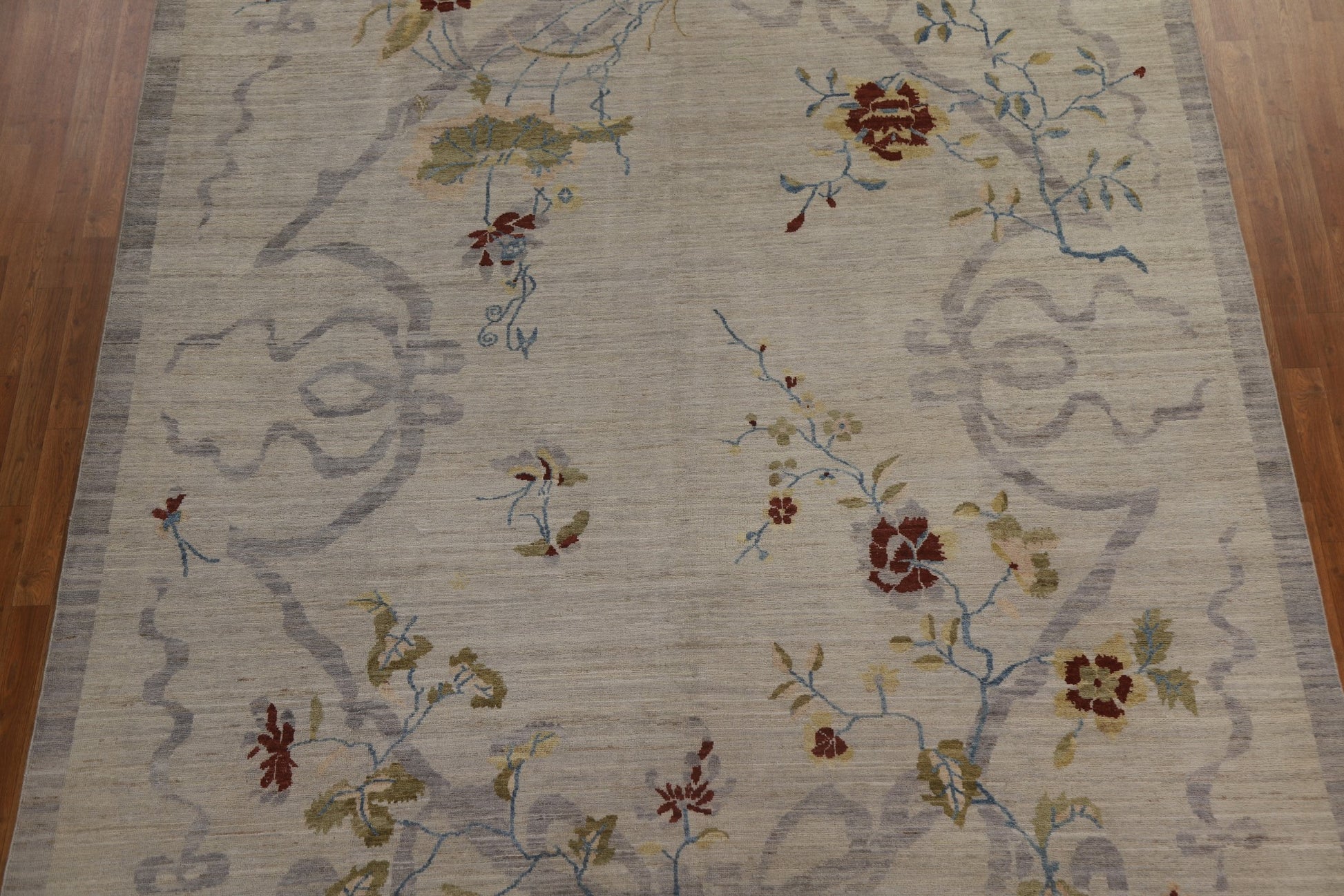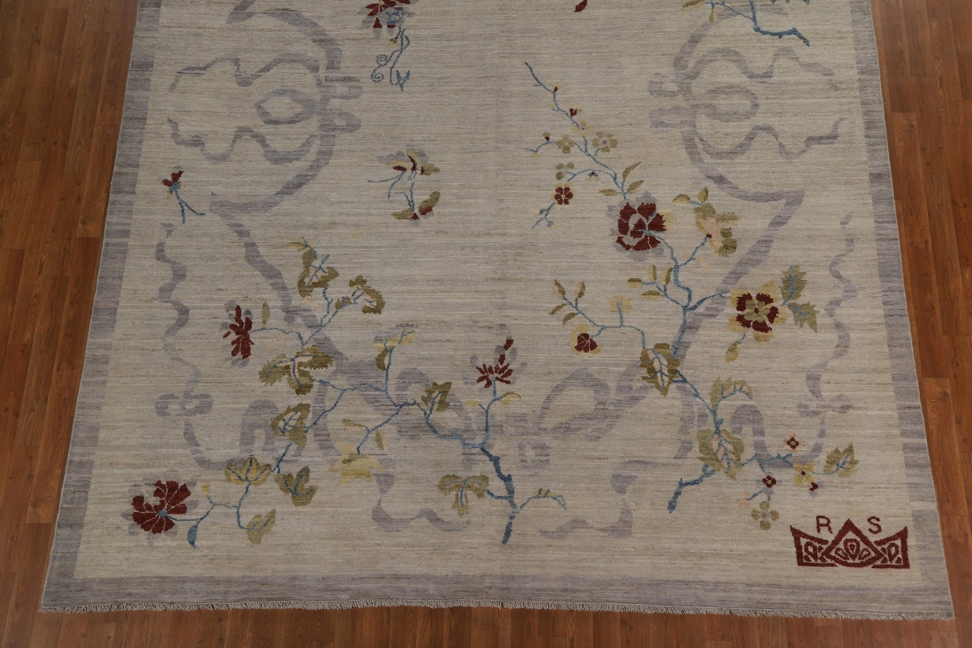 A Beautiful Genuine China Art Deco rug is Hand Knotted by skillful weavers in China with 100% Wool Material. This rug is in New, First Quality condition. dimensions are 11' 10'' X 9' 0'' in foot and 361 X 274 in centimeter. the primary color is Greys & Charcoal.