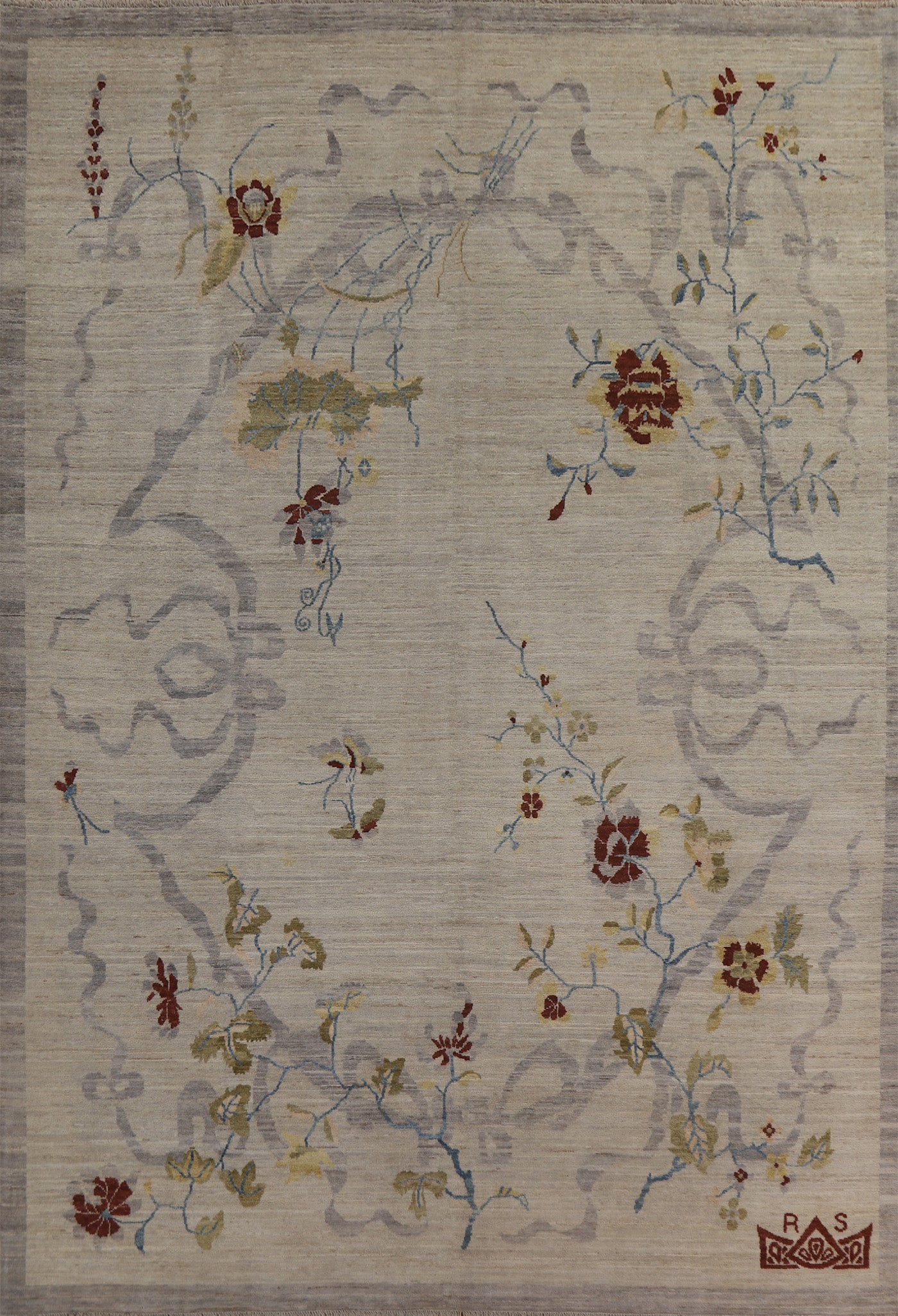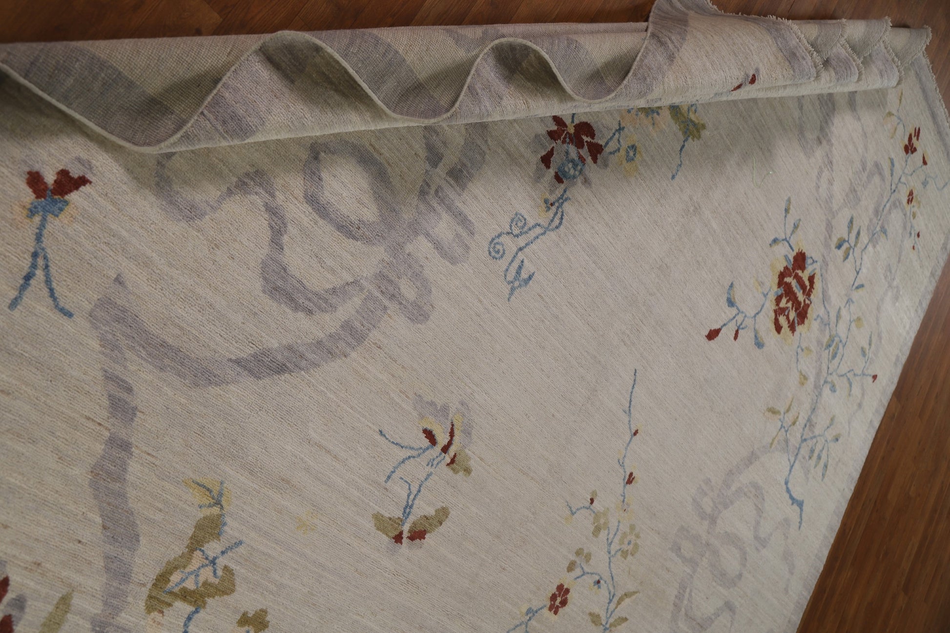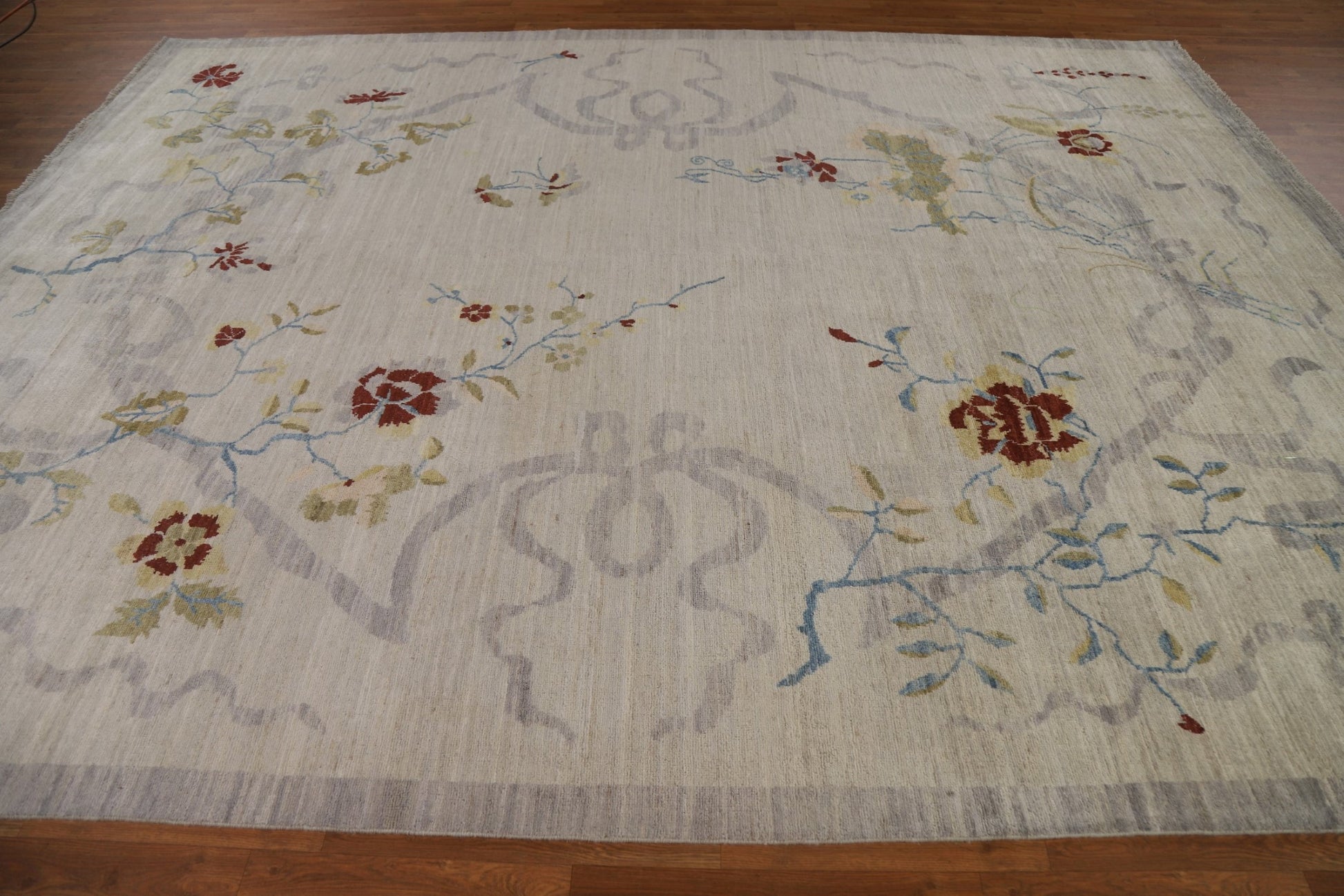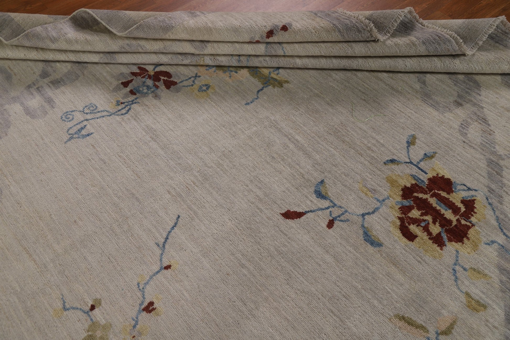 A Beautiful Genuine China Art Deco rug is Hand Knotted by skillful weavers in China with 100% Wool Material. This rug is in New, First Quality condition. dimensions are 11' 10'' X 9' 0'' in foot and 361 X 274 in centimeter. the primary color is Greys & Charcoal.