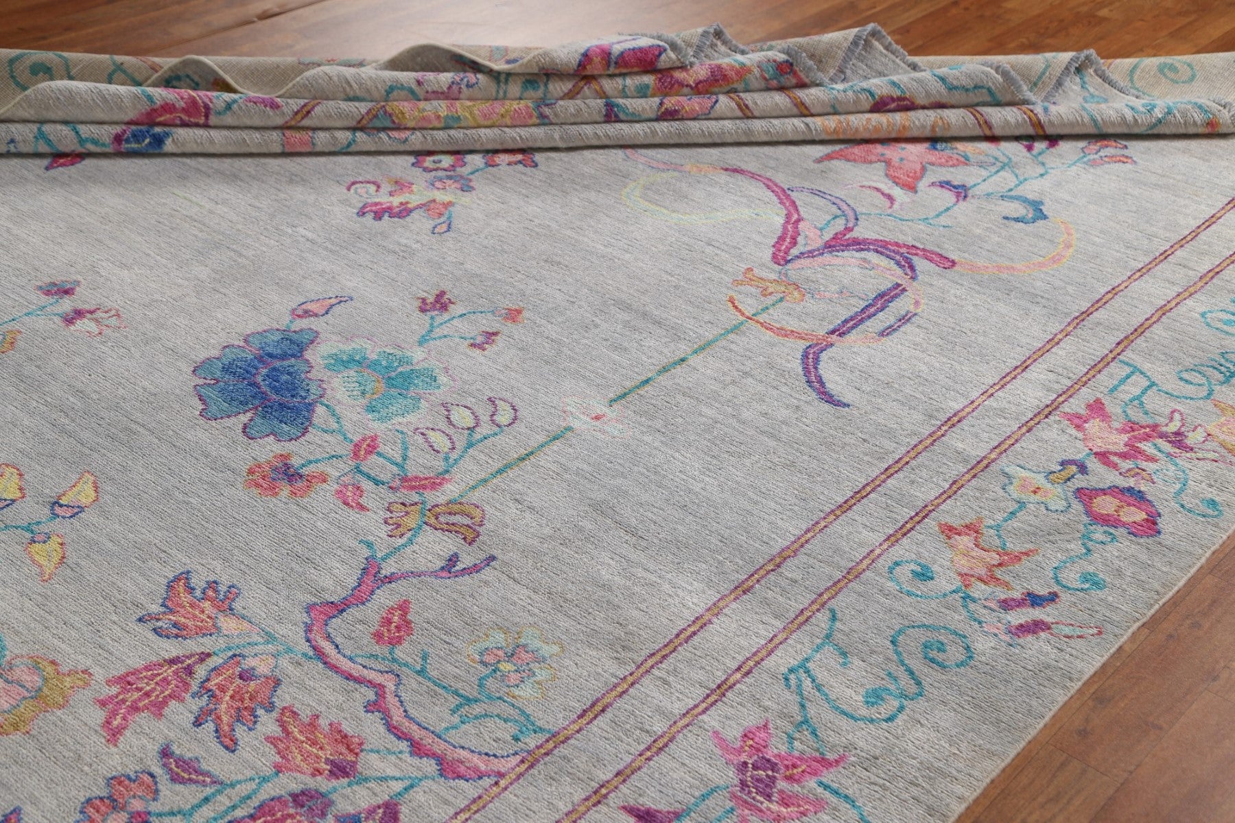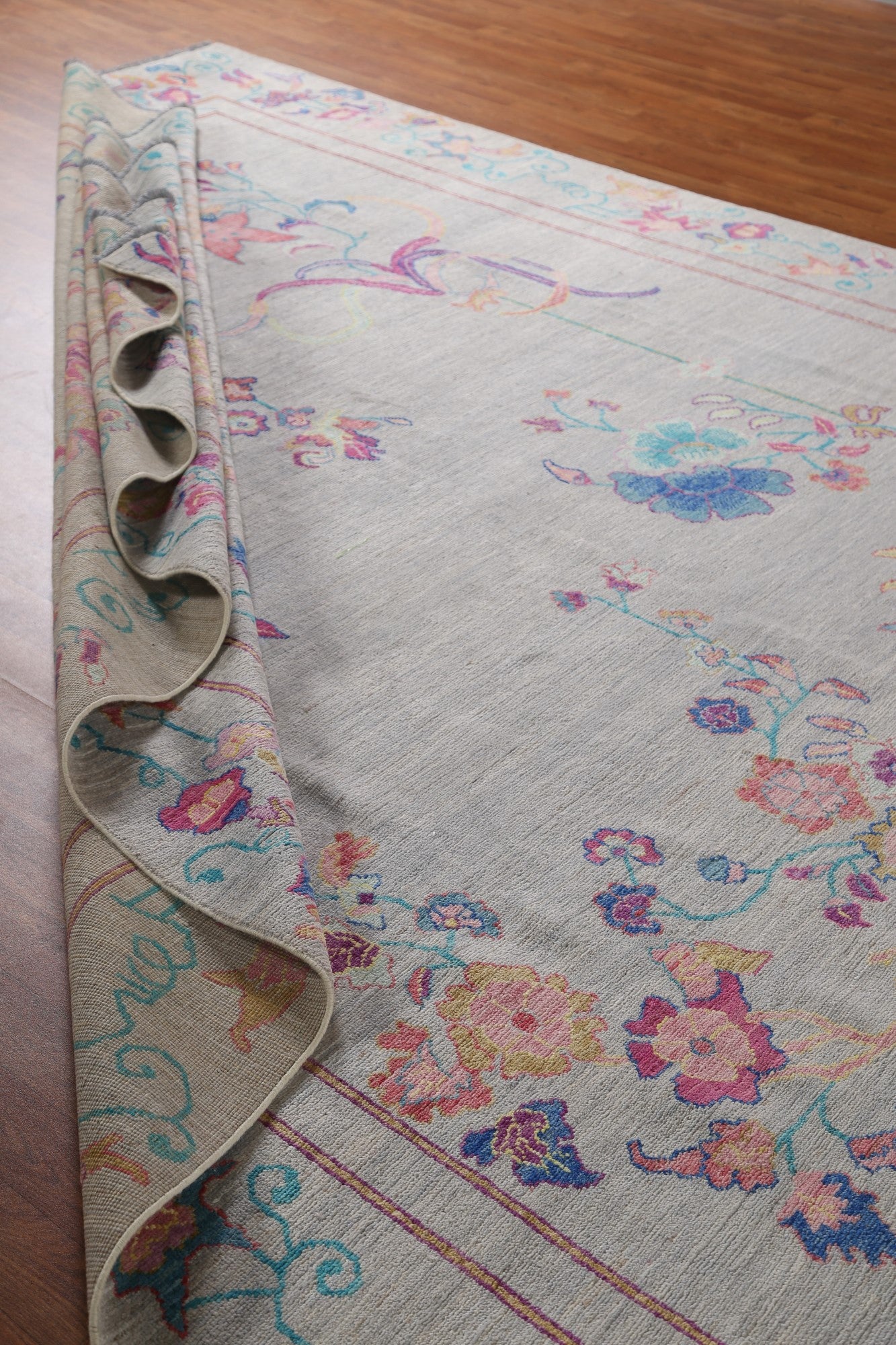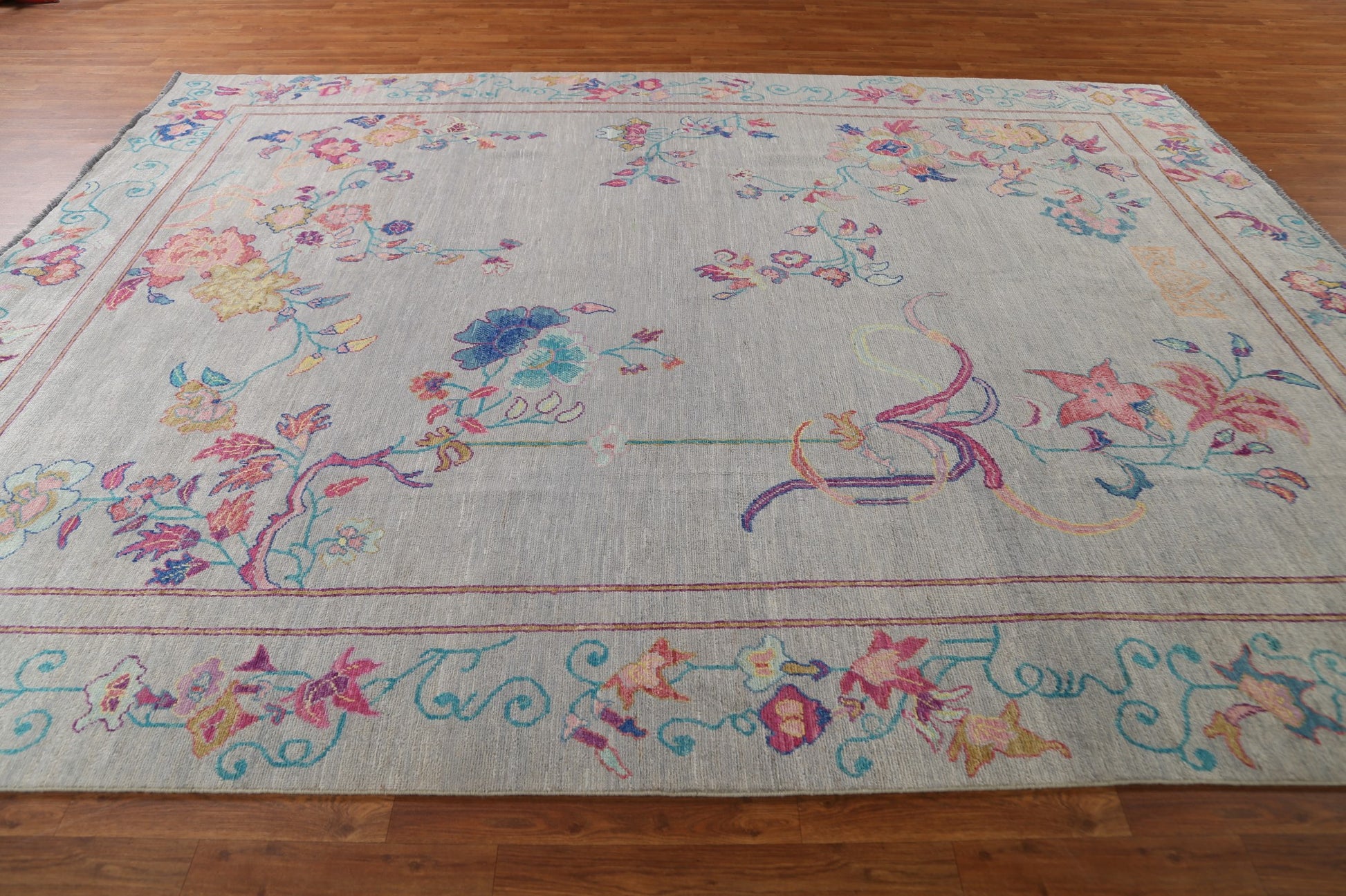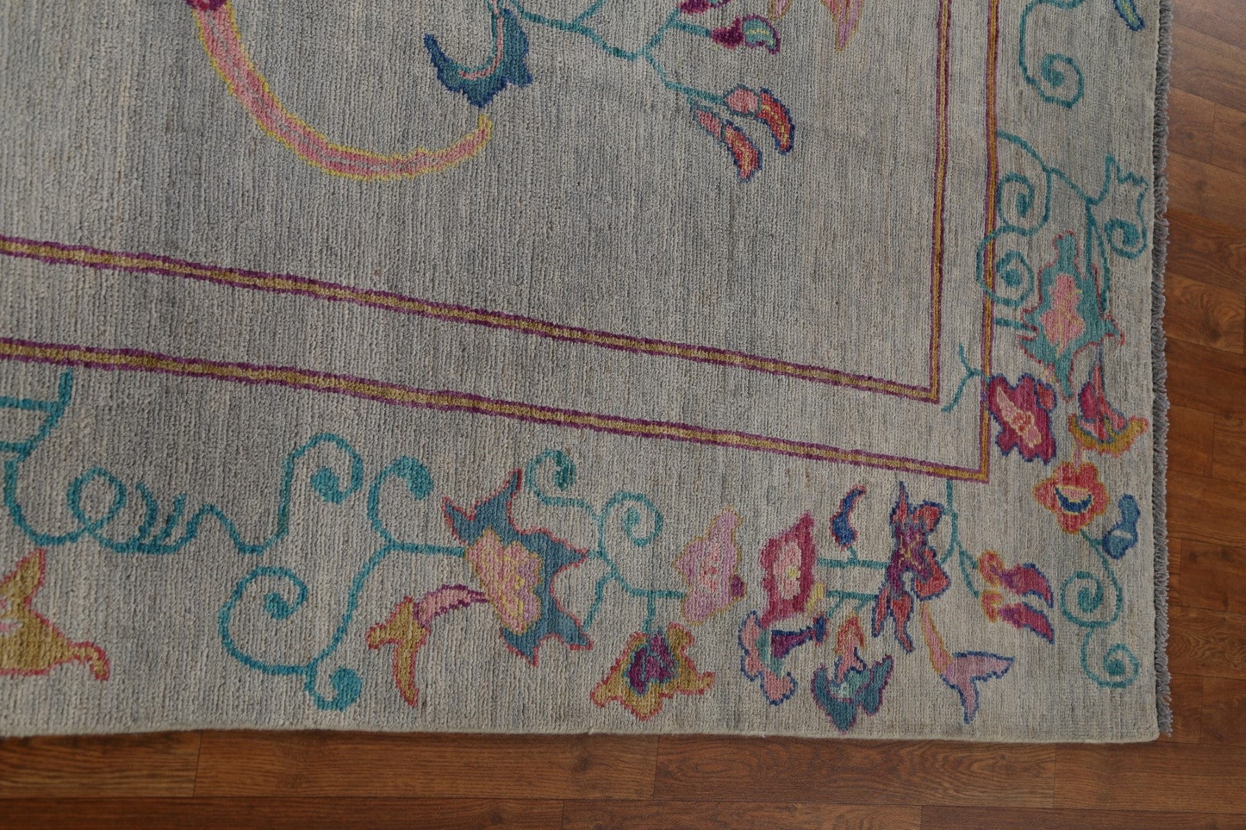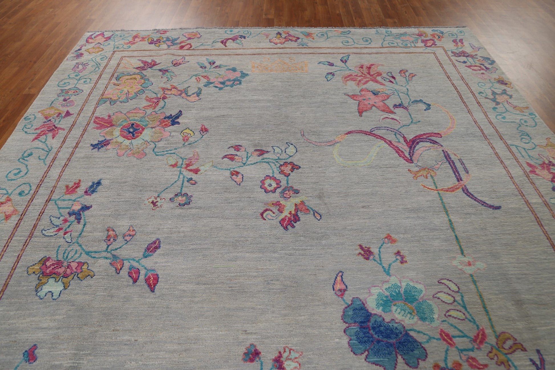 A Beautiful Genuine China Art Deco rug is Hand Knotted by skillful weavers in China with 100% Wool Material. This rug is in New, First Quality condition. dimensions are 11' 6'' X 9' 0'' in foot and 351 X 274 in centimeter. the primary color is Greys & Charcoal.