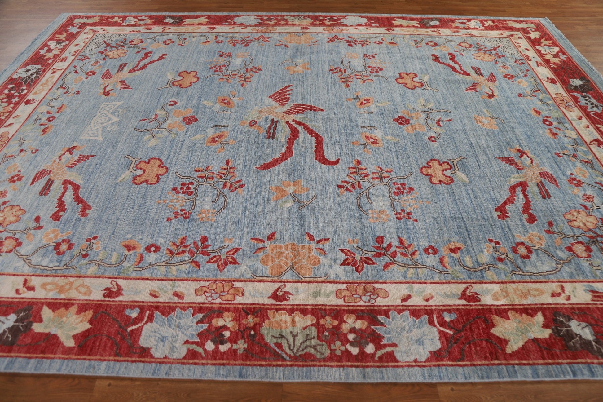 A Beautiful Genuine China Art Deco rug is Hand Knotted by skillful weavers in China with 100% Wool Material. This rug is in New, First Quality condition. dimensions are 11' 8'' X 8' 10'' in foot and 356 X 269 in centimeter. the primary color is Navy Blue & Blues.