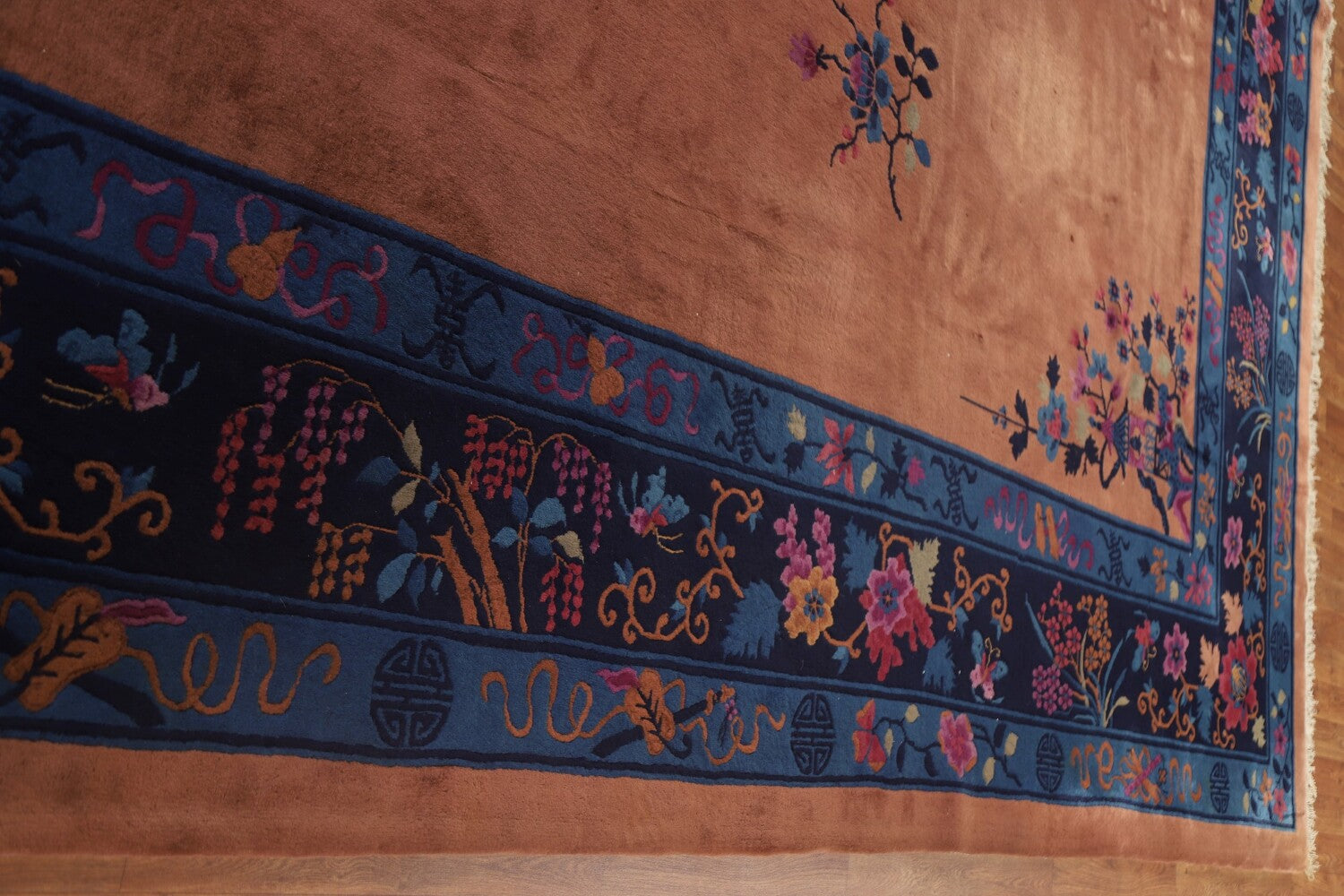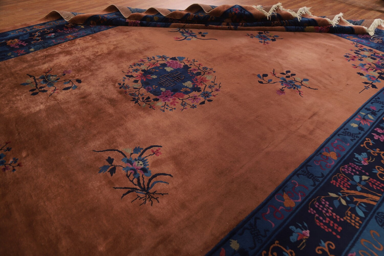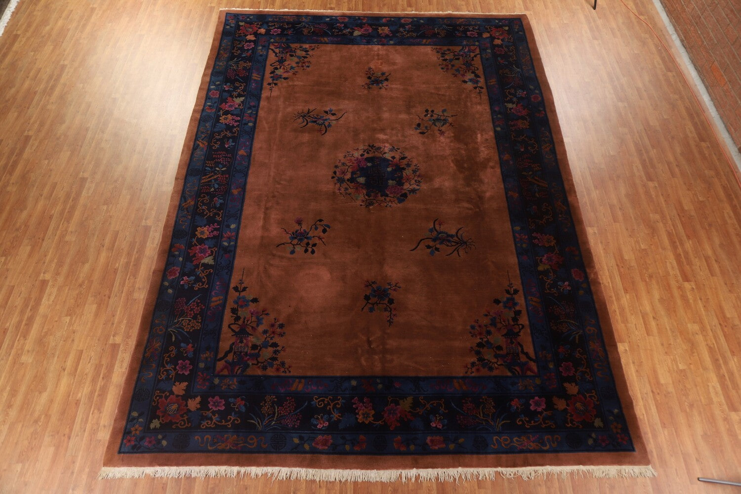A Beautiful Genuine China Art Deco rug is Hand Knotted by skillful weavers in China with 100% Wool Material. This rug is in Very Good condition. dimensions are 15' 5'' X 11' 0'' in foot and 470 X 335 in centimeter. the primary color is Brown.