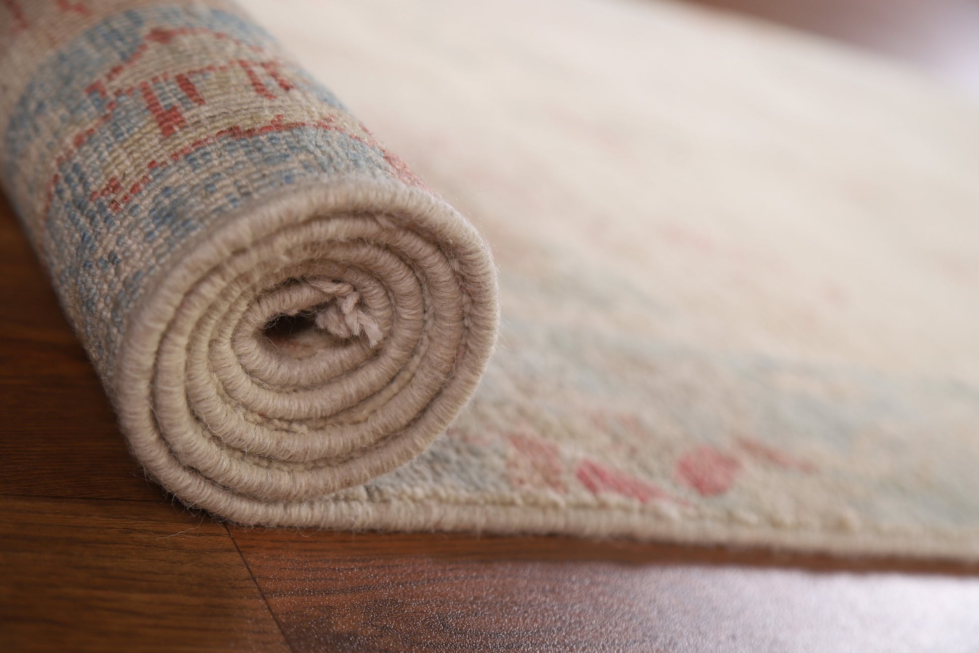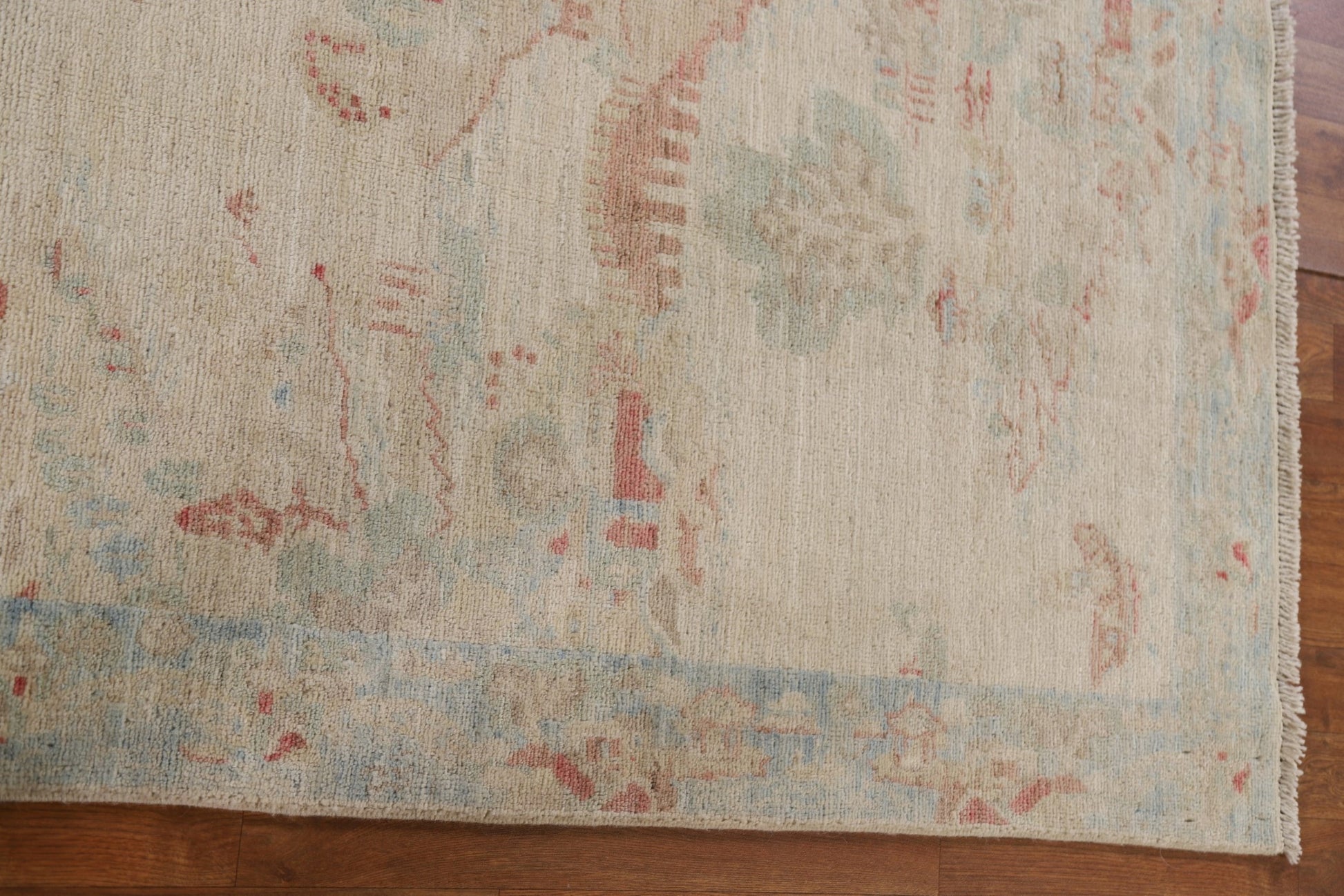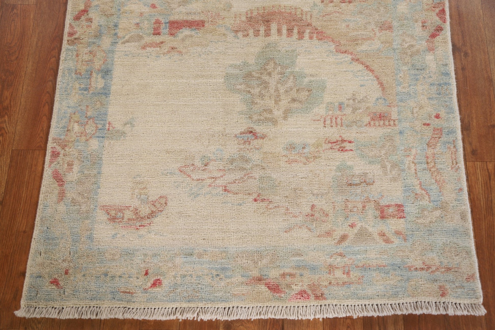 A Beautiful Genuine China Art Deco rug is Hand Knotted by skillful weavers in China with 100% Wool Material. This rug is in New, First Quality condition. dimensions are 11' 9'' X 3' 2'' in foot and 358 X 97 in centimeter. the primary color is Beige & Ivories.